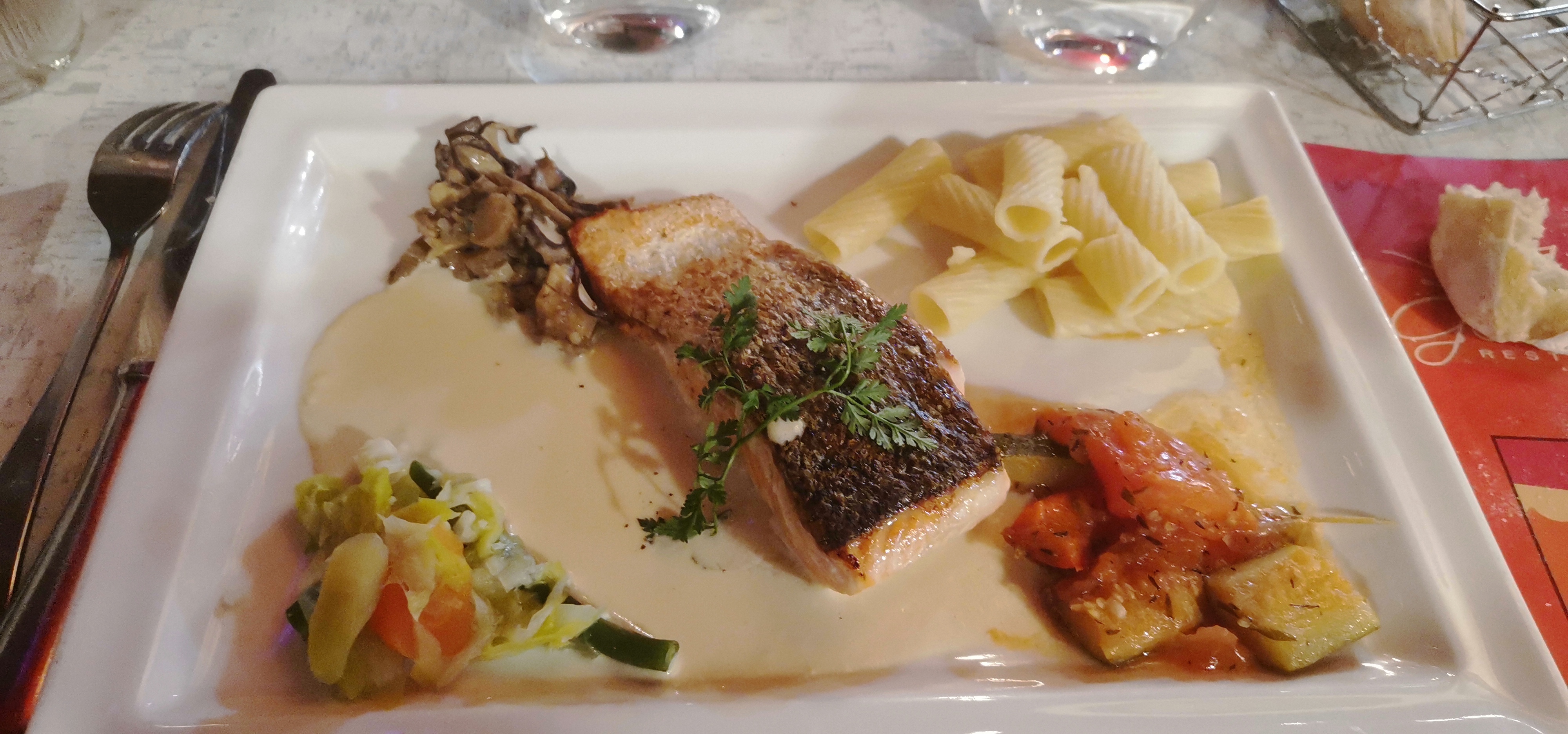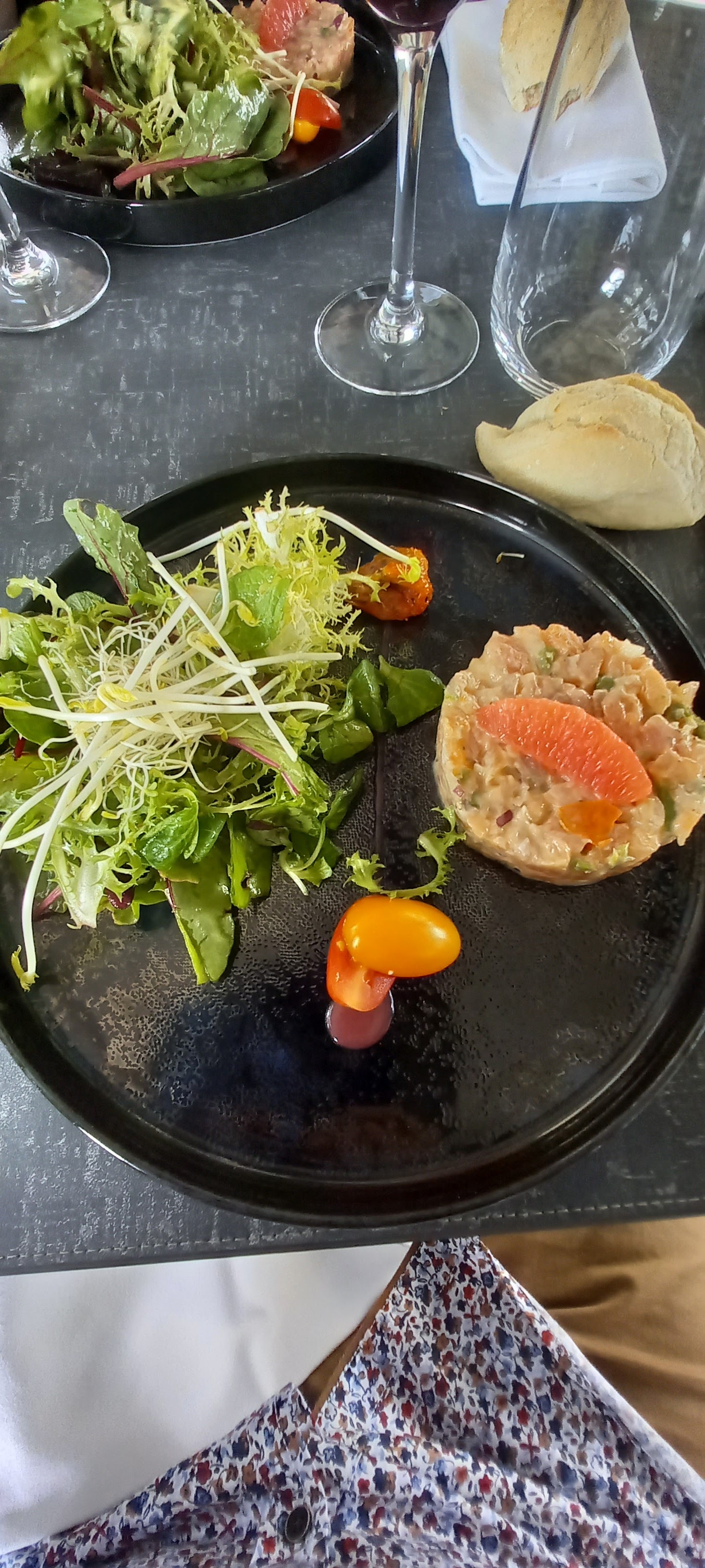 Belle proposition de mets, je me suis régalée, Un peu de manquant et d'hésitation dans le service, mais réactif, rien de bien grave.... Belle présentation de table, sauf un verre et une assiette ebreche à 2 places différentes, je n'ai pas fait le tour... Le vin rouge servit à une température un peu fraîche, mais bon, il a fallu attendre un petit peu avant de le déguster. Le goulot des bouteilles d'eau mériterait un petit détartrage. Salle du haut accueillante, un peu bruyante, assise confortable, bonne convivialité de ces tables de 8 spacieuses ... (personne à mobilité réduite à éviter car de plus les toilettes sont au rez de chaussée) Ce n'est pas la 1 ère fois que je viens, j'ai consommé également à l'extérieur, cadre très agréable.... Même si quelques petites annotations discutables deci delà , qui amèneront qqs ajustements, peuvent être que profitables, je peux vous recommander ce restaurant sans hésitation.