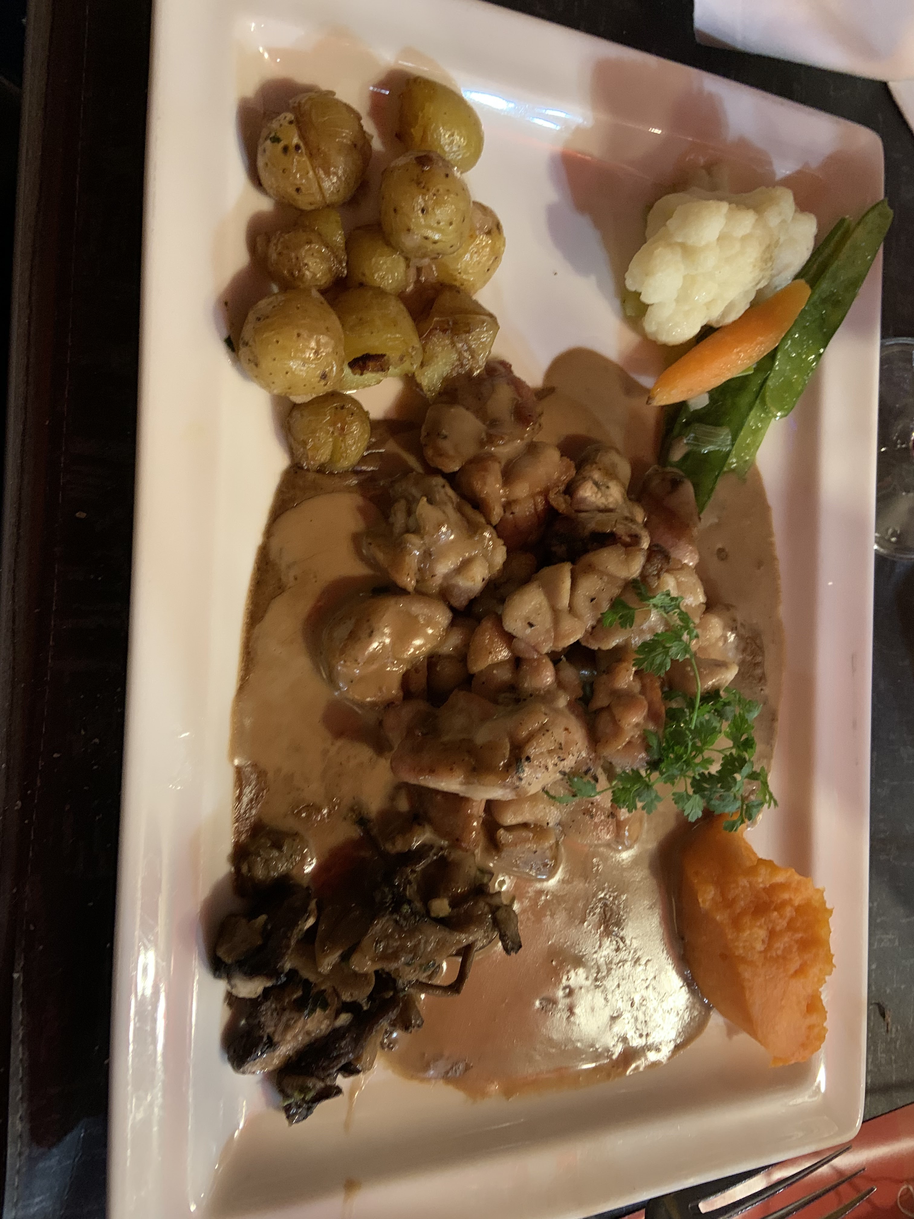 Très bon ambiance, service avec une pointe d'humour bien placée, de belles assiettes bien garnies et une très bonne cuisine dans un cadre agréable. Je recommande. 🥂