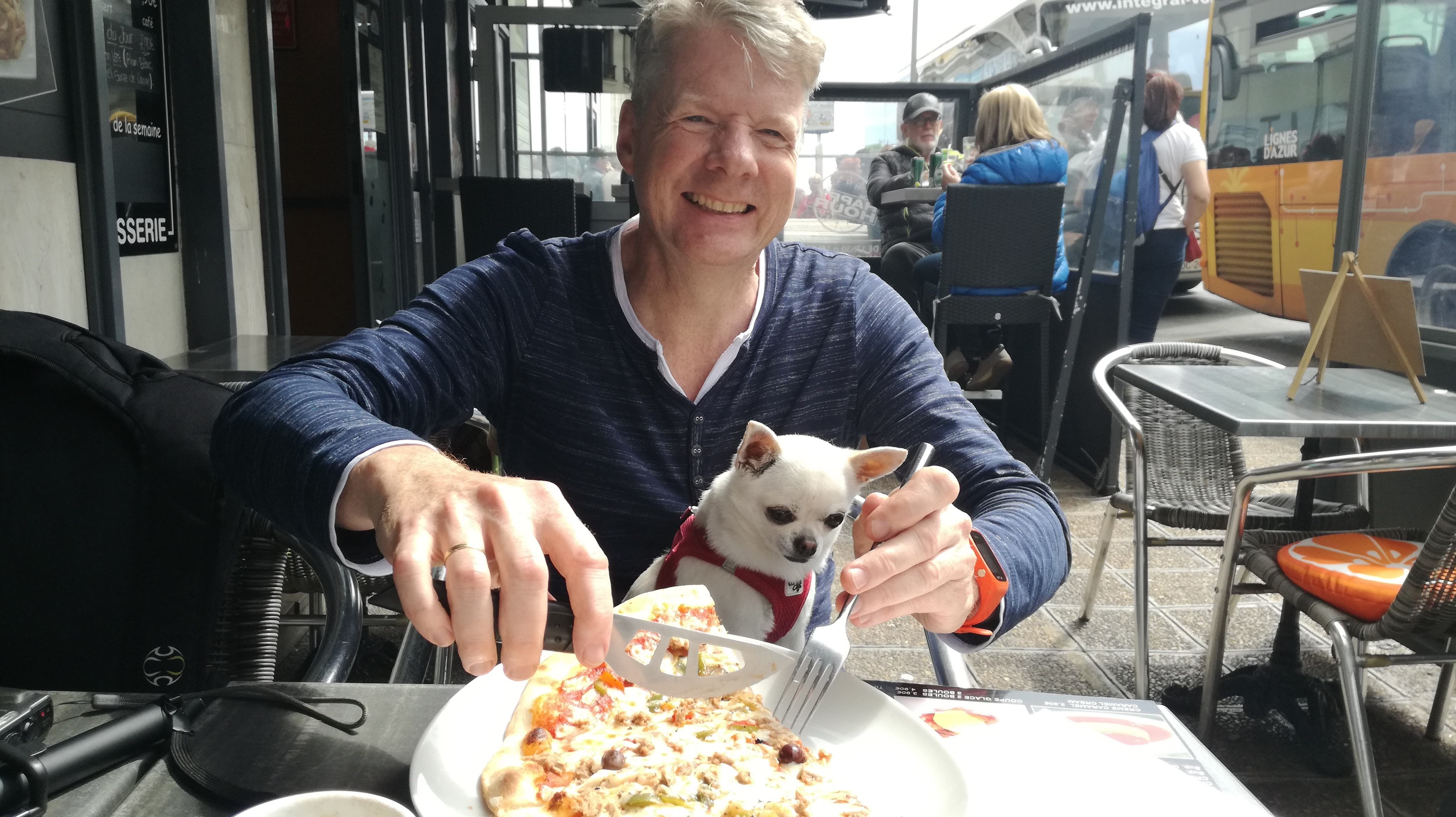 Cappuccino et pizza, délicieux, l'utilisation des toilettes est également gratuite, eau pour le chien incluse.