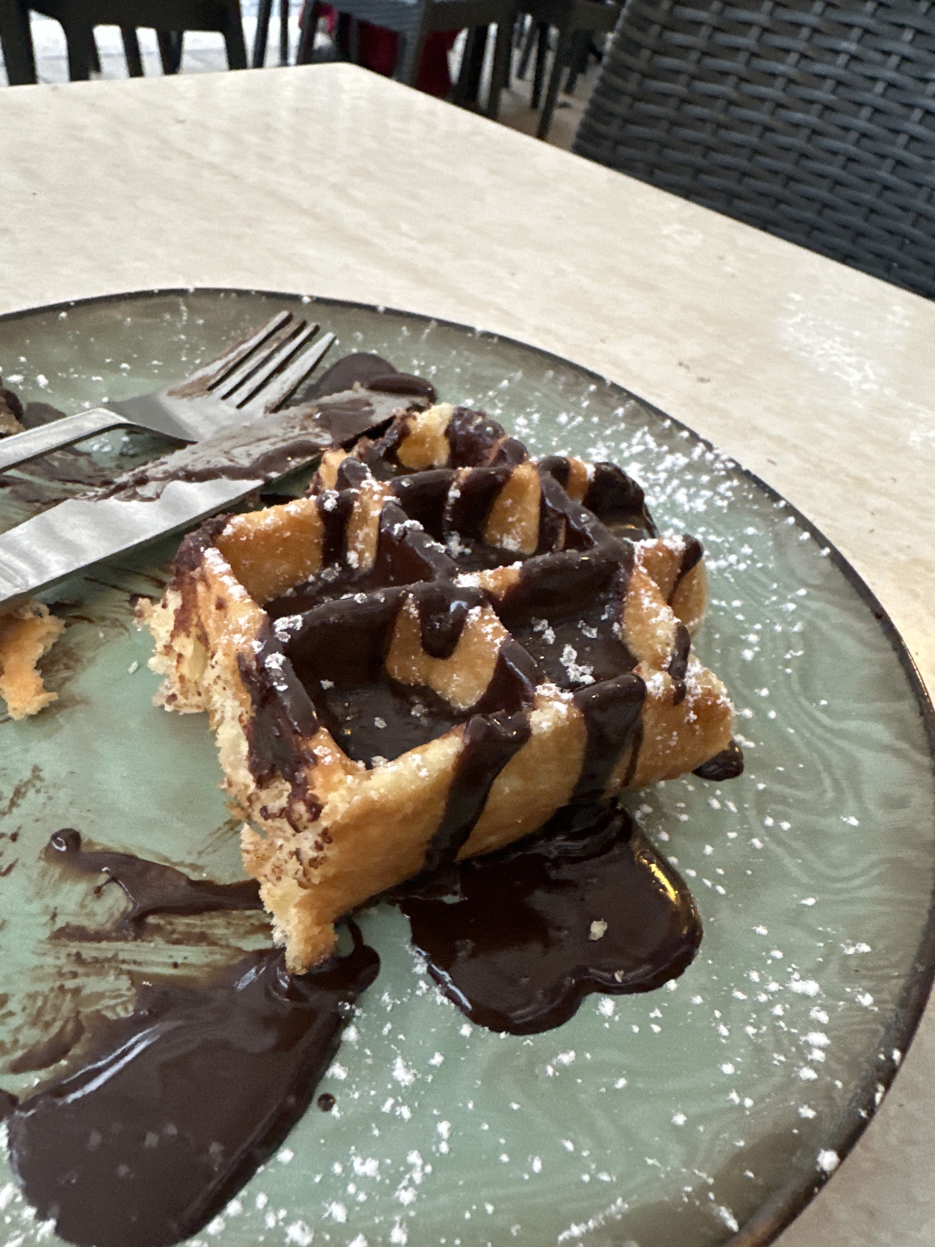 J’ai commandé une gaufre. J’espérais qu’elle soit fait maison ( en tenant compte du prix 5,50) malheureusement la gaufre était froide et industrielle. Plutôt déçus que la cuisine ne soit pas en adéquation avec le lieux.