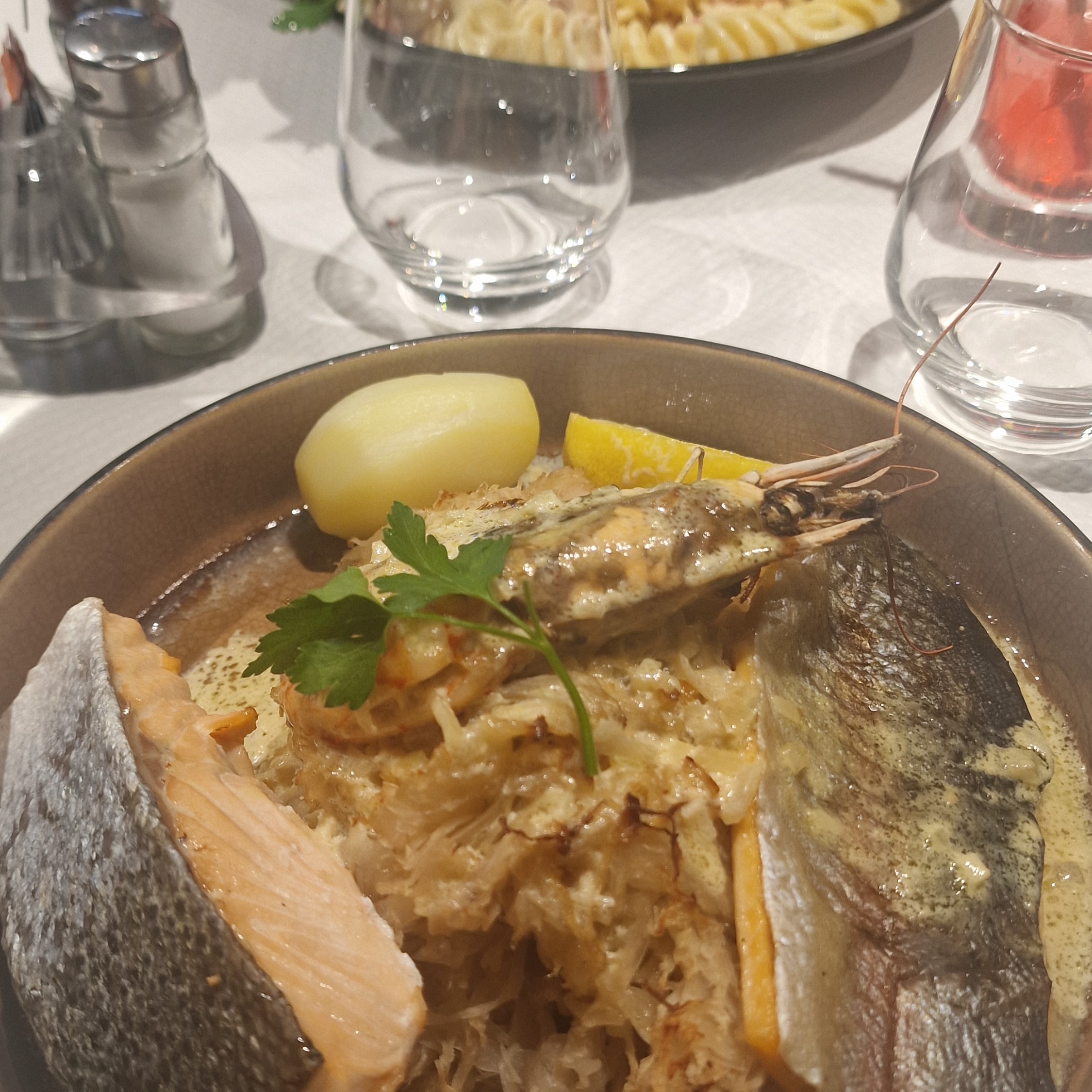 Très bonne expérience ! J'ai enfin découvert la choucroute locale et je n'ai pas été déçu ! Un très bon accueil, ambiance très agréable, chauffage comme il faut, serveurs très professionnels, service impeccable ! Le top des desserts : Irish coffee ( Félicitations au créateur, c'était parfait !) Je recommande ce lieu aux voyageurs de l'ouest qui viennent se perdre à Nancy. Un beau restaurant sur une belle place !