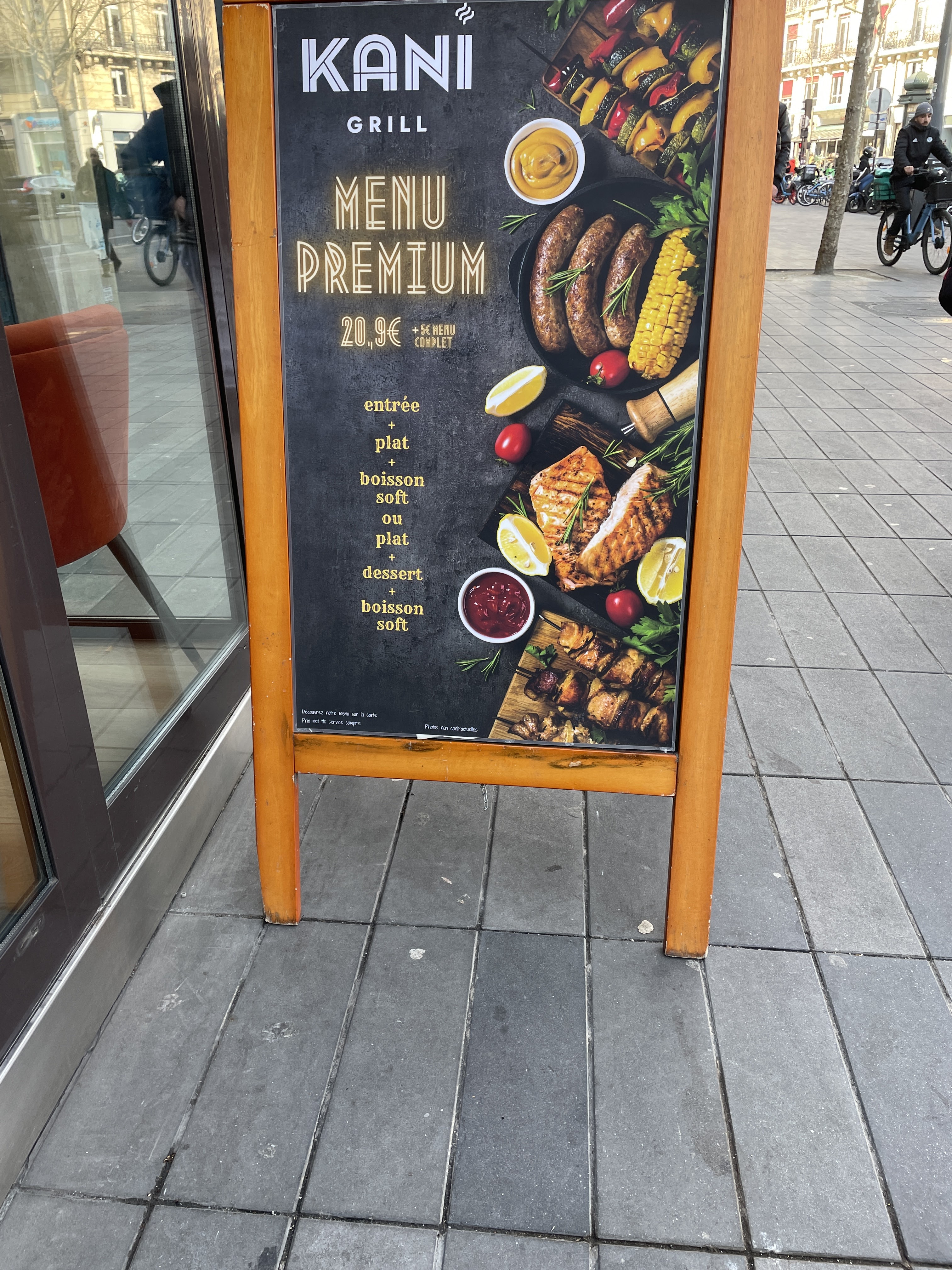 KANI nouvelle enseigne spécialisée steackhouse. Cette nouvelle enseigne Place de la république à ne pas LOUPER propose une gamme pour les amateurs de viandes fraiches, la viande est livrée TOUS LES JOURS Ils se sont spécialisé dans le créneau du pavé et du Hamburger en clair du frais, ils ne peuvent que s'imposer sur la place de la république est faire le BUZZ, ATTENTION!! le plat du jour démarre à partir de 10.90€!! L'équipe de serveur est extra, le menue déjeuner est à partir de 14.90€ plat plus dessert aux choix. Je recommande vivement l'établissement KANI de république, à voir absolument pour tous les affamés qui se respectent !!!