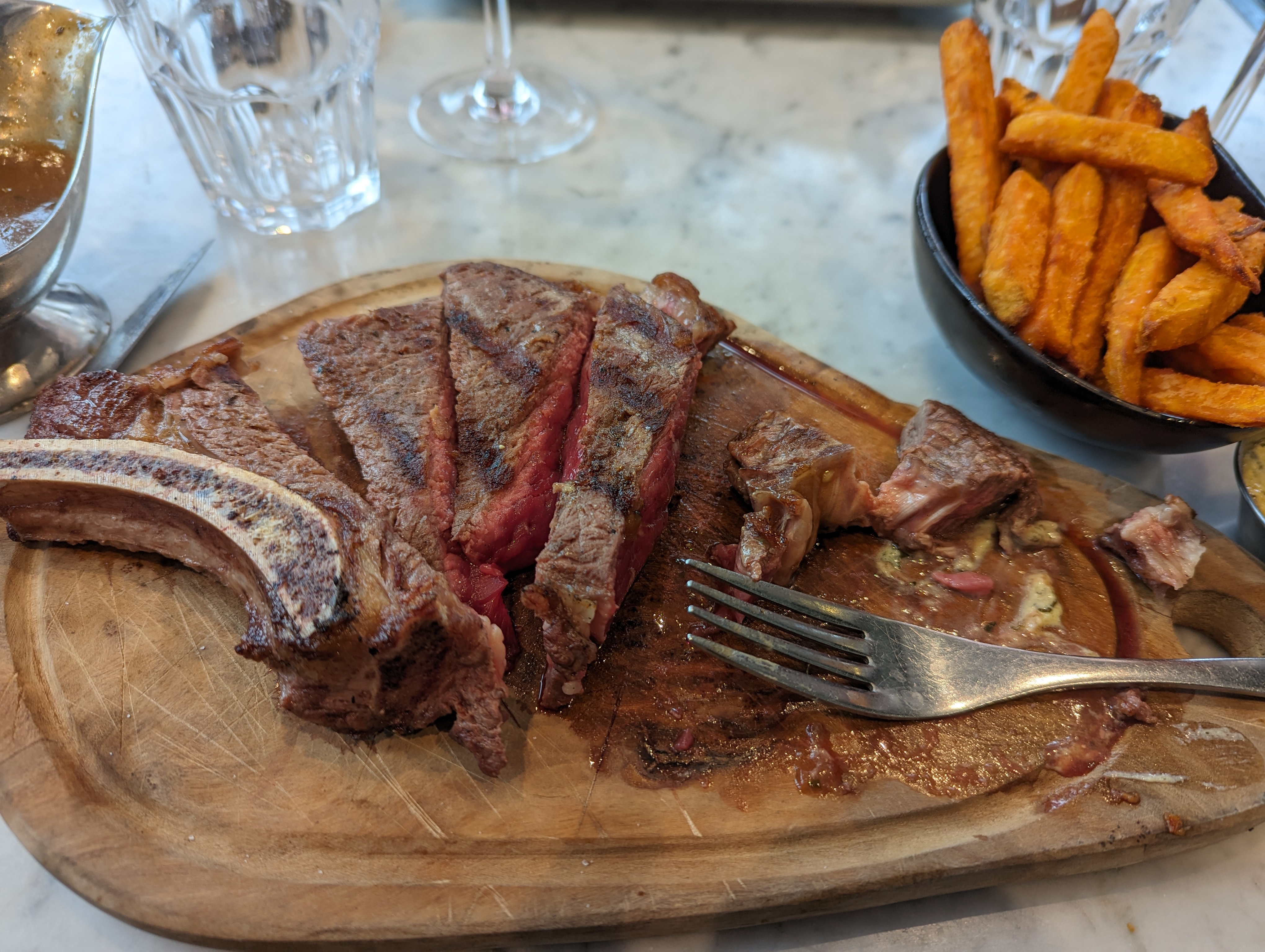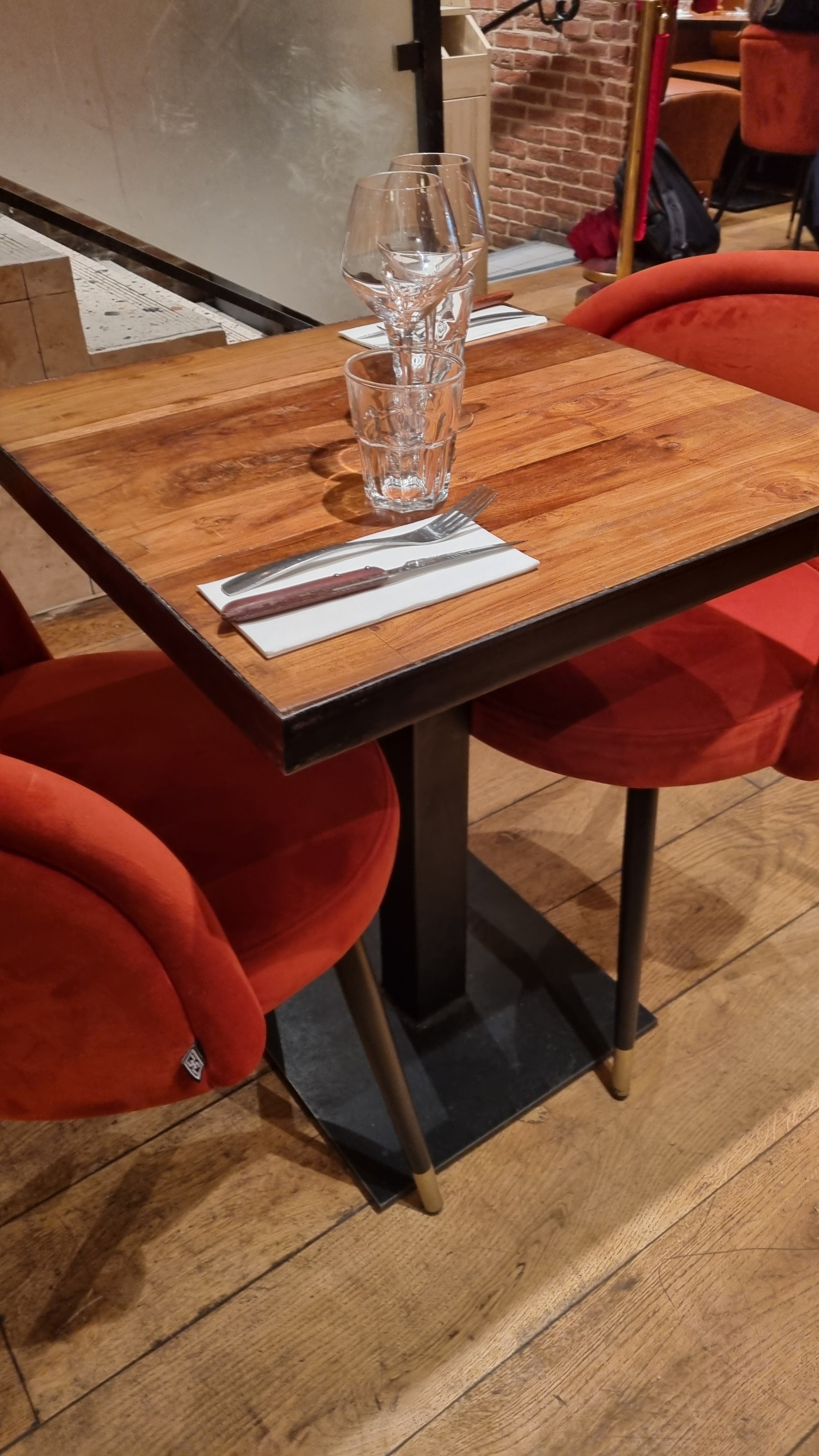 Nous avons été très bien accueillis par le staff du lieu, la soirée s’annonçait plutôt bien Une fois la commande est passée, nous avions hâte de tester les plats!! La planche à partager était bonne mais vraiment sans plus, il manquait les cornichons, un condiment essentiel comme le beurre ainsi que le pain Les plats arrivaient et ce fut une déception totale!! Les 2 cotes de Bœuf étaient presque immangeables!!! Grasses et caoutchouteuses et je pèse mes termes….sur les 450g j’ai pu apprécier 100g à peine Ce fut une grosse déception vu le prix à 35€ la pièce Je me pose encore la question, c’est parce que nous avions une promotion de 50% sur le site The Fork qu’on nous a proposé des pièces aussi médiocres? J’espère me tromper parce que les voisins de tables qui avaient également pris ce plat, la pièce était très appétissante Bref j’avais voulu testé ce restaurant, conclusion testé mais pas approuvé Paroles d’un Chef