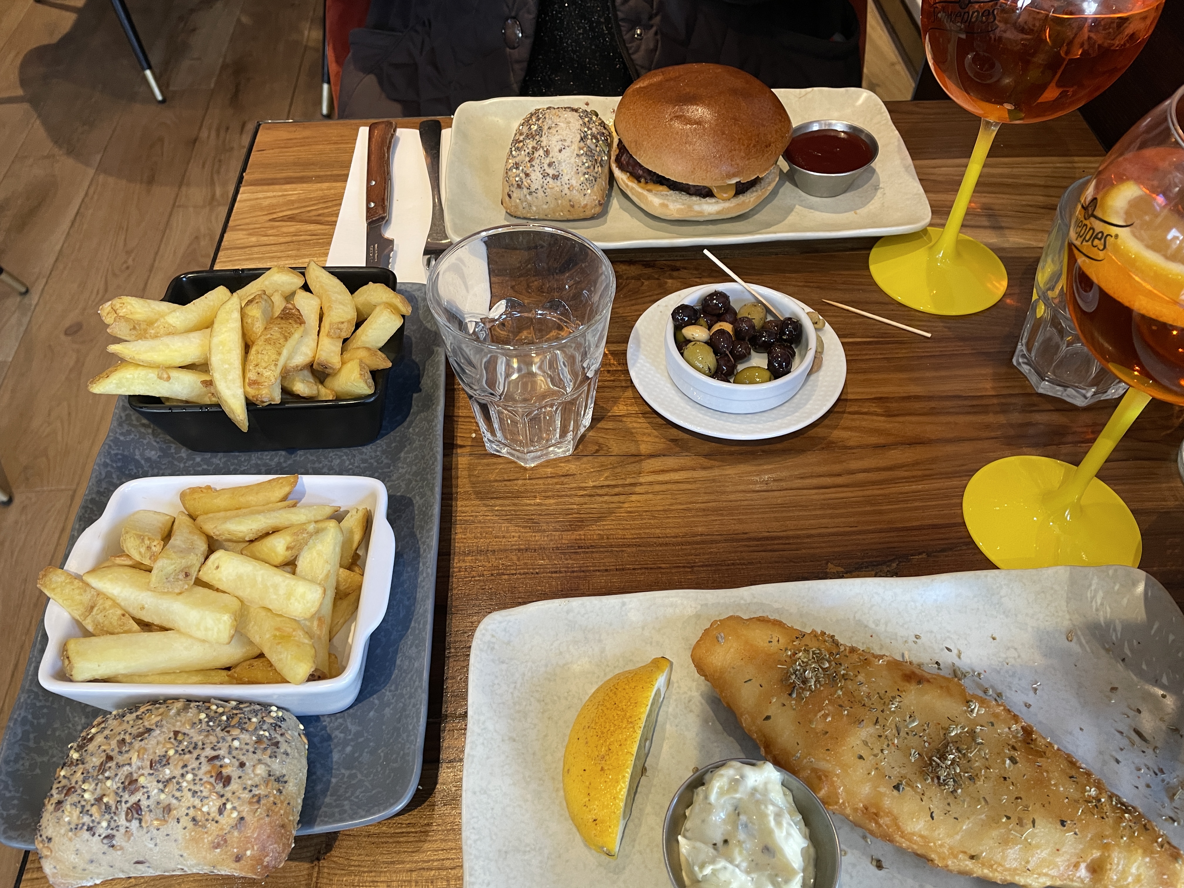 Service et accueil effectués par Fred impeccables😊😁 Je suis venue avec 2 amies, une salade à partagé nous a été offerte : excellente!! ** Choix amie 1 : côte de boeuf qu'elle a trouvé parfaite tout comme l'aubergine grillé par contre les haricots verts étaient fades il aurait été bien d'y ajouter du beurre et de l'ail. ** Choix amie 2 : Fish and chips, un peu deçu, cela ne semblait pas être du maison mais plutôt du surgelé... dommage. ** Mon choix : chiken burger qui était correct, dommage que les frites soient du surgelées et non faite maison. Nous avons cependant passée un trés bon moment toutes les 3!