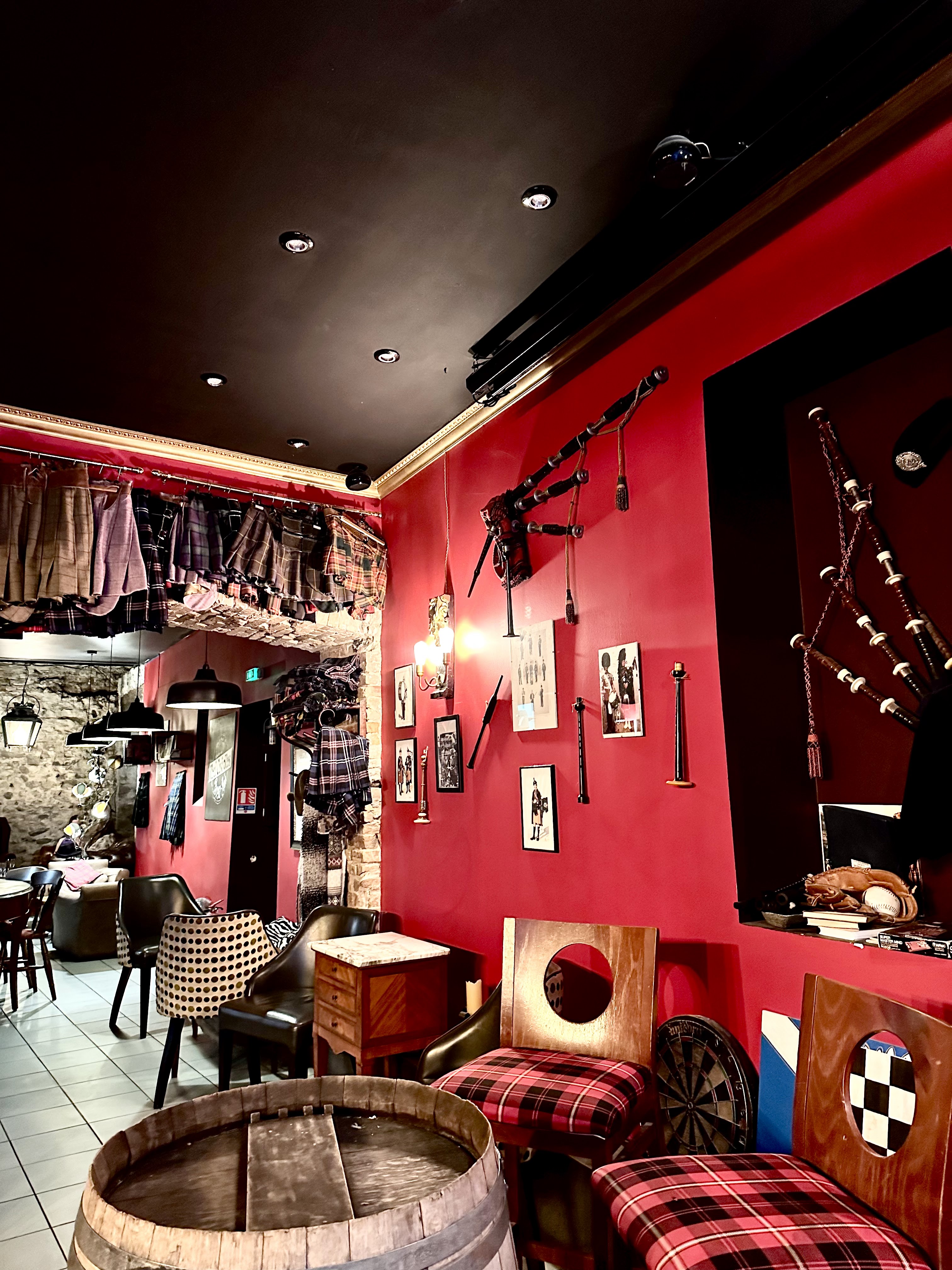 Magnifique pub écossais, rempli de kilts suspendus et d'objets typiquement écossais. Le propriétaire dégage une merveilleuse ambiance écossaise et l'intérieur dispose d'un éclairage doux qui vous fait sentir comme chez vous !
