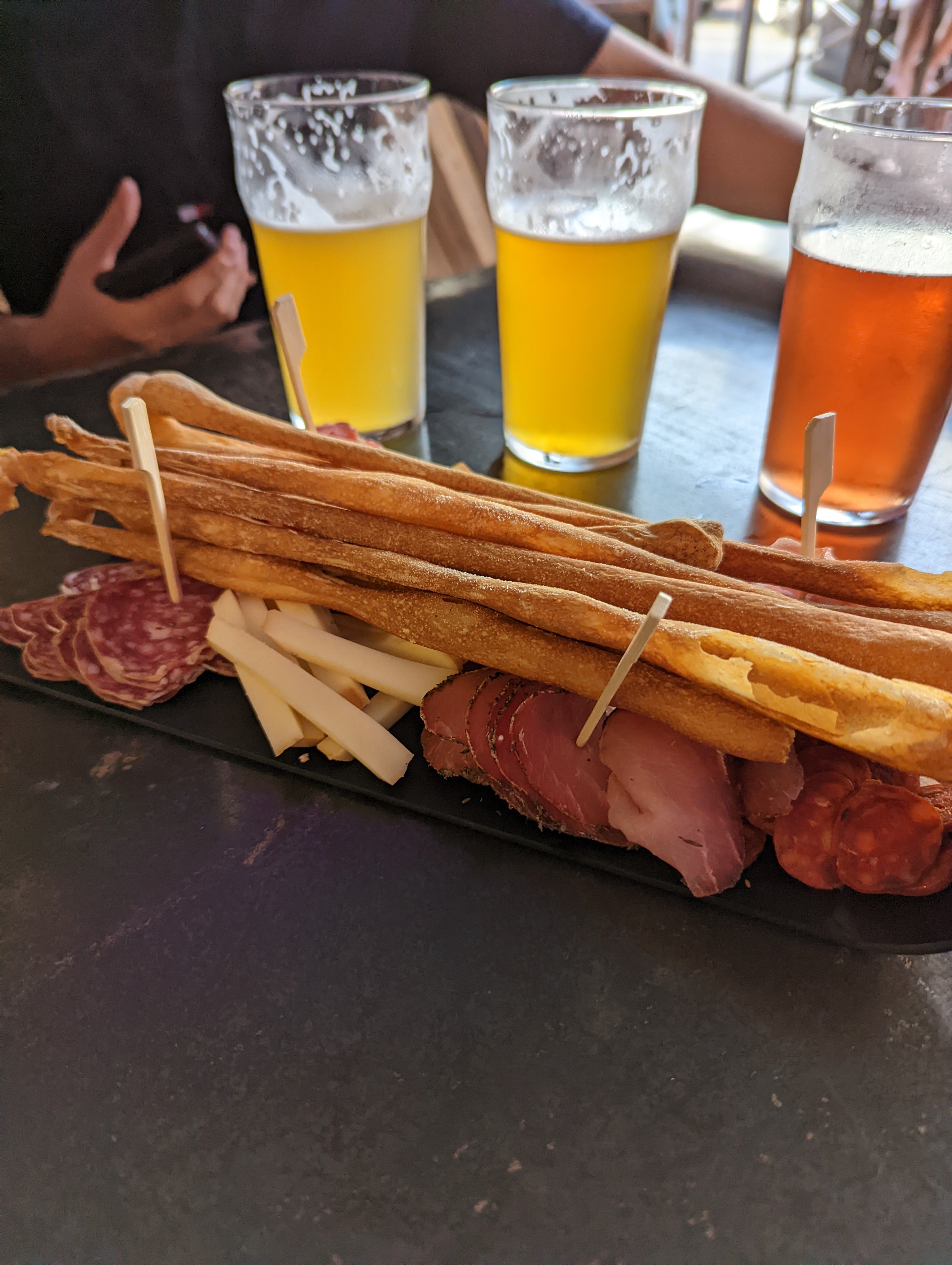 Les bières sont super, on a bien aimé la planche aussi. Par contre, on ne demande pas le green pass, et il y a des gens qui fument dedans (oui, ok, c'est tout ouvert, mais ils sont à l'intérieur).