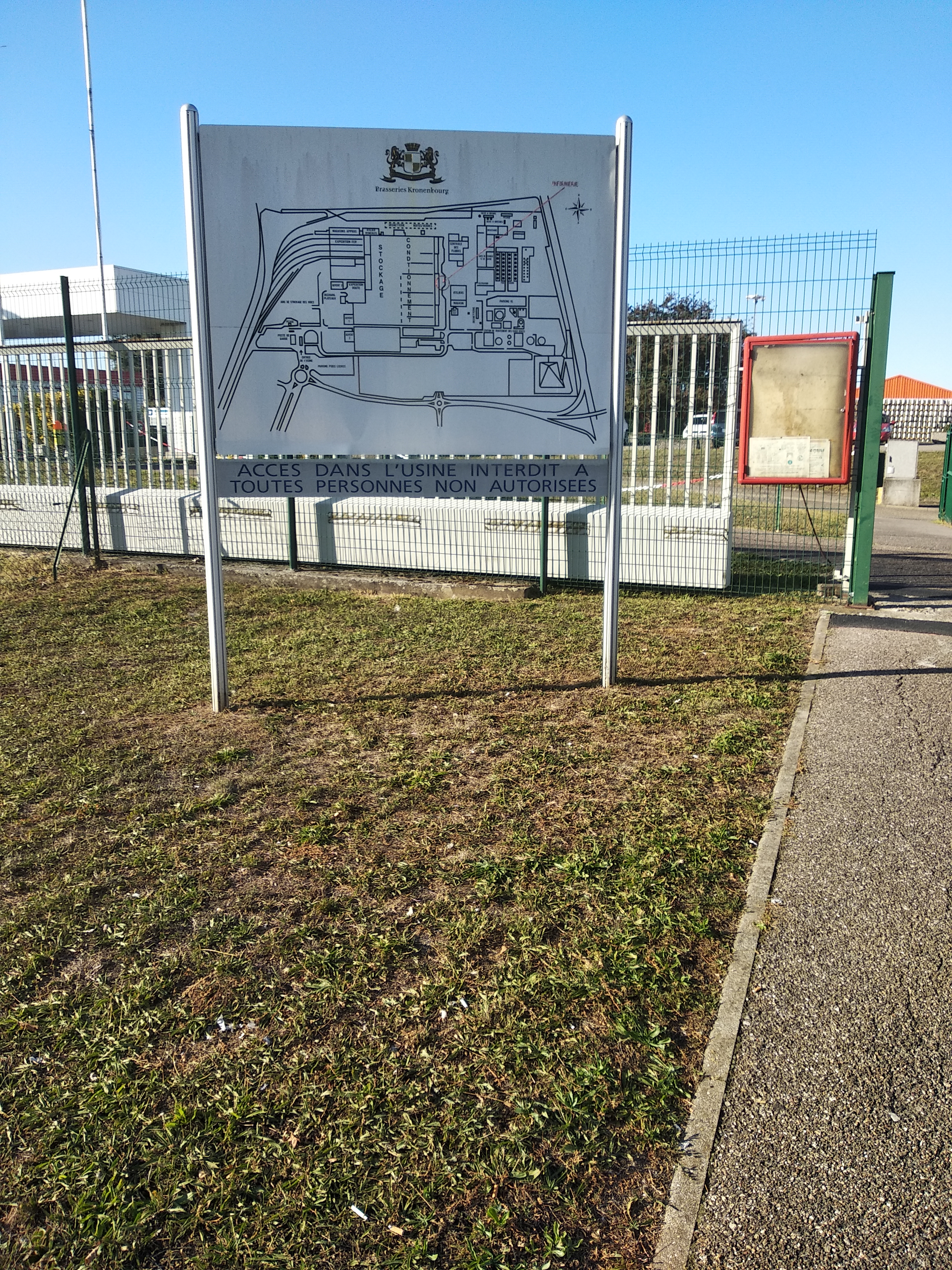 Usine de bière. Arrivée, inscription au stand à la barrière, exigences sanitaires et de sécurité (chaussures, gilet réfléchissant, etc.). Dans mon cas, le déchargement a été réussi, je n'ai pas eu à attendre longtemps. Il y a un parking pour une dizaine de voitures à côté de l'entreprise, vous pouvez donc vous rendre à Kronenbourg en toute tranquillité. P.s. Je recommande de suivre les réglementations de l'entreprise. Salutations