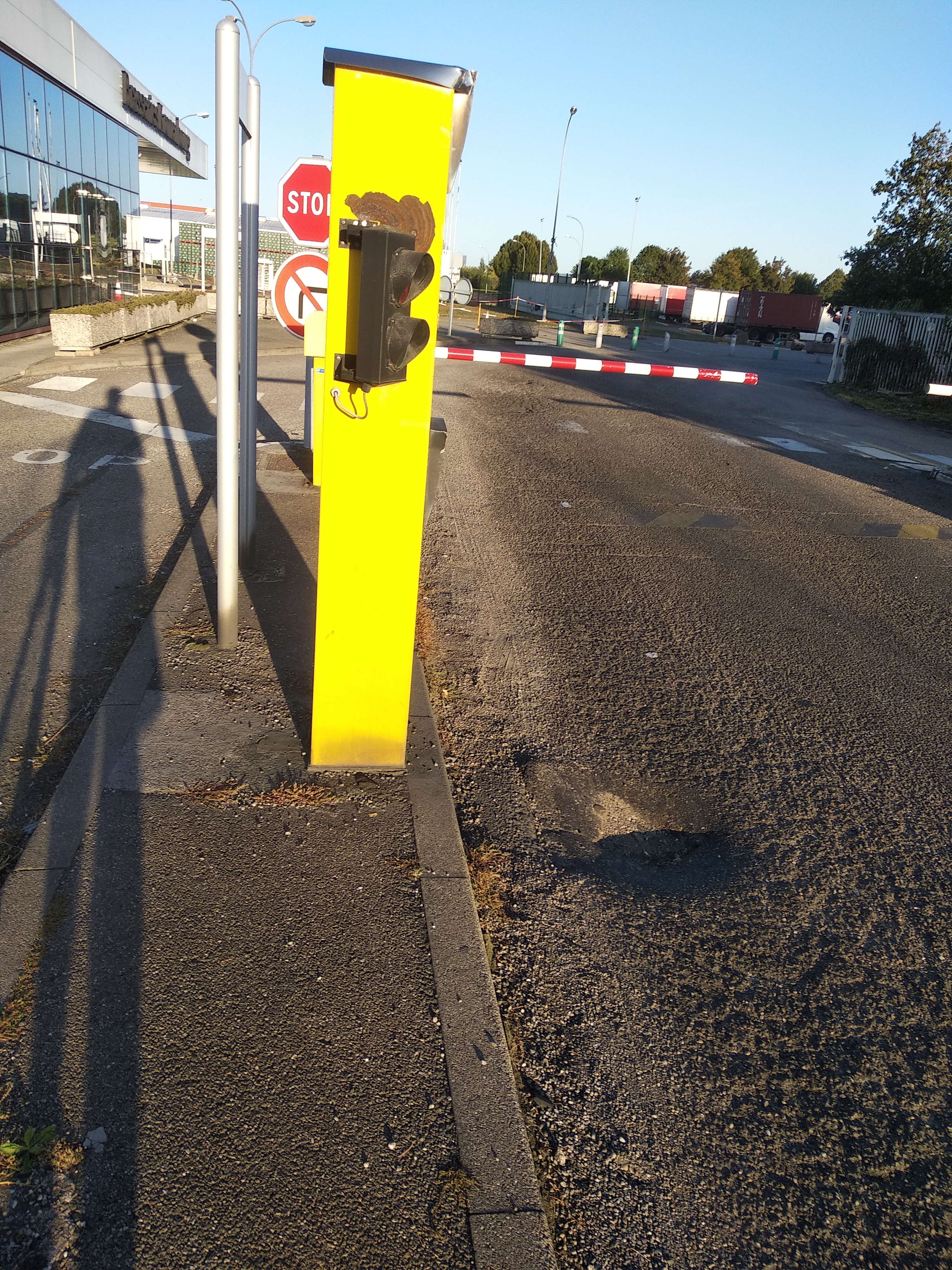Malgré une panne du système, déchargement rapide. Parking pour camions, toilettes, douche, local pour chauffeurs, café et sandwichs, travail de 5h00 à 21h00, sauf que les documents sont acceptés jusqu'à 18h30, pause de 7h30 à 8h00