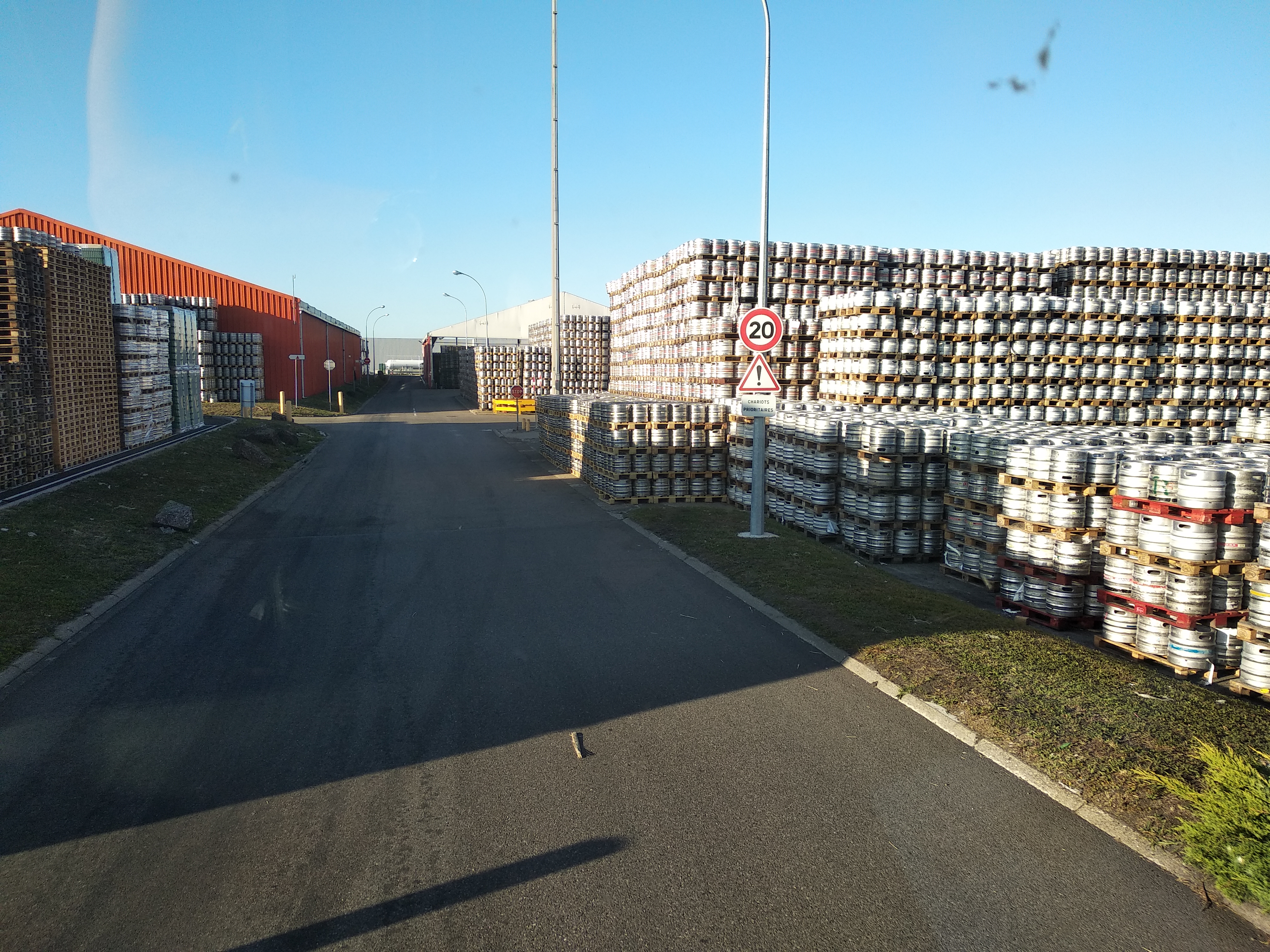 Pour décharger les fûts Portinox, le premier rond-point est Carlsberg. Dans ce bâtiment, ils ouvrent à 08h00