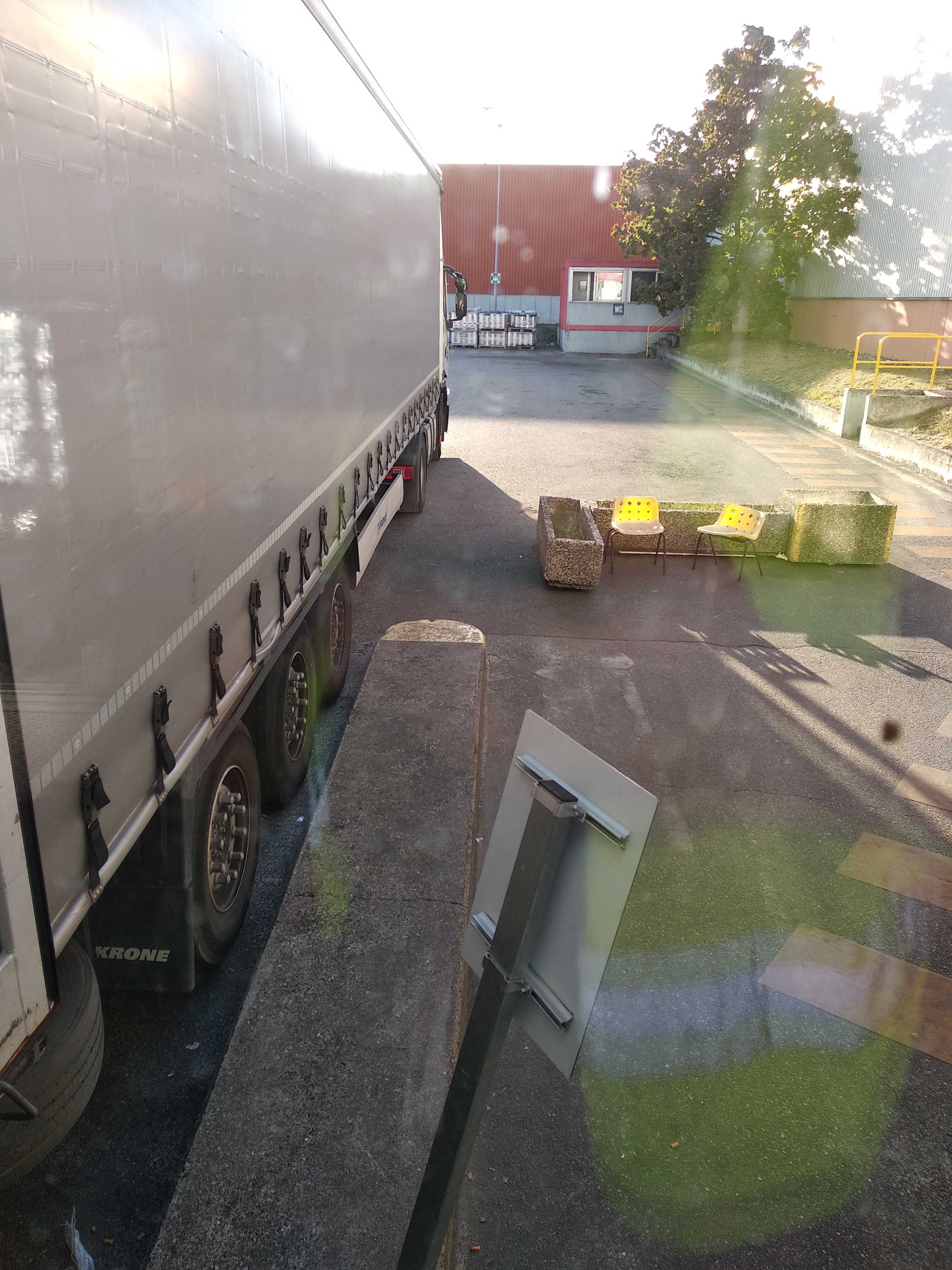 Cool. Il y a un grand parking, des toilettes et une douche pour les chauffeurs. Un modèle pour de nombreuses entreprises. Chargement conformément à la notification, afin que vous puissiez planifier votre vie.