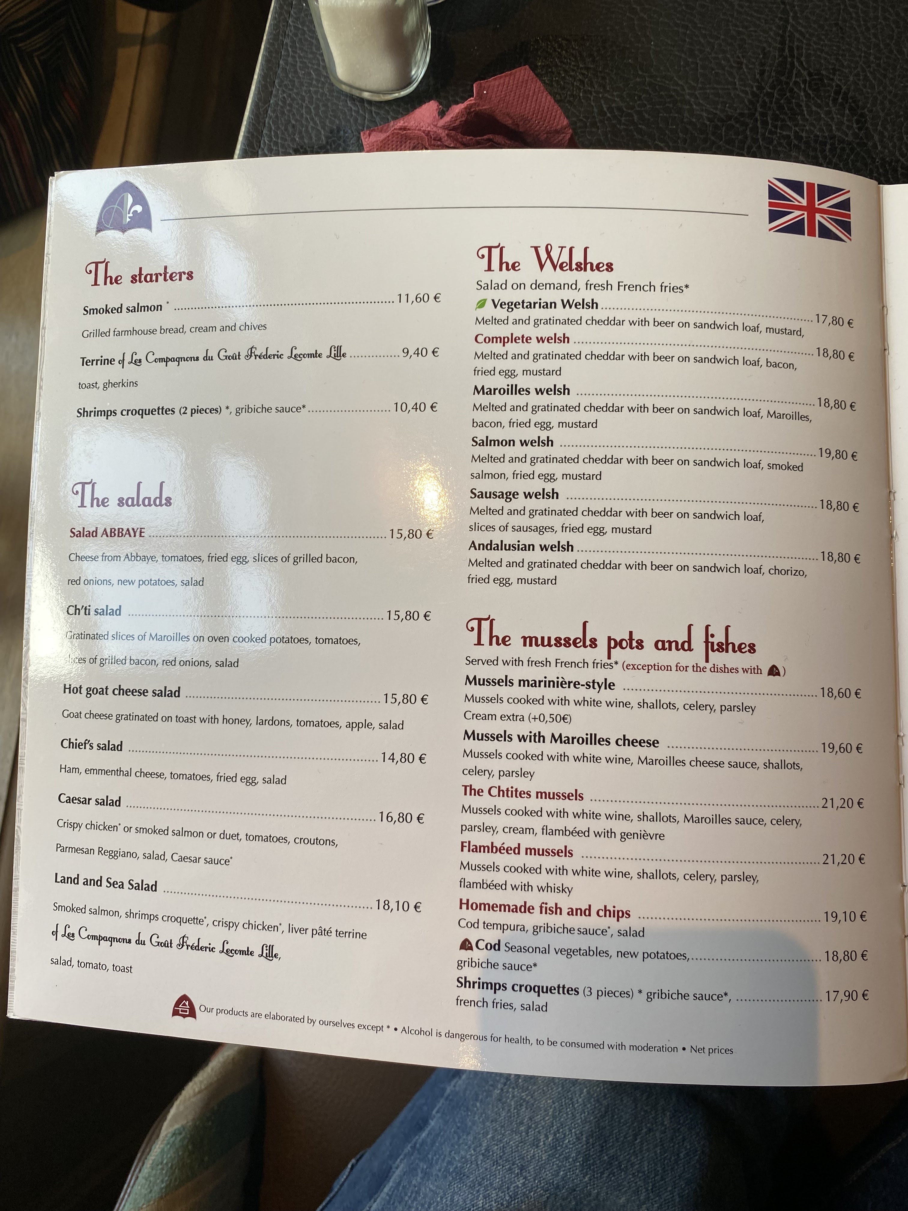 Meilleures moules au maroilles que je connaisse, pas juste une petite crème, du vrai maroilles. Dessert maison succulent. Service impeccable. Un vrai plaisir.