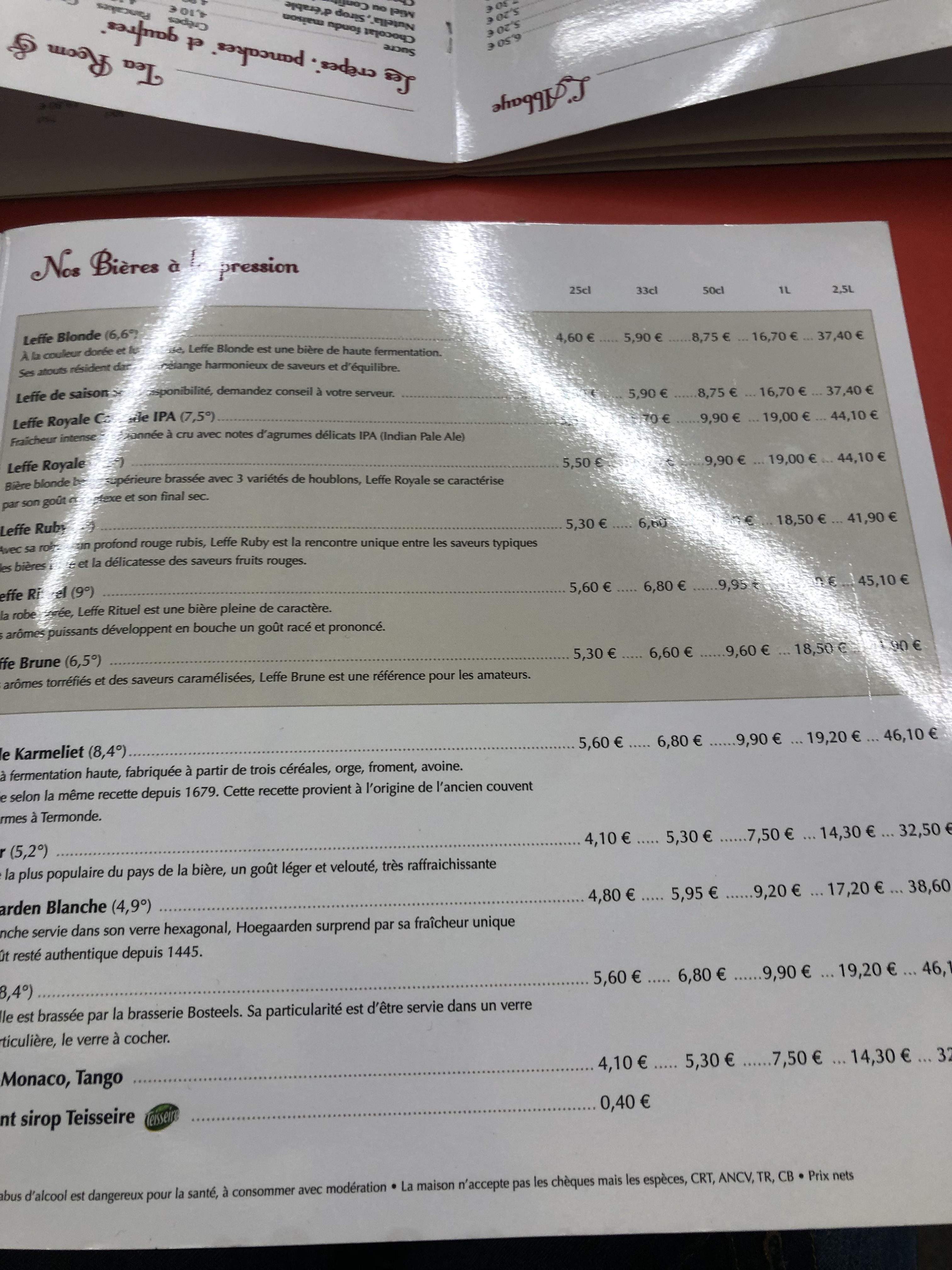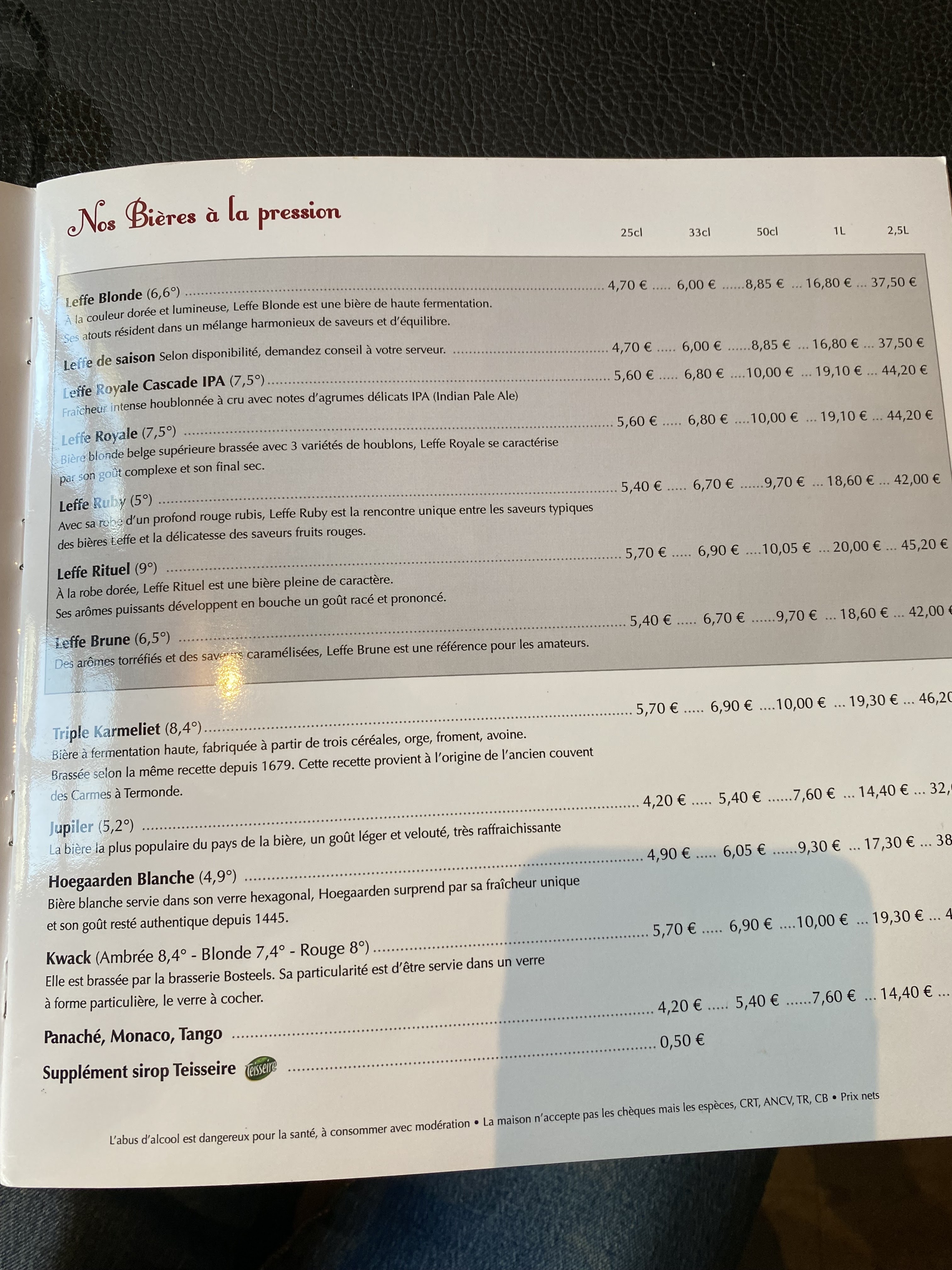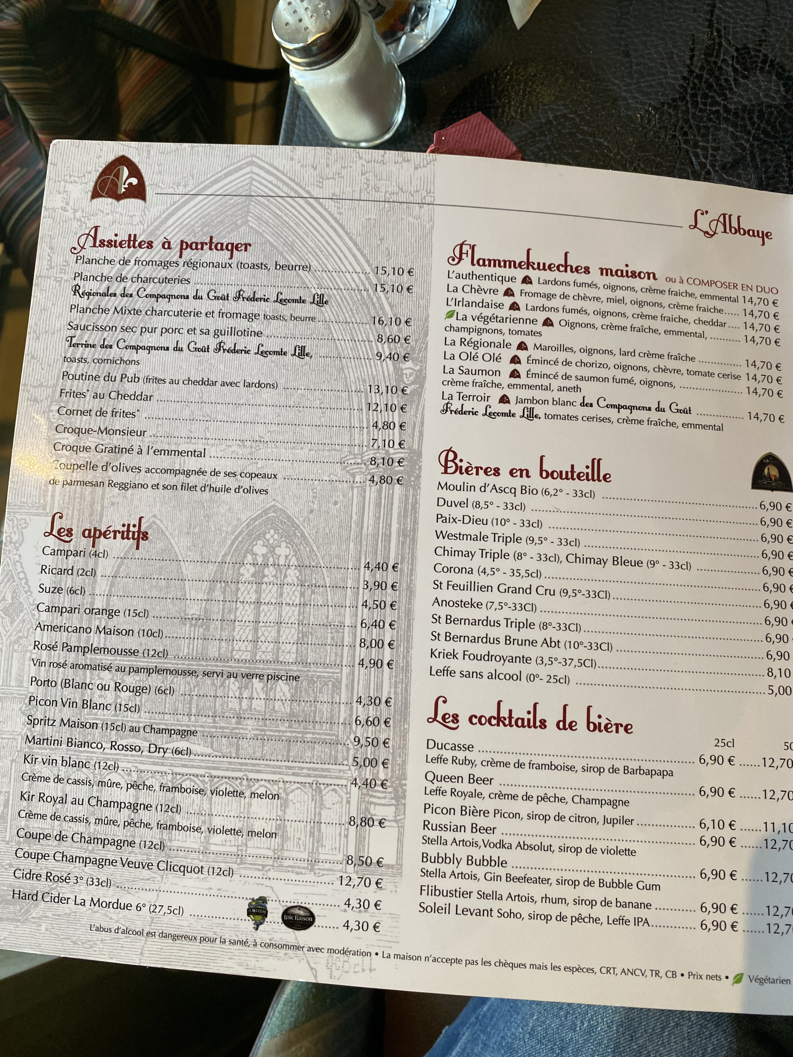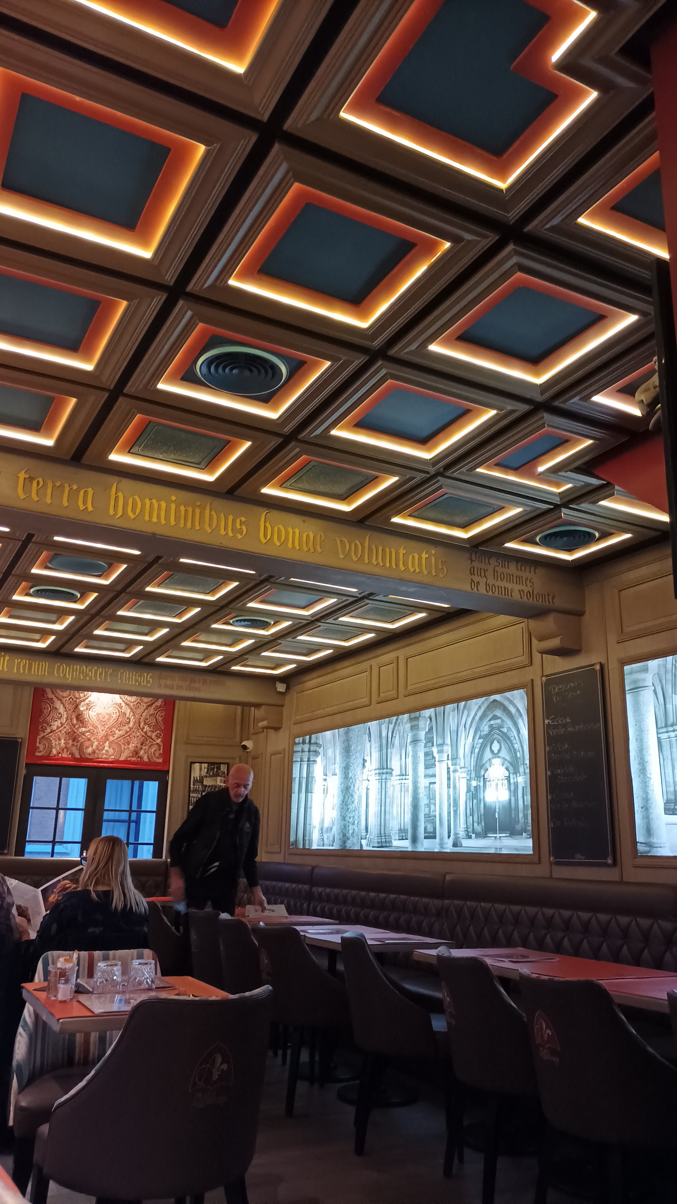 Une Brasserie agréable bien placée au centre de Lille, au décor intérieur à l’image d’une Abbaye Servie professionnel, une belle collection de bières à la pression La carbonnade était très bonne