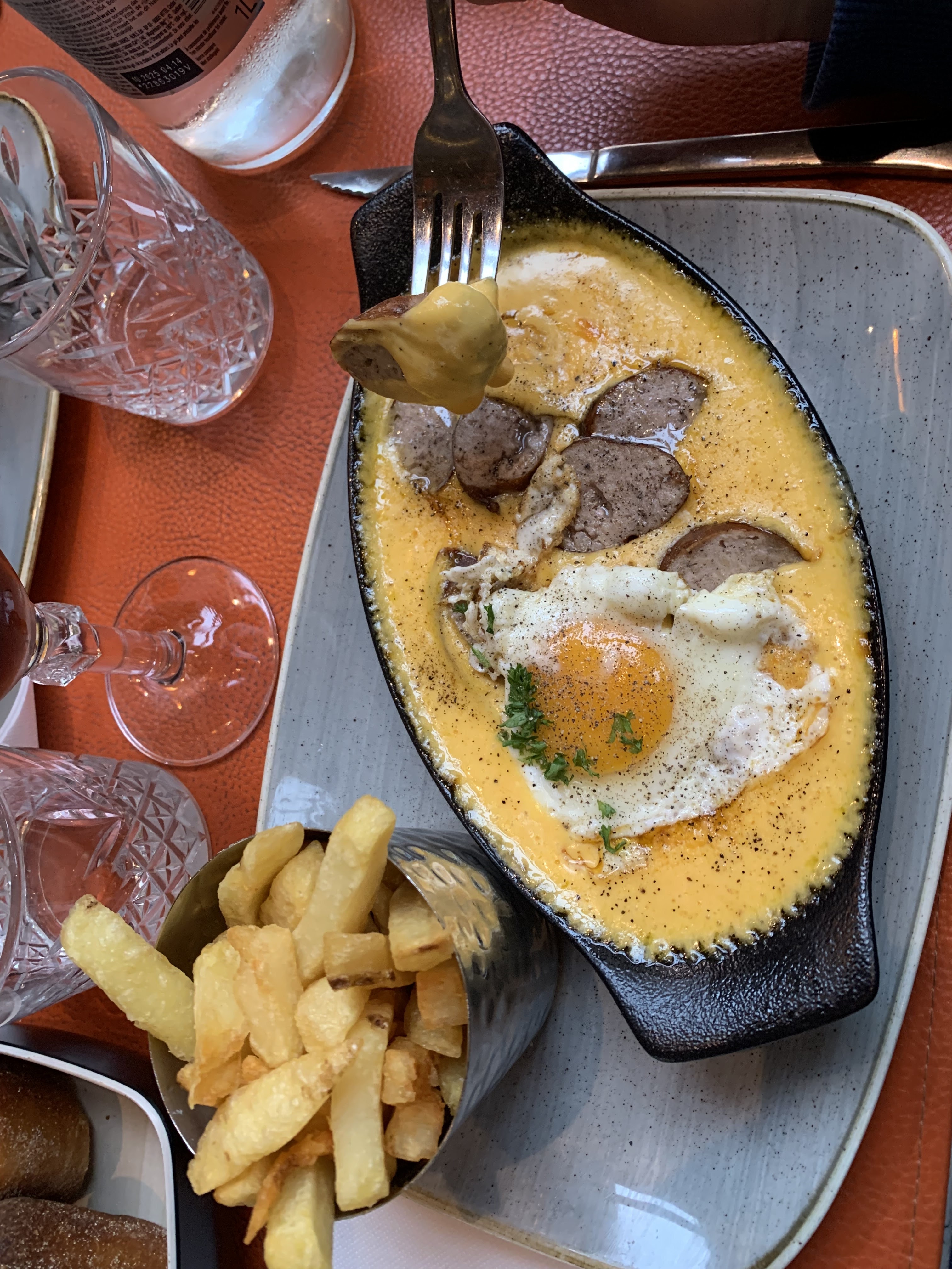 On nous a trouvé de la place pour 5 à l'étage, nous étions contents le coin pres des escaliers et du passe plat est assez calme et cosy. Nous avons été satisfaits du repas. Je trouve le wesh un peu cher par contre. 17€ certes avec option Maroilles (mais pas hyper dosé non plus) pour une tartine et ingrédients simples, je sais qu'on est sur un endroit central mais dommage quand même. La planche fromage contient de gros morceaux généreux pour 14€ là par contre je trouve que ça correspond au prix.