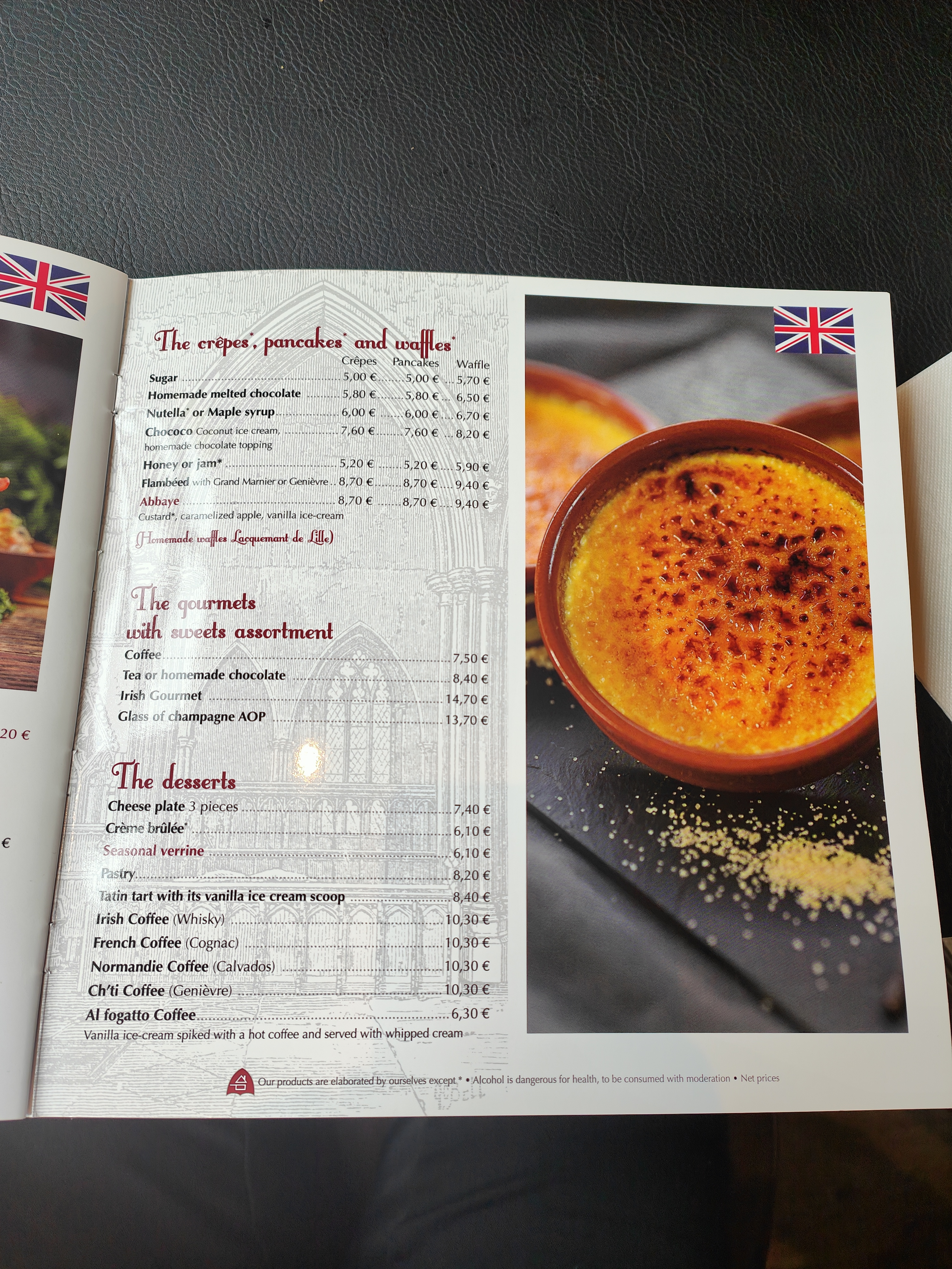 Une carbonnade flamande délicieuse et copieuse dans une brasserie typique de la Grand'place de Lille. C'était délicieux mais bien que je sois conscient que 2023 est une année de forte inflation, j'avoue que 18€ le welsh, 9,20€ le dessert et 7€ la bière sont des tarifs qui commencent à devenir prohibitif. Le lieu explique peut-être cela.