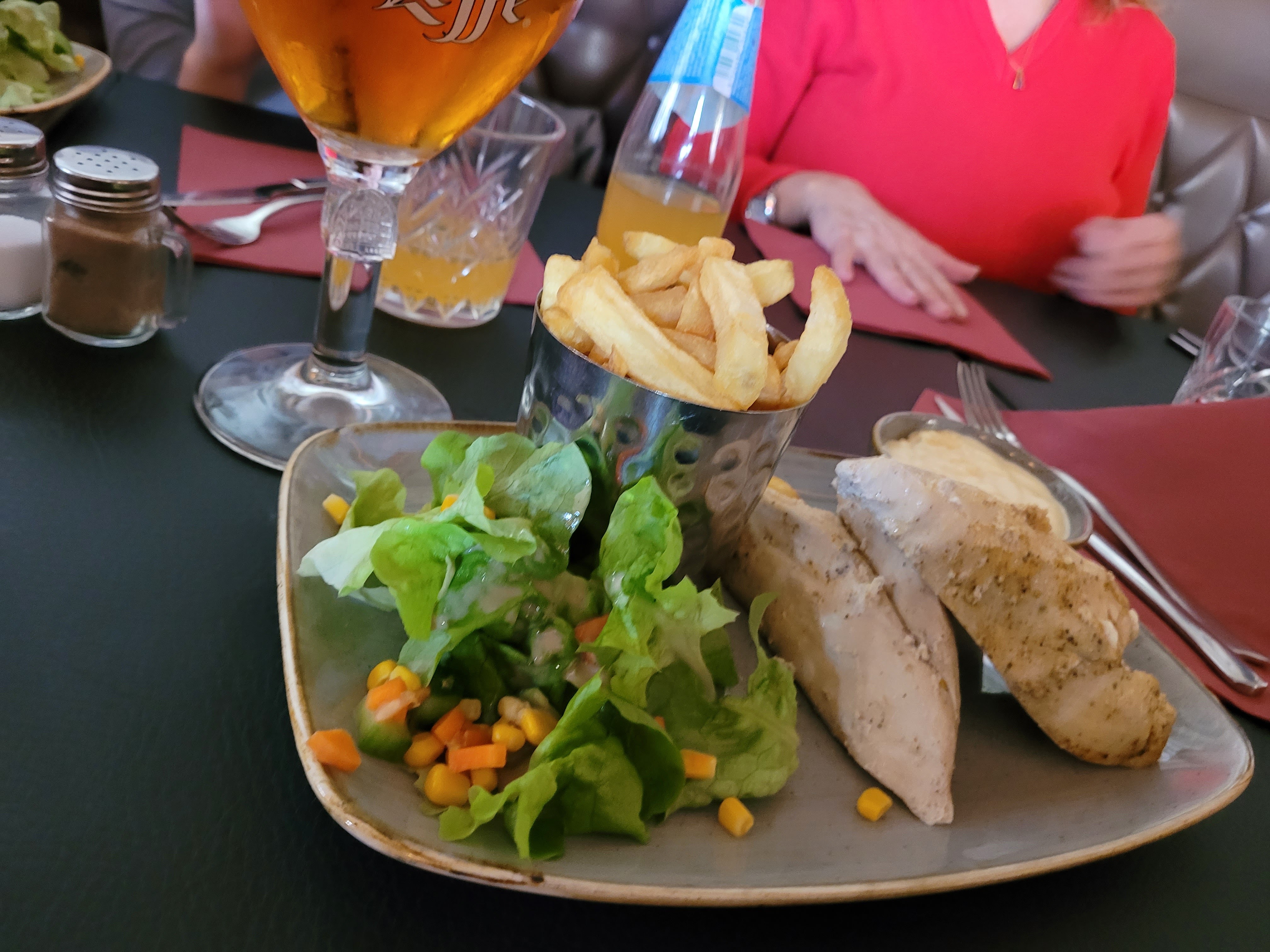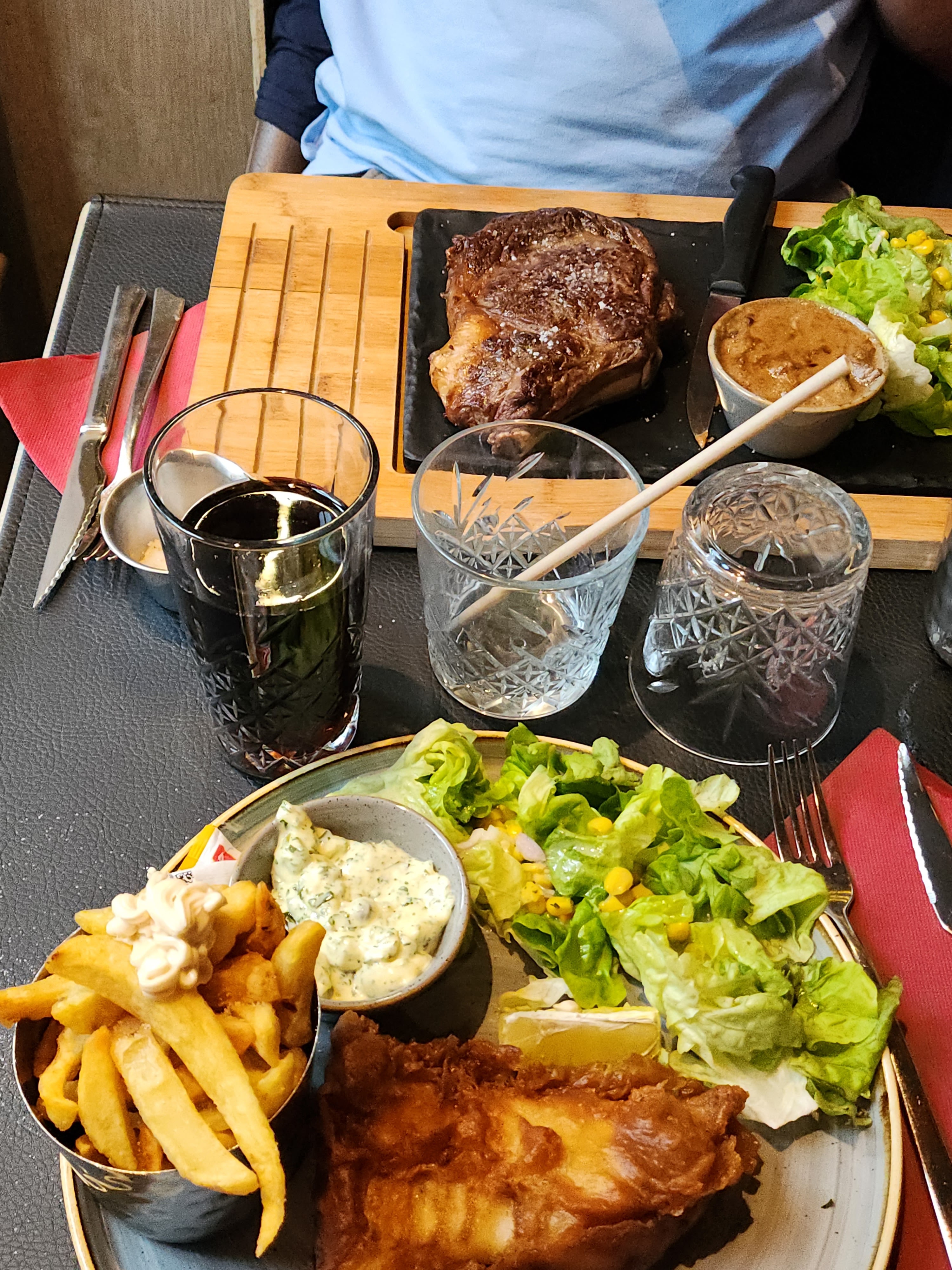 Très bon et copieux.. Service impeccable... Salle et WC propres (c'est important).. Au choix dehors ou dedans.. On a passé un bon moment à deux merci.. Pae contre mon fish and chips très gras et les frites pareil des petits bouts (moi j'aime les frites longues) mais c'est un avis personnel donc selon les goûts ça passe.