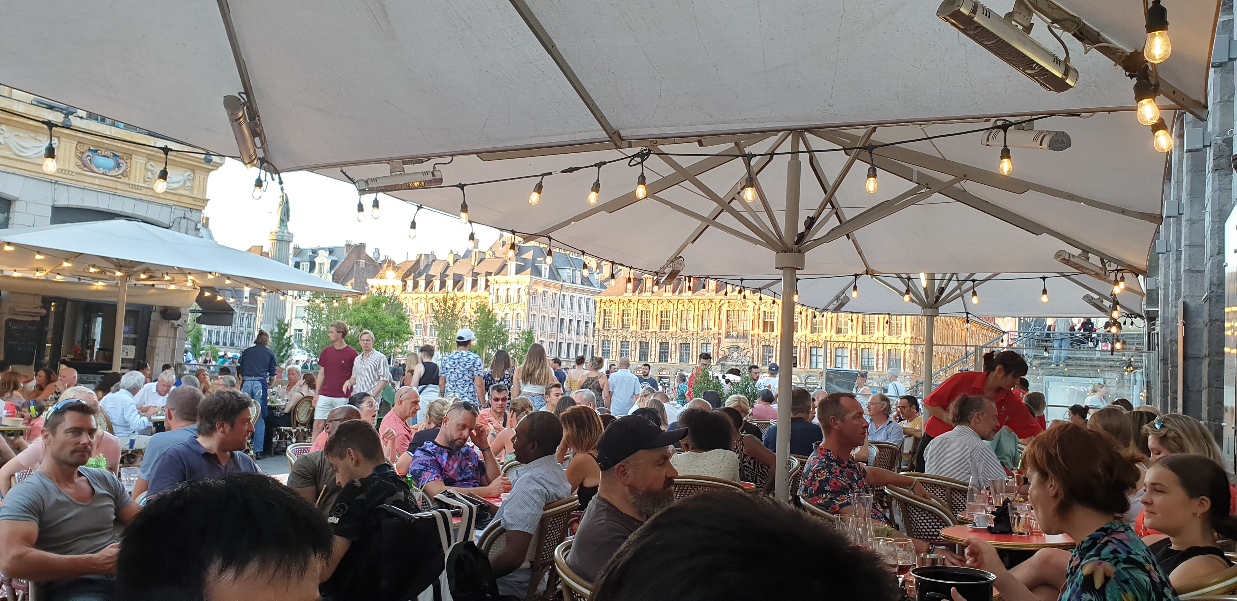 Premier rayons de soleil à Lille , les touristes arrivent ! A 15h30 les habitués sont refoulés pour boire un simple verre !