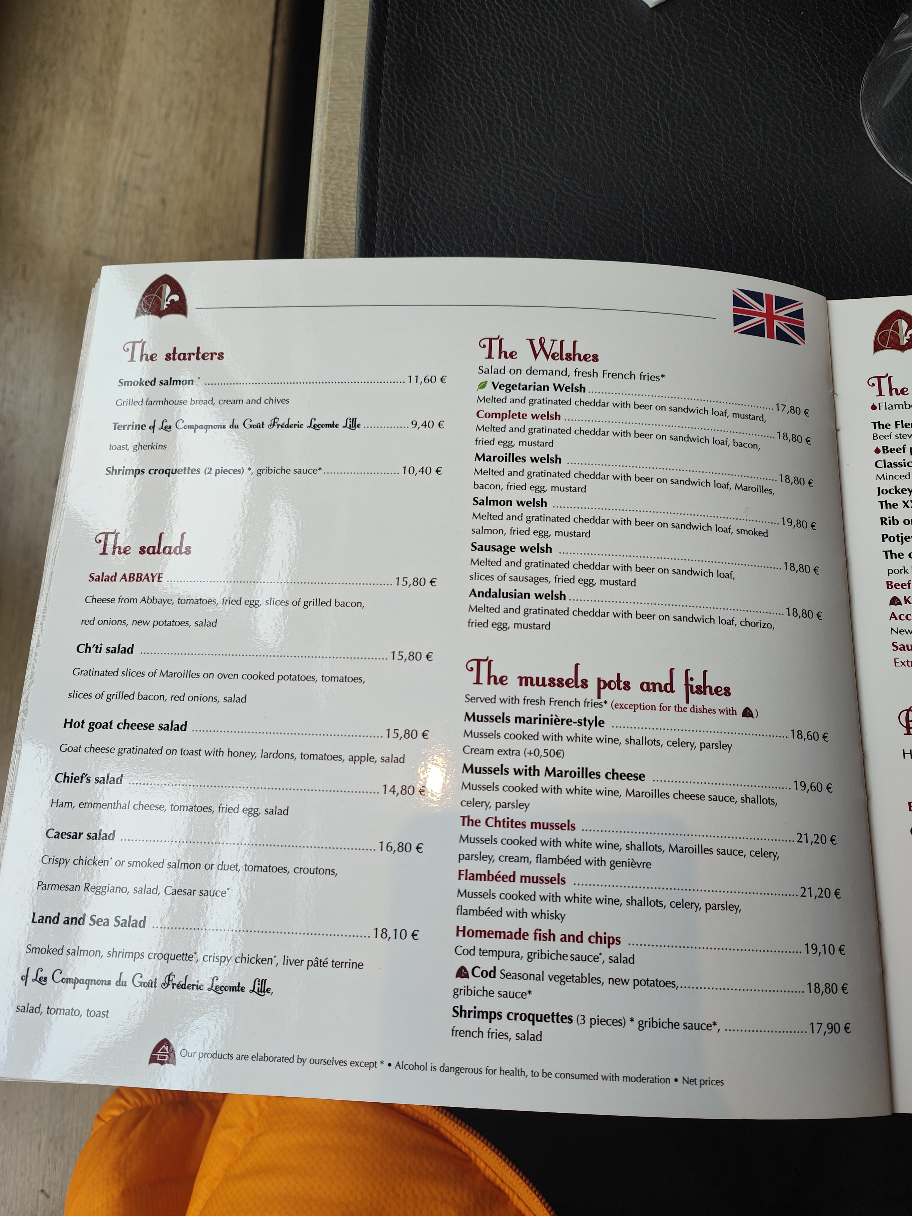Welsh maroilles très bon. Service déplorable, pas de sourire, presque j'ai embêté le serveur en terrasse, pas le temps de boire une gorgée de bière qu'on me servait mon plat alors qu'il n'y avait pas d'affluence...le jeune serveur très agréable quand à lui... le service intérieur est peut être mieux mais personnellement je ne retenterais pas l'expérience dans cet établissement.