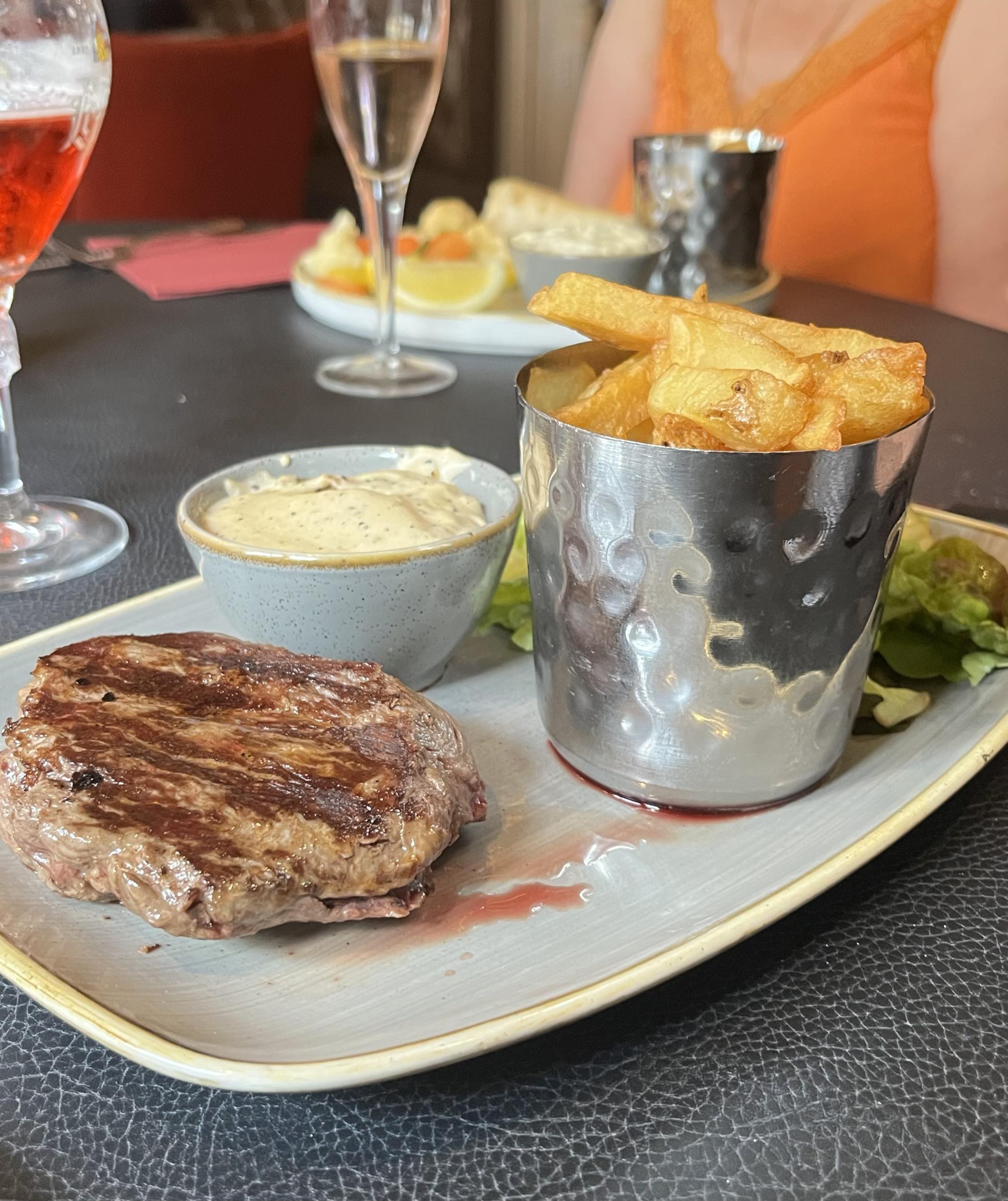 Le pavé de bœuf est incroyable (viande de qualité frites croustillantes avec du goût) le service également a l’écoute et super agréable. compter entre 20/30€ pour un repas avec boisson rapport qualité prix attractif. je recommande