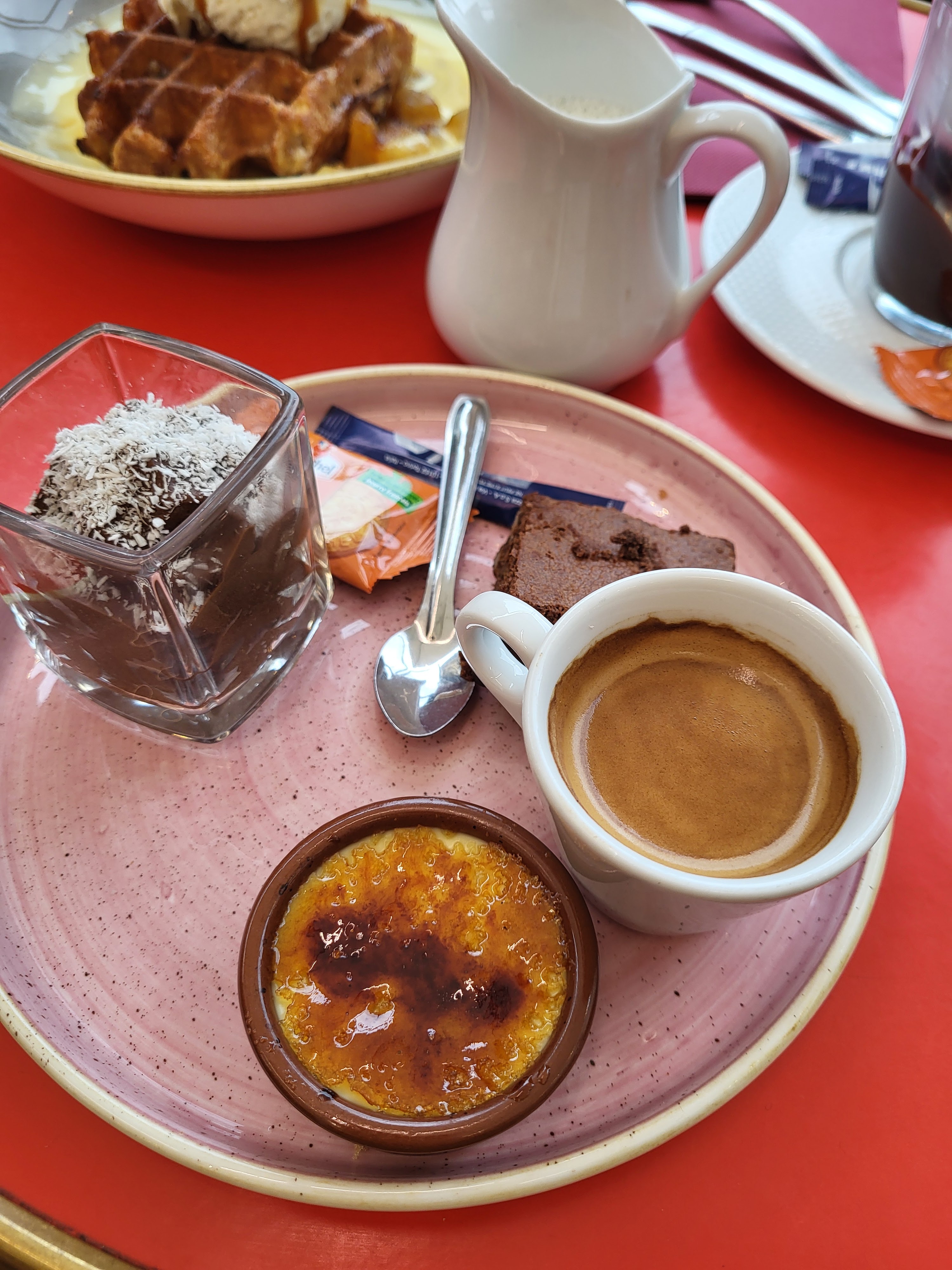 Ne prenez pas les gaufres elles ne valent pas le coup pour le prix, et une jeune femme a laissé son numéro à un serveur qui en a profité pour dire « je pourrai lui apprendre à se maquiller comme ça » à son collègue plus beau que lui, pas cool. Les filles ne shootez pas votre shot