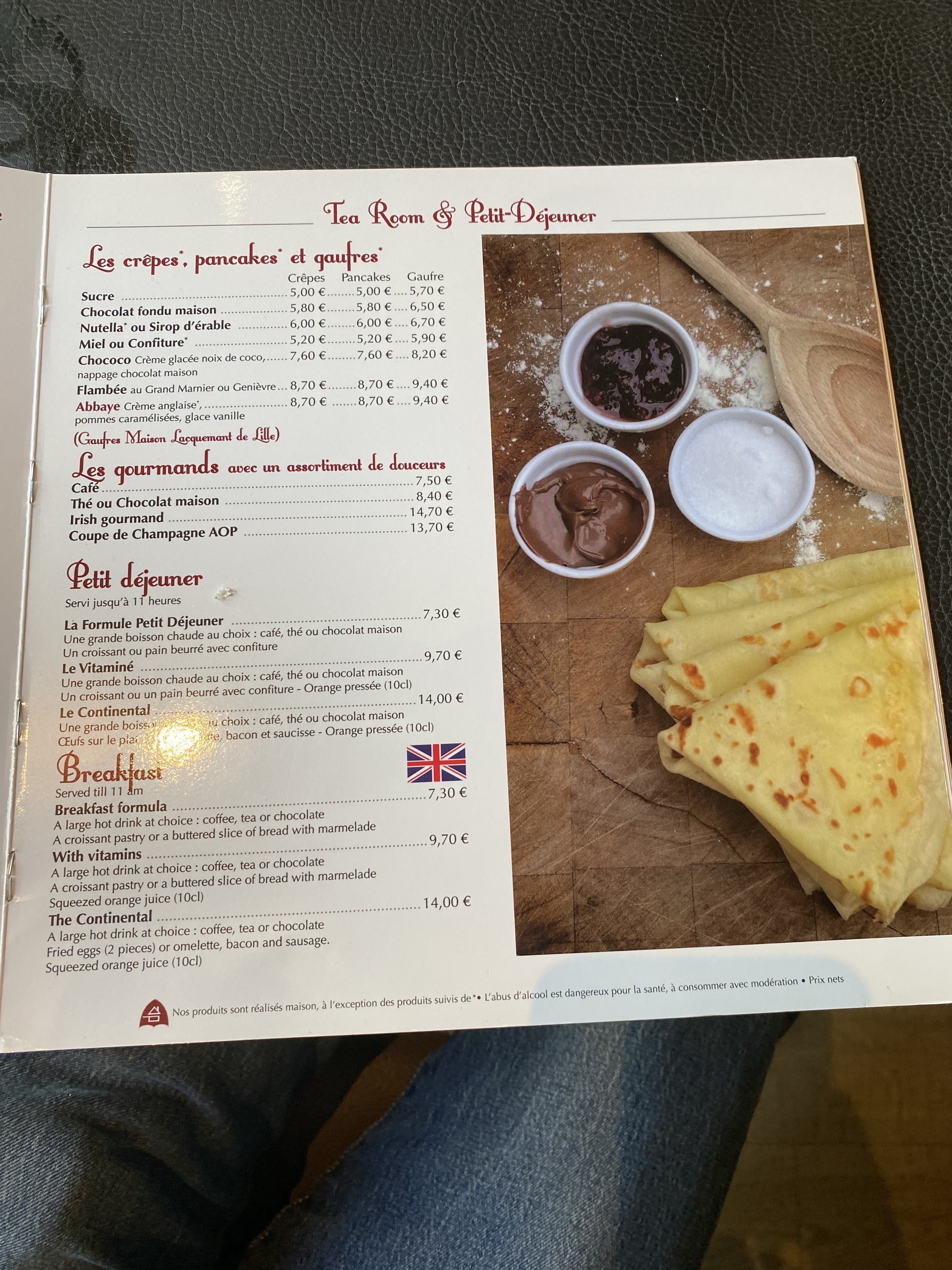 Bistrot animé au centre de Lille. Visité deux fois, une pour boire un verre et l'autre pour déjeuner. Je recommanderais la crêpe au chocolat, les gaufres étaient superbes aussi. Délicieux café glacé. Extrêmement occupé aux heures de pointe. Une visite, nous avons eu une serveuse fantastique et la deuxième visite un serveur moins intéressé, ce qui était dommage.