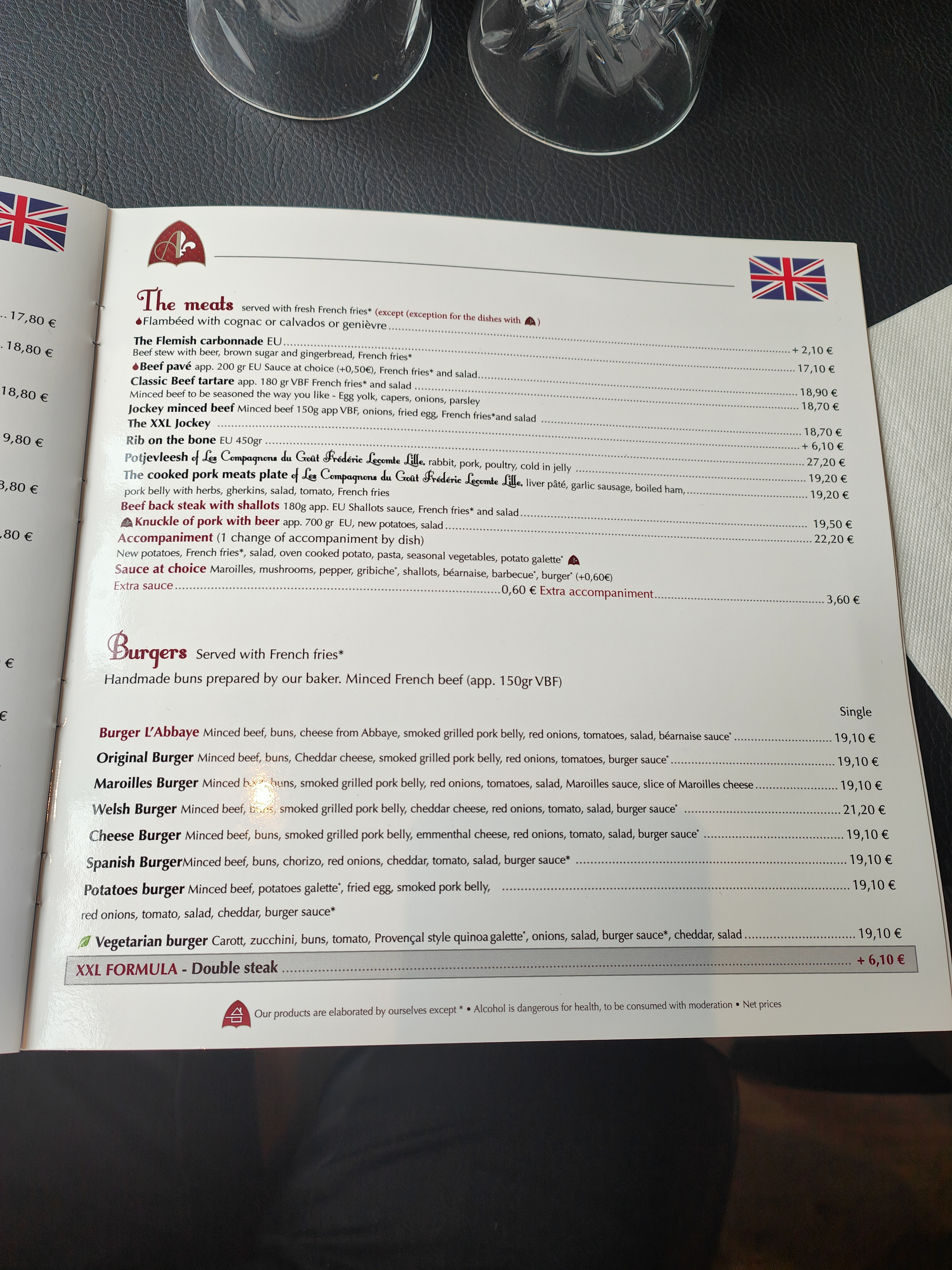 De passage j'ai souhaité faire mon top 3 des restau Il reste dans ce top 3 Un Burger très bon, pain maison, cuit comme je le souhaitais On y retrouve la fameuse Kwak blonde 😄 Accueil du nord donc rien à dire Ambiance top Je recommande et je reviendrais bien évidemment