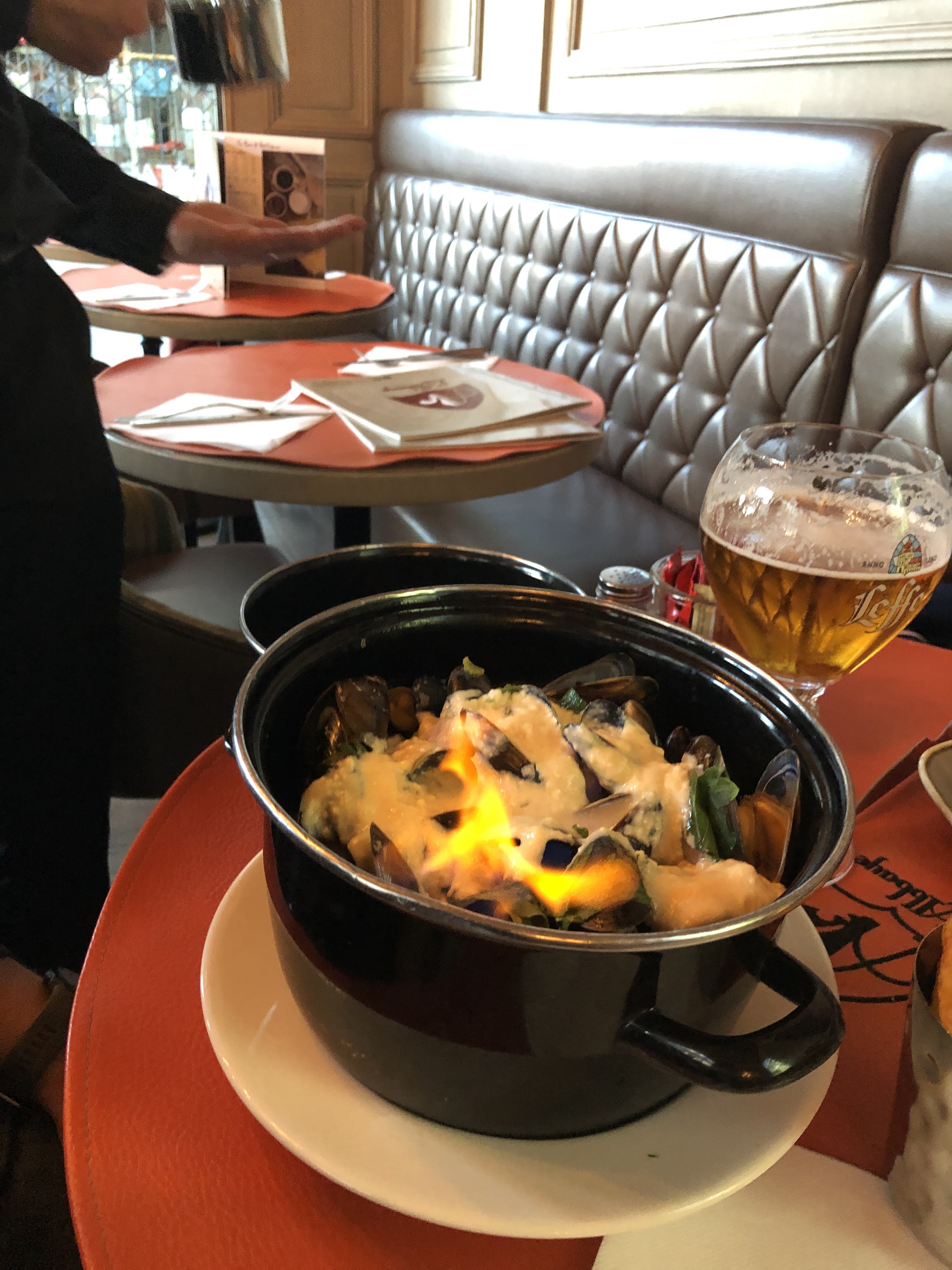 Très bon restaurant au milieu de tout. Excellente sélection de bières et variété de préparations de moules. J'ai eu la variété Ch'ti, ce qui était une nouvelle expérience pour moi. La sauce au fromage rendait la dégustation des moules un peu plus difficile, mais le goût était une belle récompense. Le personnel était sympathique et très serviable. Les manifestations qui se déroulent cette semaine ont traversé la région et le personnel a été vigilant et réconfortant tout en restant calme et professionnel.