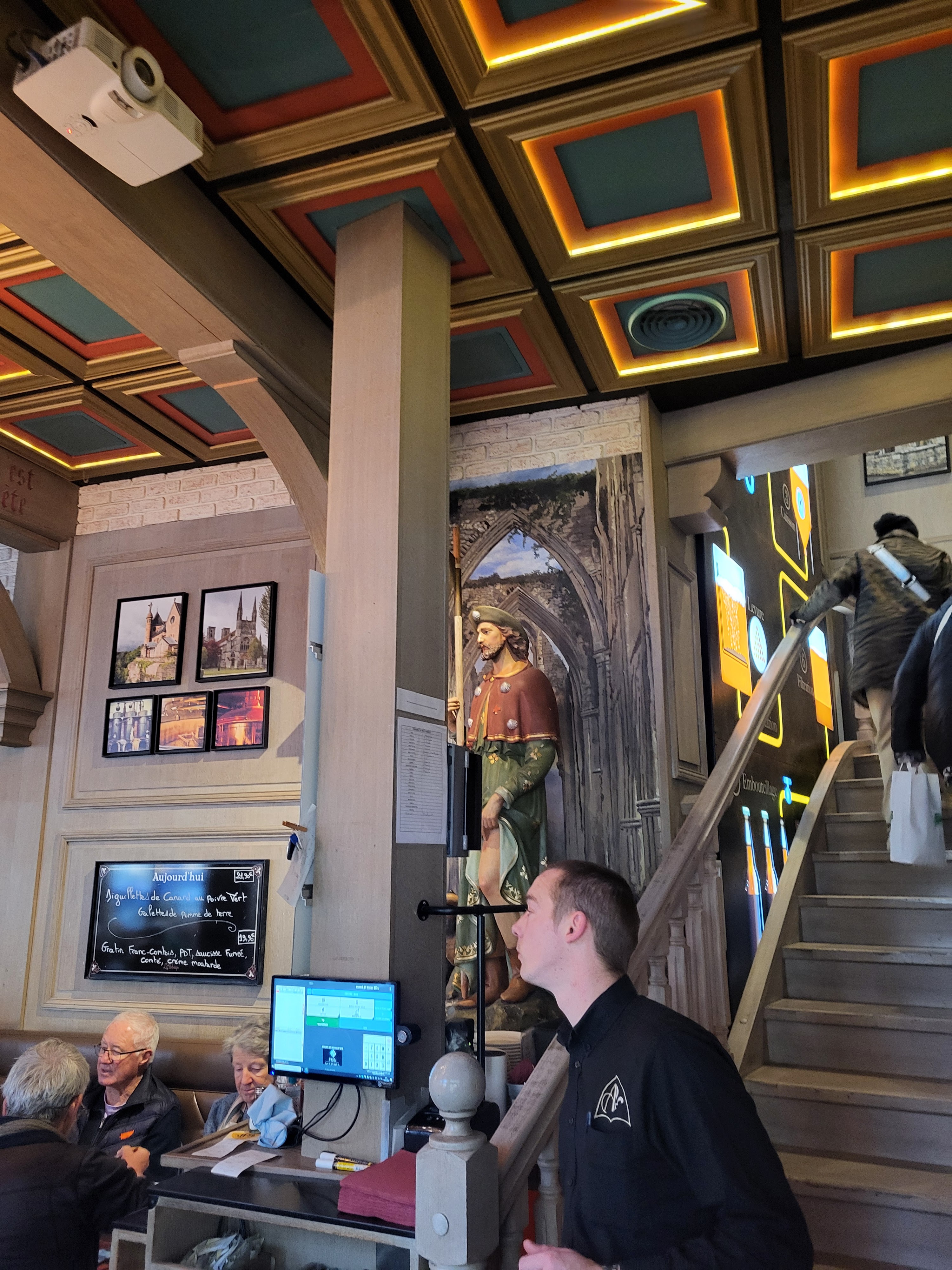 Au centre ville, avec une vue idéal sur la place de Gaulle, le restaurant est superbement décoré façon abbaye avec un historique d'une marque de bière très connue et dont le café tirait son nom précédemment. A l'entrée, que la gauche, derrière un pilier, vous pourrez découvrir une belle statue de St Roch et sien kien (traduire par St Roch et son chien). N'hésitez pas à questionner les serveurs sur l'histoire de ce saint et du chien qui l'a nourris...