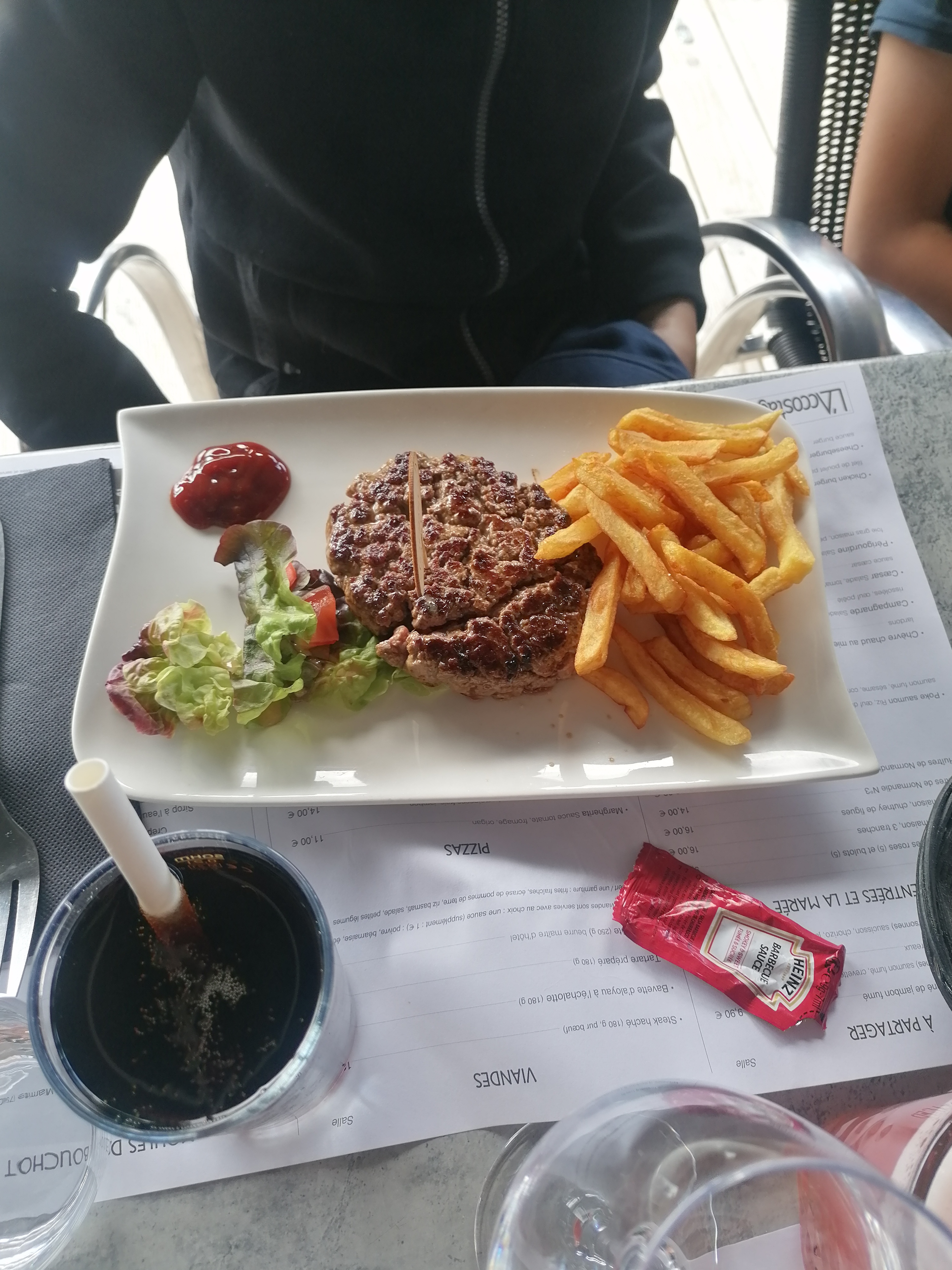 Nous avons bien mangé. Plats standard. Rien d'exceptionnel au vue des prix. Salade d'accompagnement : un filet de sauce toute faite et carrés de tomates qui se battent en duels. Ça doit être compliqué de faire une vinaigrette maison pour un cuisinier.... Le gros bémol les plats étaient tièdes, frites, hamburger, galettes... Serveuse sympathique et professionnelle.