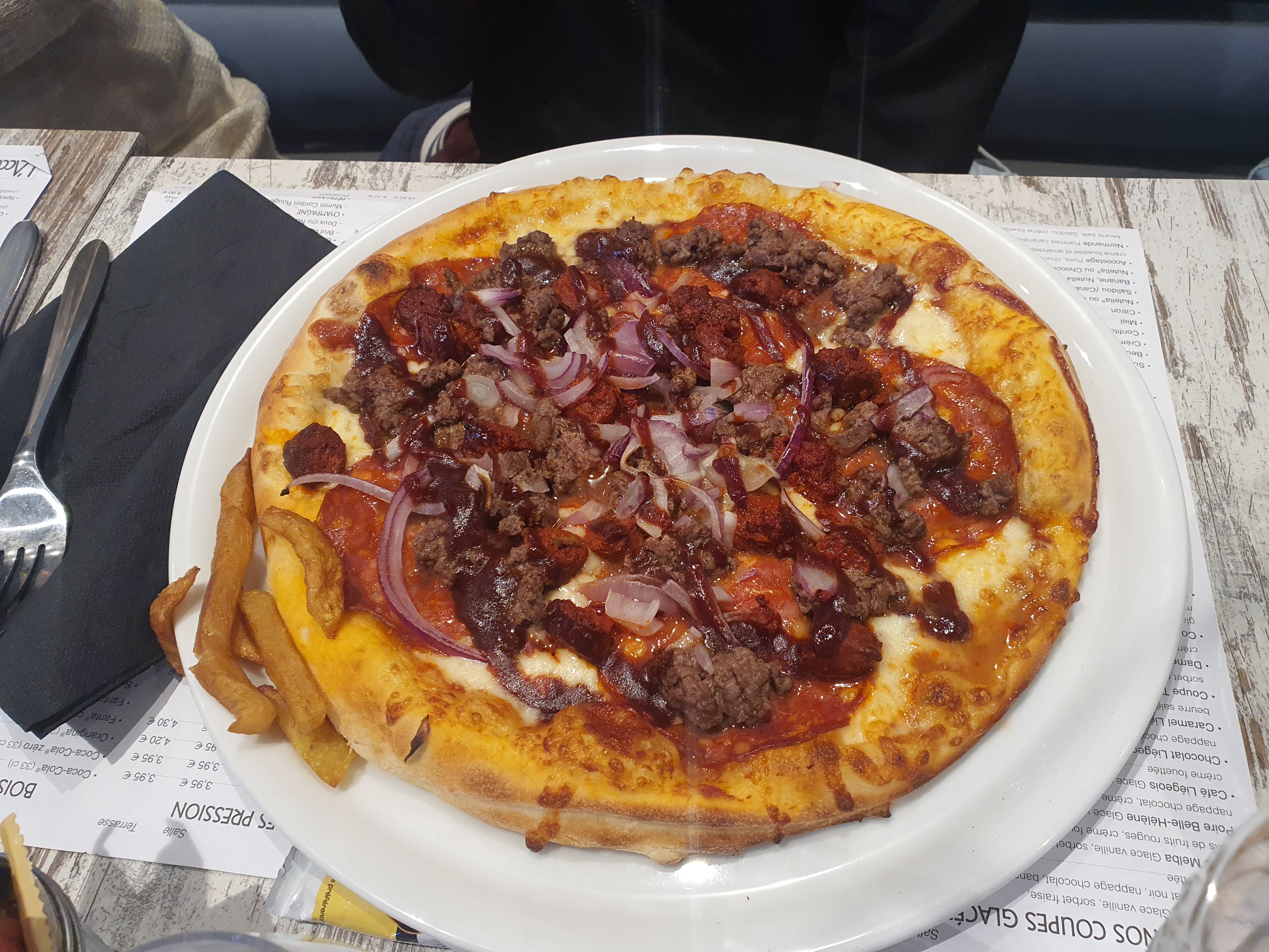 Je vous déconseille de prendre une pizza, la mienne était assez petite et la pâte n'était pas bonne. On m'a affirmé que c'était du fait maison, alors le problème vient peut-être du four ou des ingrédients. Ne vaut absolument pas le prix. Par contre, on m'a dit que les moules étaient étaient très bonnes, et les desserts sont bons.