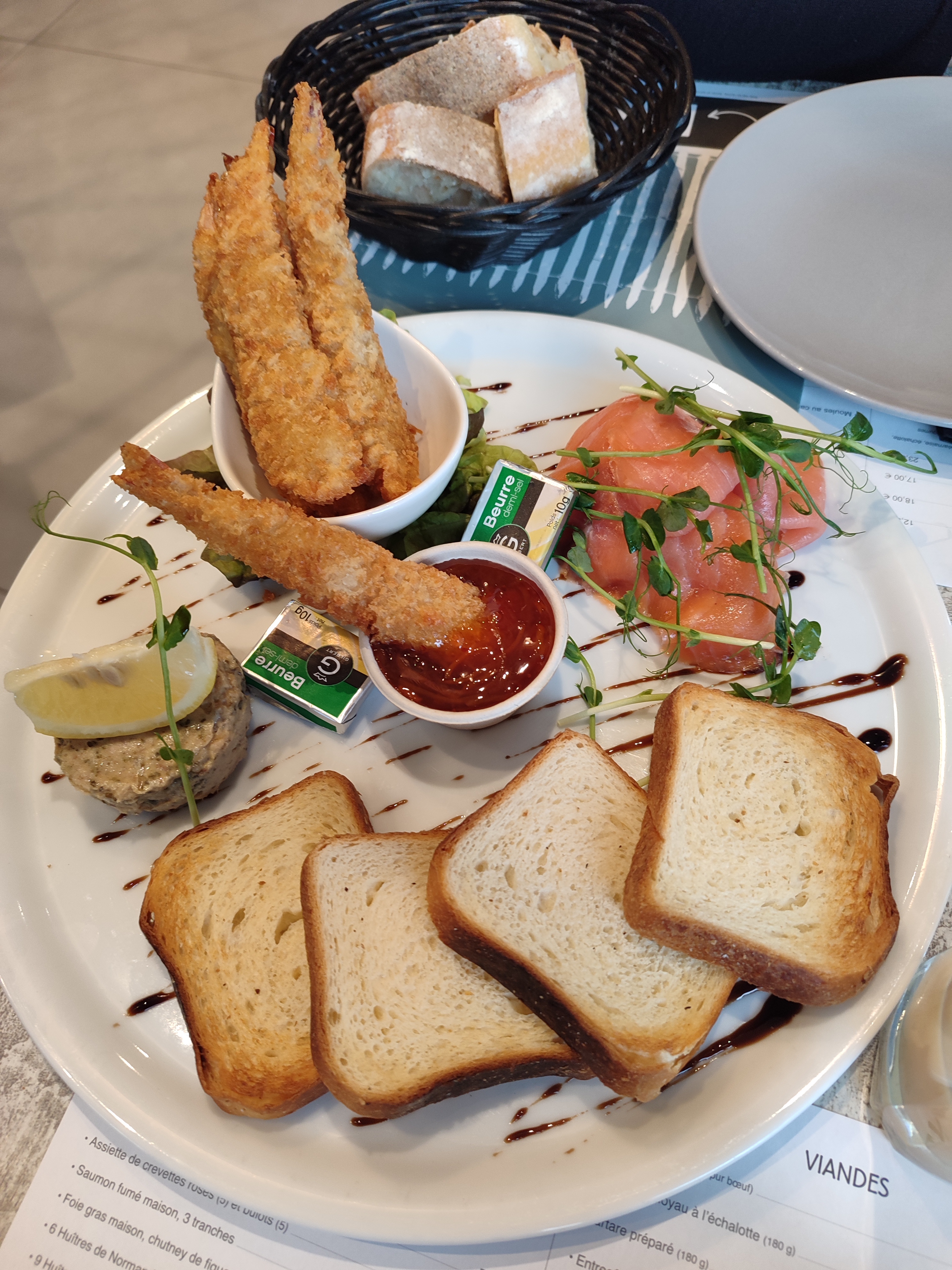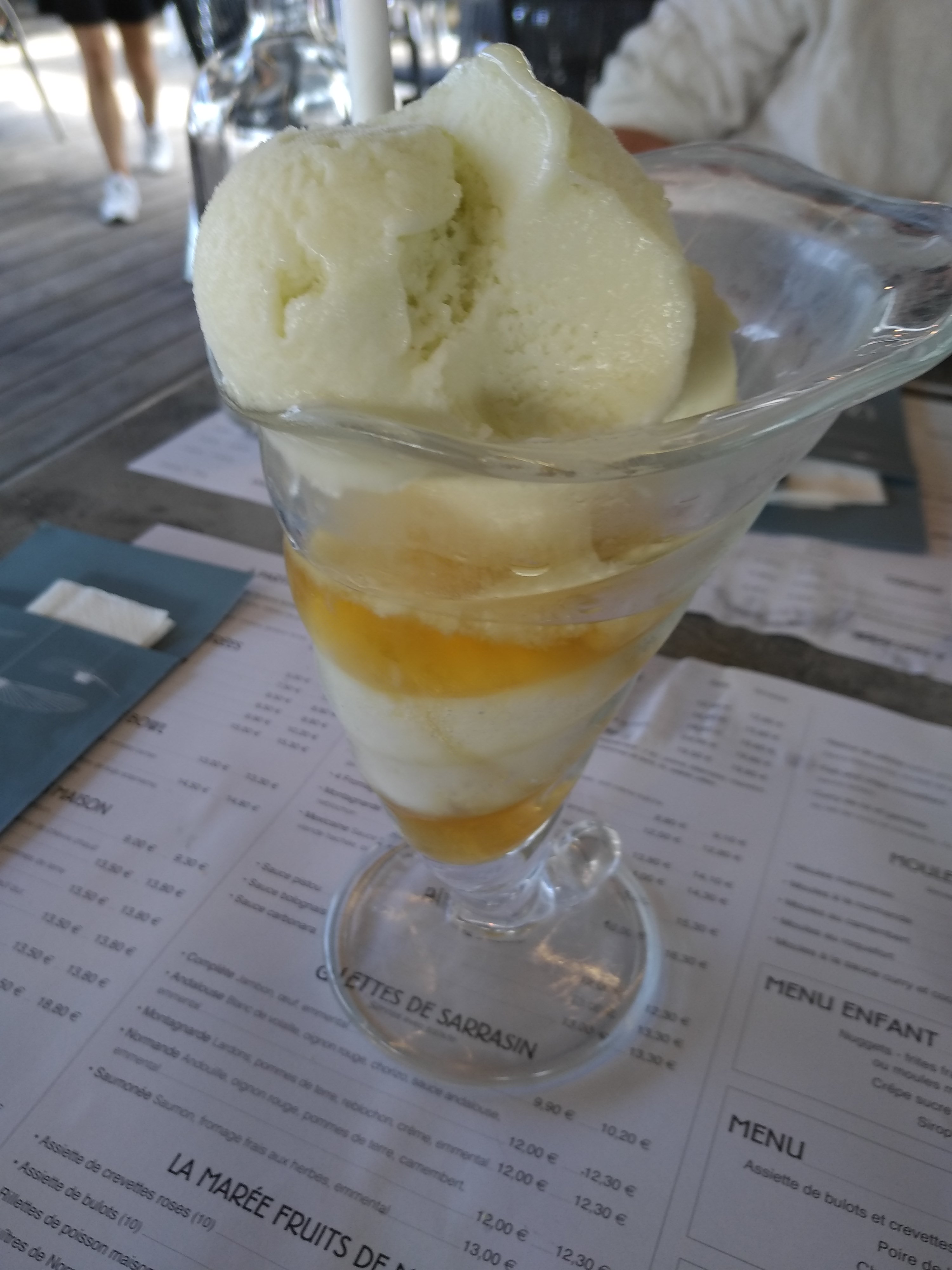 Journée ensoleillée sur les plages normandes, un agréable débarquement à l improviste à l accostage... Cadre agréable, personnel à l écoute, disponible et dynamique. L apéritif est agréable et le temps nous est laissé pour faire notre choix... Le soleil est present, profitons en. Le choix de la carte est vaste, sans trop en faire avec un certain choix pour les végétariens. Les riz de gambas sauce curry/coco était succulent et la sauce d une douceur ensoleillante pour les papilles, la glace mont st Michel ( avec une crème fouettée maison) une sucrante fin pour une jolie soirée familiale et une gourmande surprise. A votre tour d y accoster