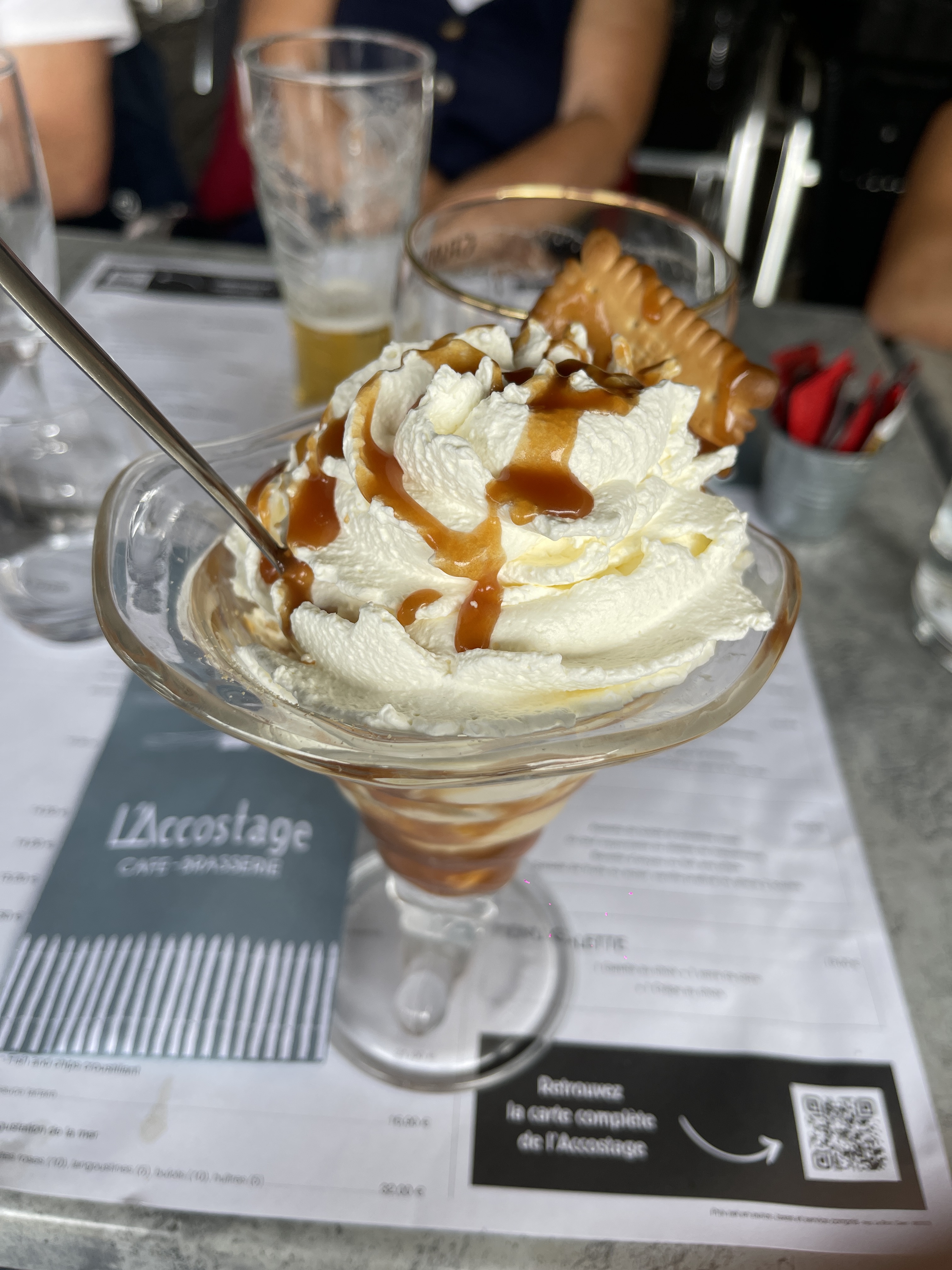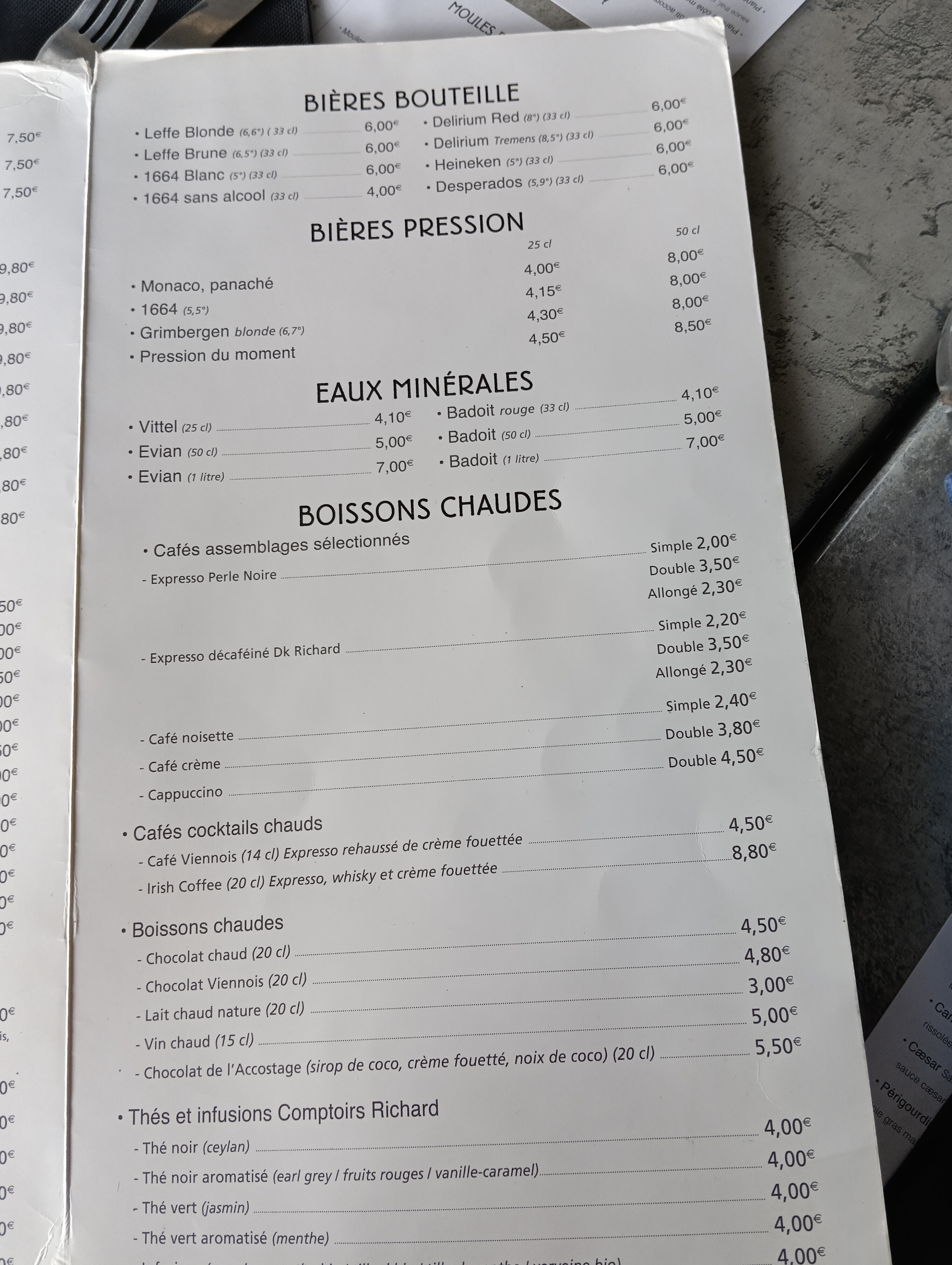 Très bonne emplacement à côté de la mer. Serveur sympathique. Café liégeois 4,50€