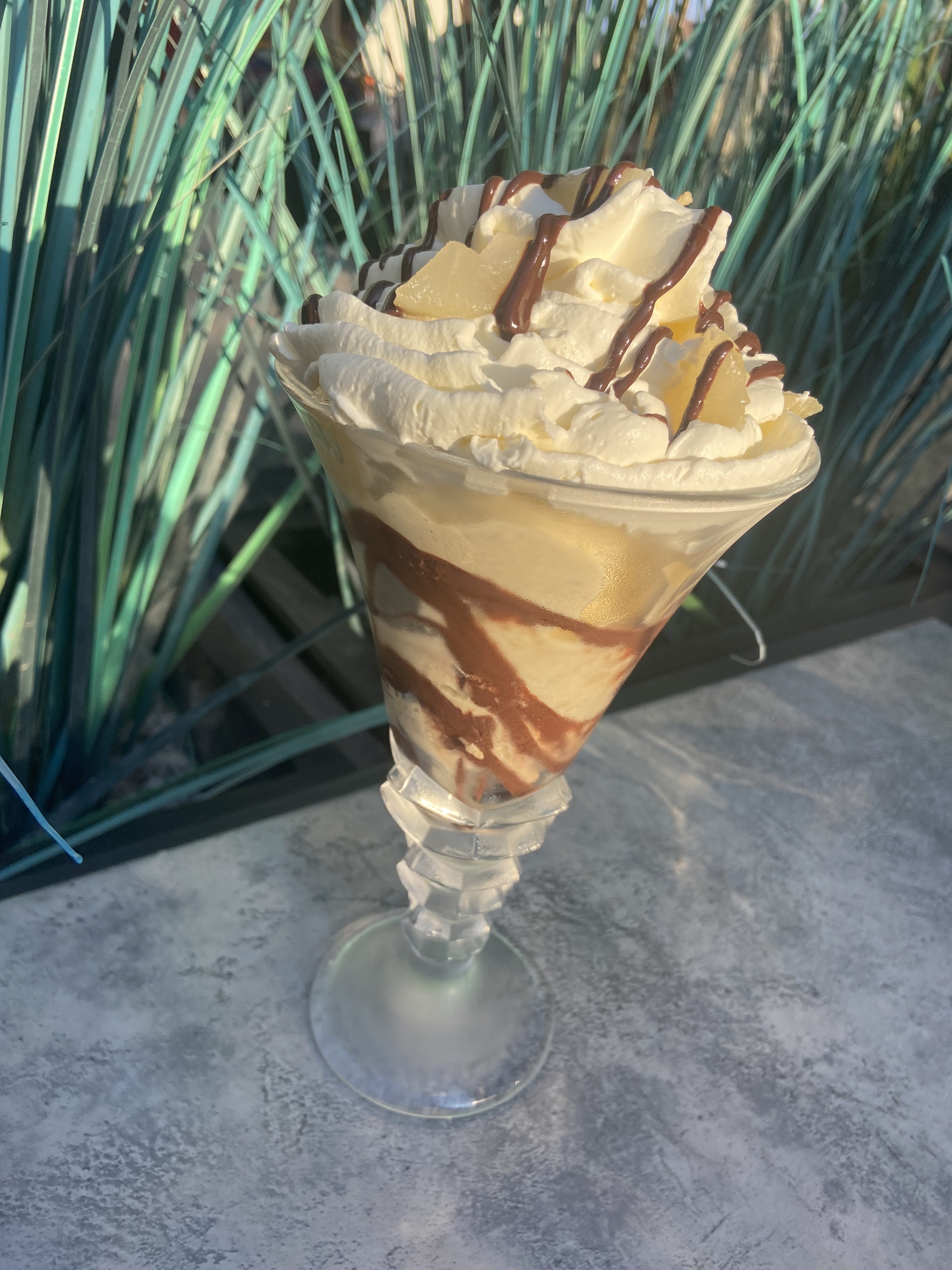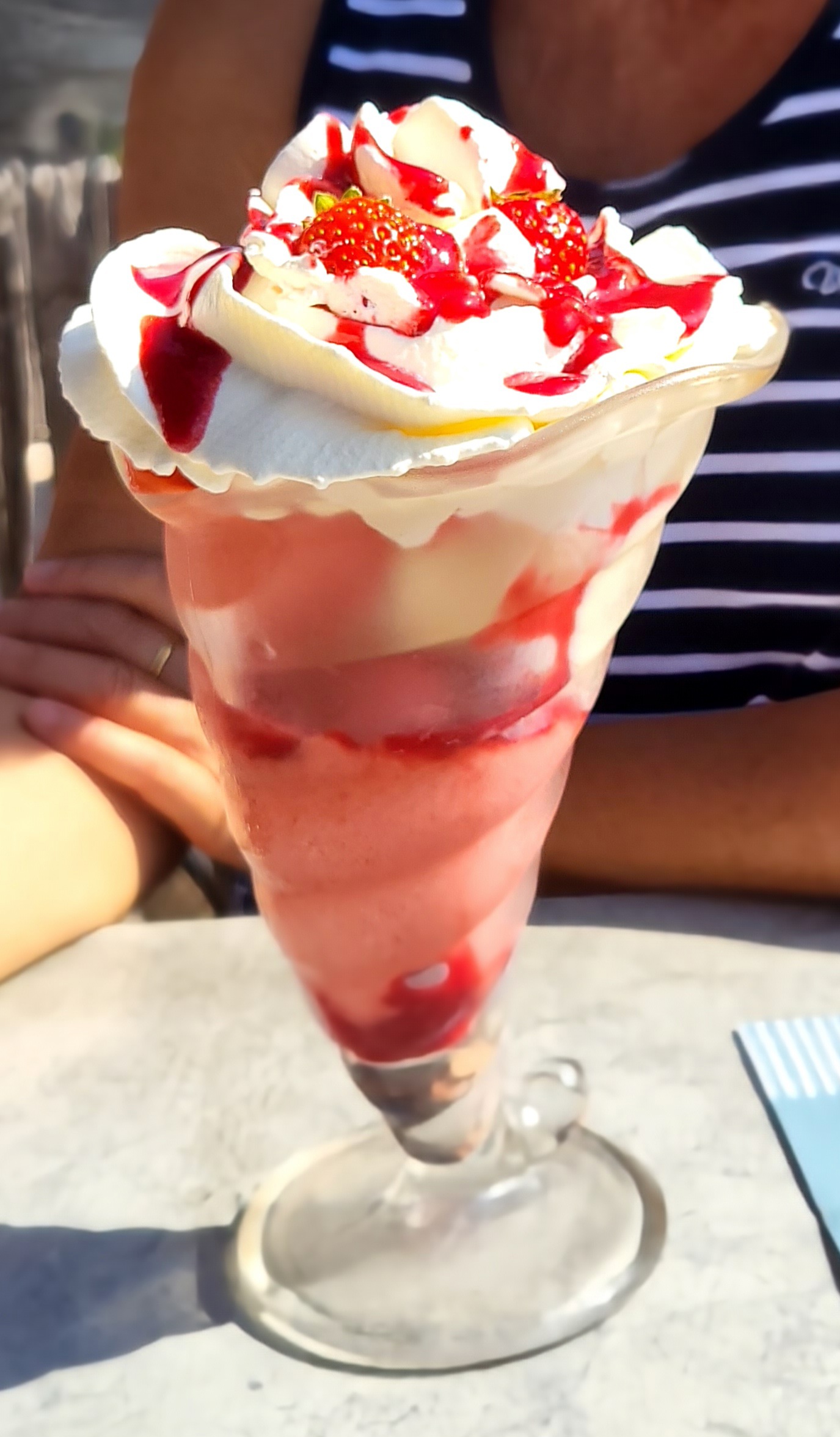 Très bonne adresse service rapide cadre magnifique avec Vue sur mer mini golf et jeux gonflable à disposition pour les enfants... prix abordables par rapport à la qualité équipée de baies vitrées pour se protéger du vent , personnel à l'écoute malgré le monde et les desserts sont incroyables ainsi que toutes les variétés de parfum,bref je recommande...