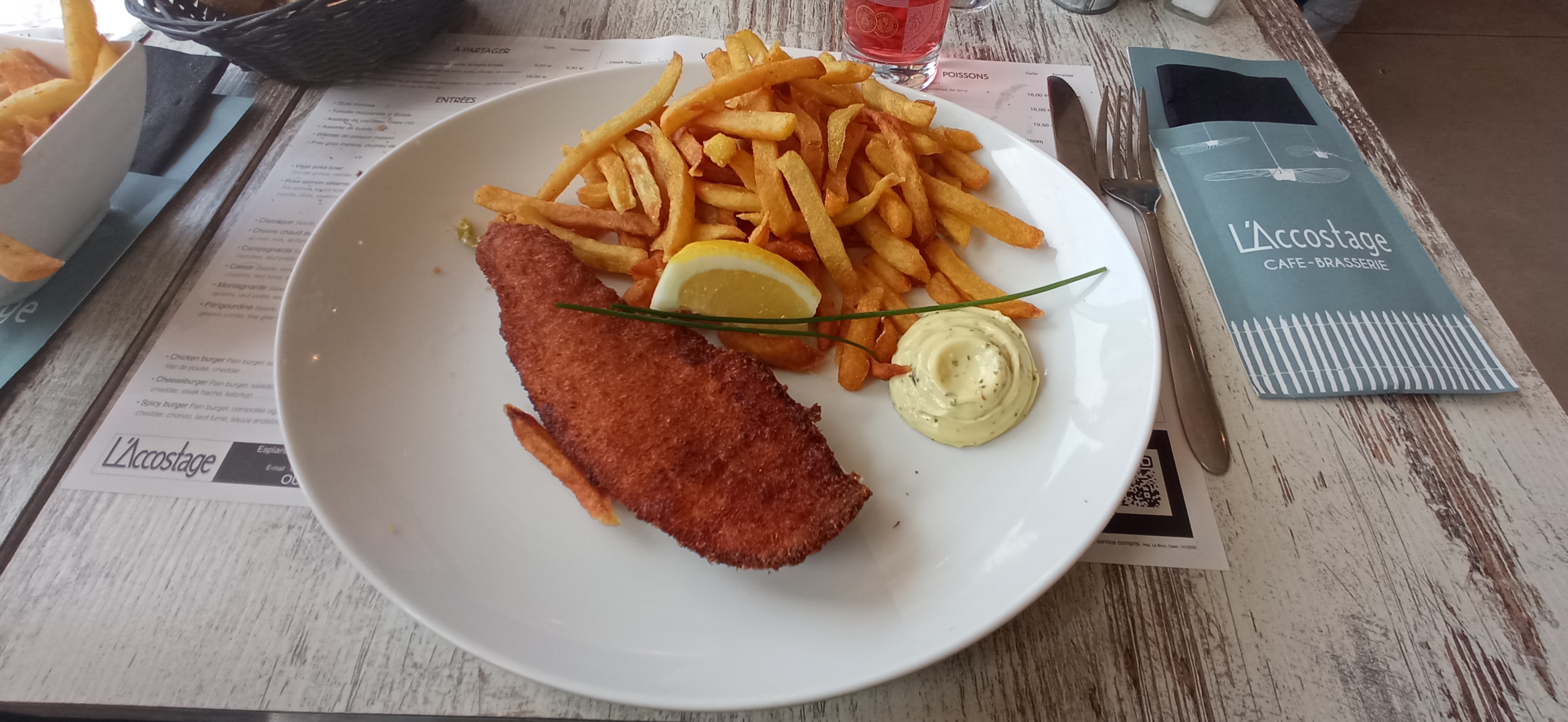 This restaurant is absolutely spot on, lovely atmosphere fantastic food and great service. They were super patient with our group of 15 especially as only I could speak French. Really recommend it to anyone travelling back on the night ferry as a way to wrap up your holiday. Un grand merci à toute l'équipe de l'Accostage pour votre service! Je passe par Ouistreham très souvent et ceci est mon nouveau restaurant préferé en attendant le ferry vers l'Angleterre :)