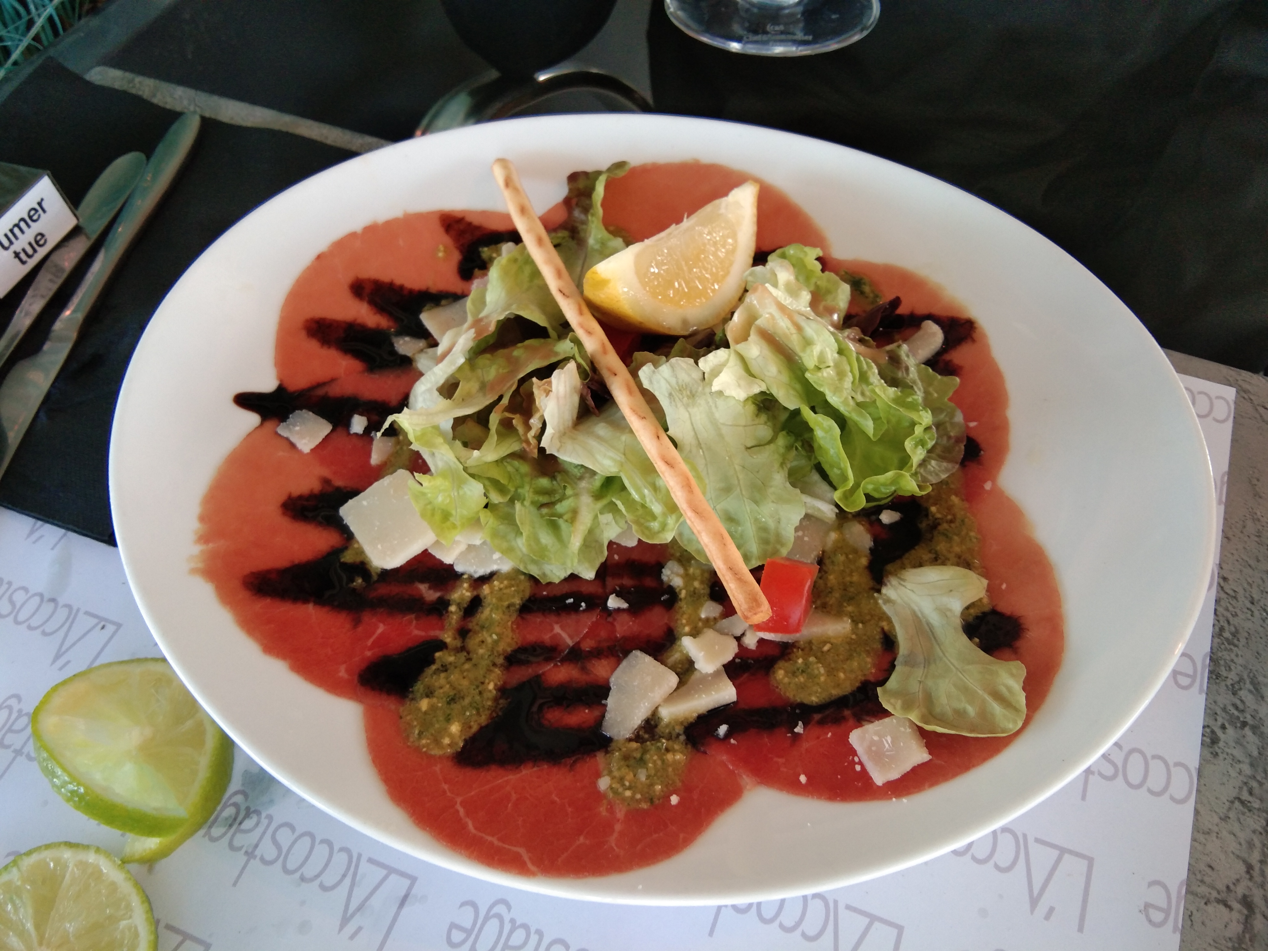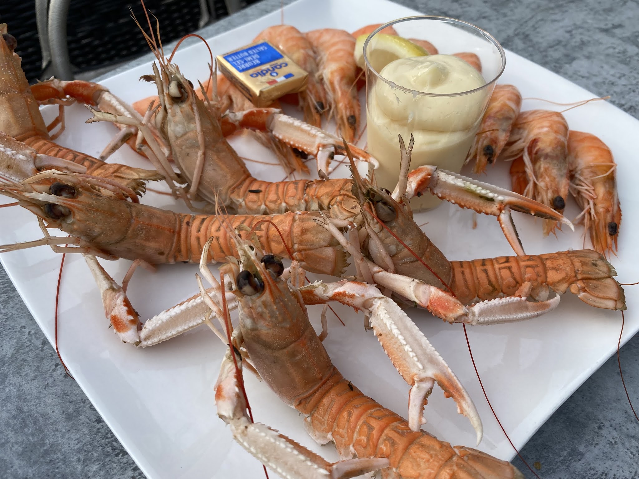 Evitez d'accoster pour prendre un repas ! Assiette de crevettes/langoustines un peu chère et pâtes bolognaises limite mangeables, préférez une orange pressée ou un café dans l'après midi, sans plus. Le service : sans être désagréable, le serveur avait l'air de porter tous les malheurs du monde sur son dos.