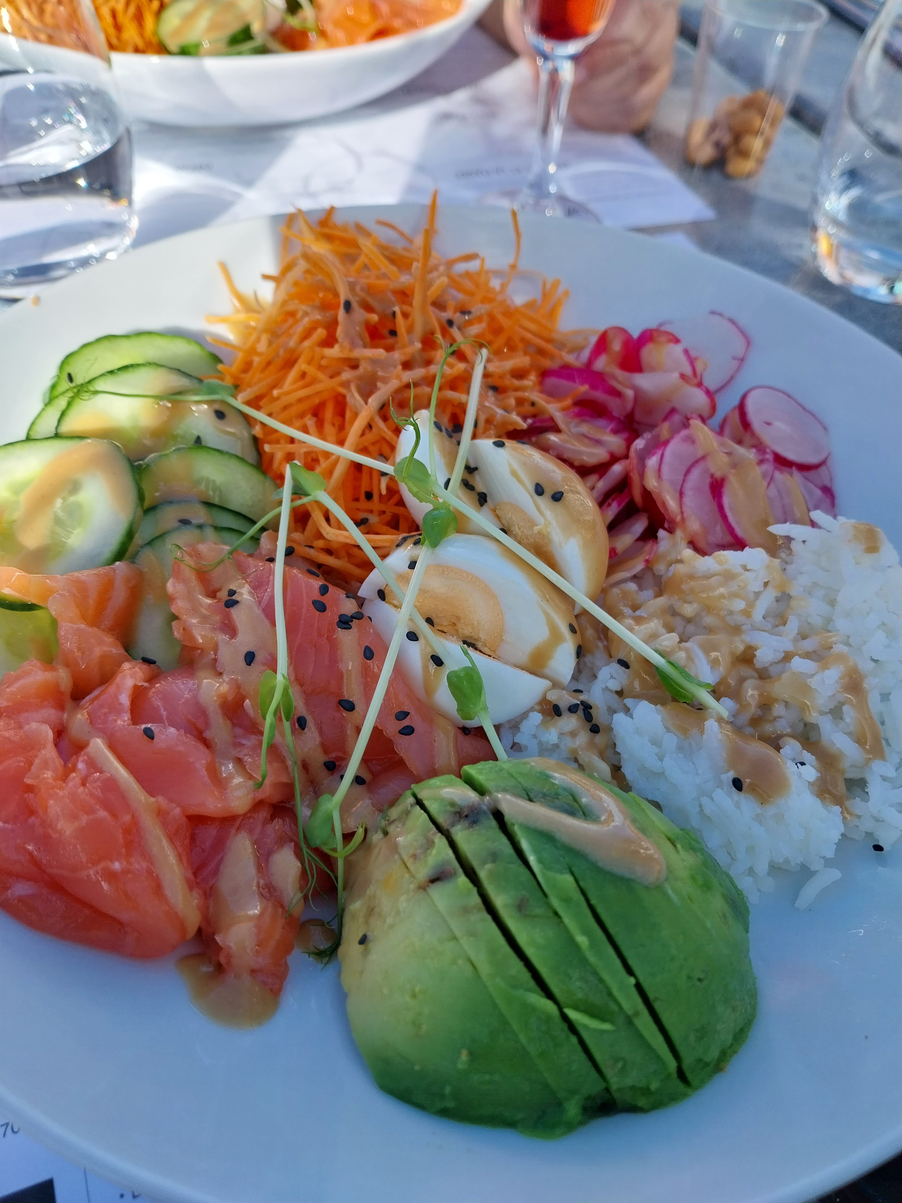 Une visite dans ce superbe restaurant ! Un cadre juste fabuleux , des plats délicieux ! Fait maison et un bon rapport qualité prix ✨ Nous avons passé une excellente soirée, les serveurs sont très serviables, à l’écoute ! Les présentations des plats sont raffiné , un des très bon restaurant… 🌸 Nous avions pris une pizza qui été bien cuite façon feu de bois , un plat de poisson avec une sauce curry coco excellente ainsi qu’un poke bowl ✨ la cuisson de l’œuf été parfaite , bien coulant ! Une petite sauce à base de sauce soja/huile et pour finir de délicieux desserts , une crème chantilly faite maison ça c’est sûr ; Elle est vraiment peu sucré , pas écoeurante… je vous conseille vraiment ce restaurant il en vaut le détour ✨