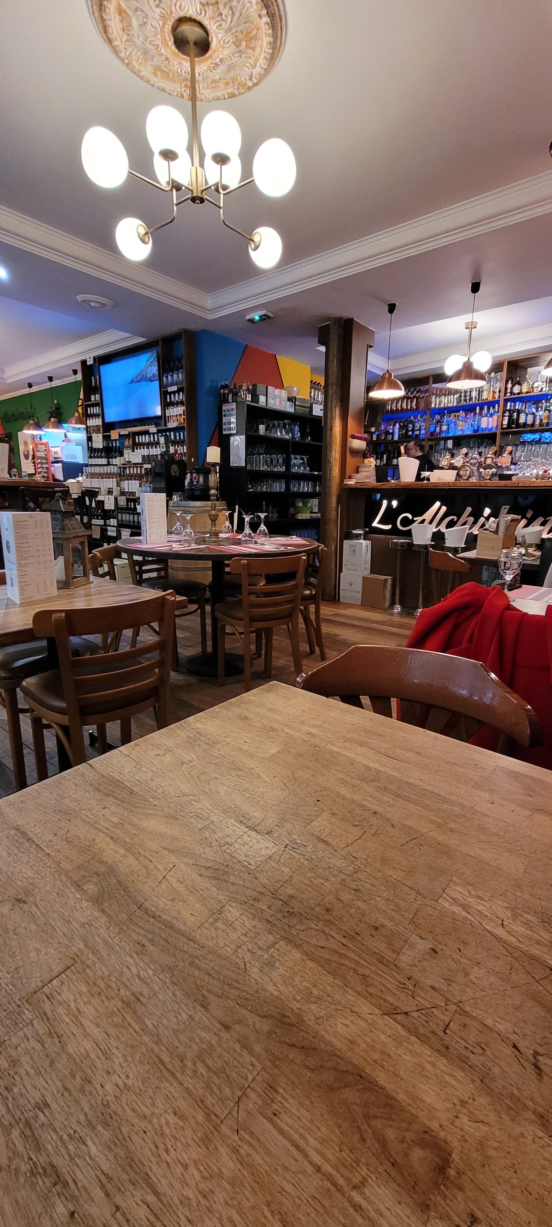 Le restaurant L'Alchimiste est une excellente option pour ceux qui recherchent un repas abordable au cœur de la ville. L'emplacement ne pourrait pas être plus pratique, ce qui en fait un excellent endroit pour manger rapidement lors de vos déplacements. La nourriture est bonne et obtient une solide note de 3,5 sur 5. Bien qu'il ne s'agisse pas de plats gastronomiques, le menu propose une variété d'options satisfaisantes et à bon prix. Les portions sont correctes et la qualité est constante, ce qui en fait un choix fiable pour un repas décontracté. Le service est sympathique mais peut parfois être un peu lent, ce qui lui donne une note de 3 sur 5. Le personnel est arrangeant et accueillant, mais il peut y avoir des moments où vous devrez le signaler pour attirer votre attention. Ce qui ressort le plus, c'est l'ambiance, qui lui vaut une note de 4 sur 5. Le restaurant L'Alchimiste offre une ambiance chaleureuse et accueillante, avec des sièges confortables et une décoration de bon goût. C'est un endroit idéal pour se détendre après une journée bien remplie. Dans l'ensemble, le restaurant L'Alchimiste offre une expérience culinaire agréable avec son emplacement central, sa nourriture correcte et son atmosphère charmante. C'est un bon endroit pour un repas décontracté sans se ruiner.