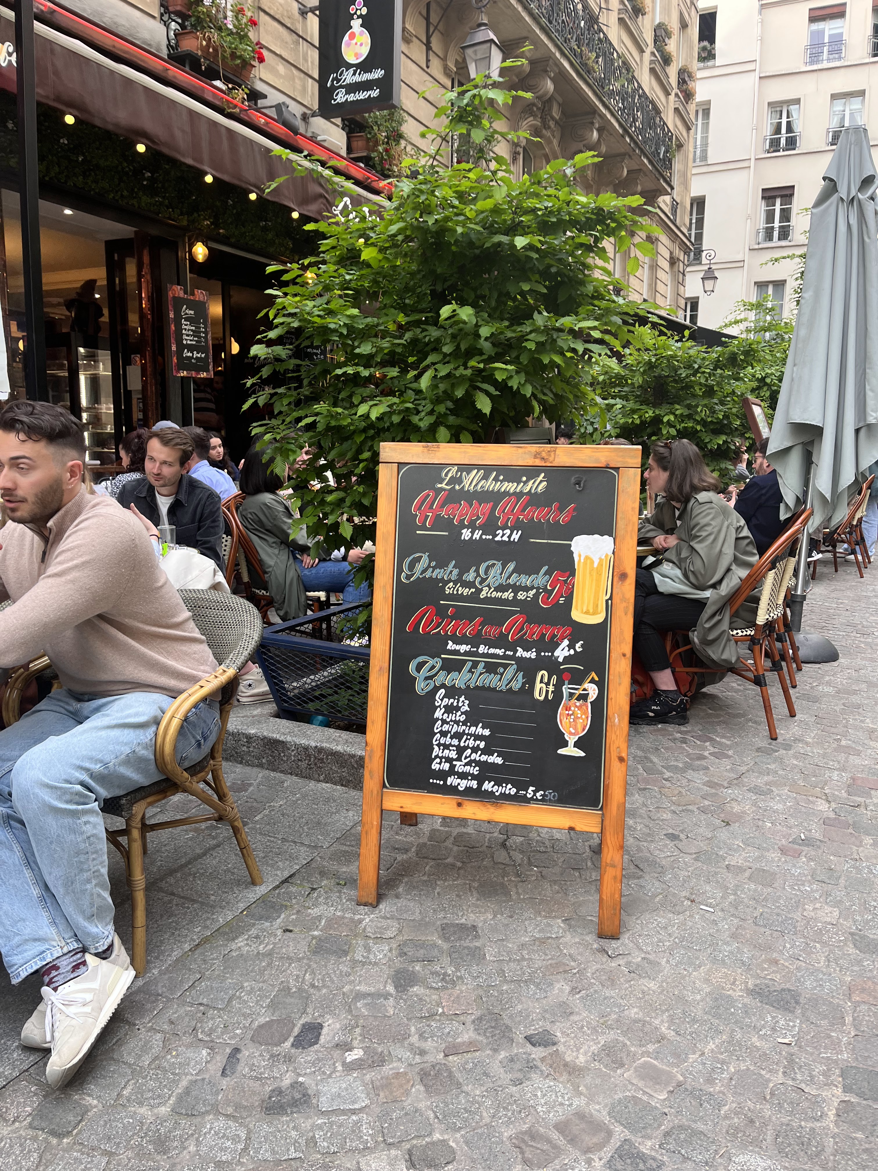 Les prix sont très abordables compte tenu de la localisation du bar : 5 euros la pinte de bière, 6 euros le cocktail en happy hour ! Le service a été légèrement long mais convenable pour un soir de beau temps !