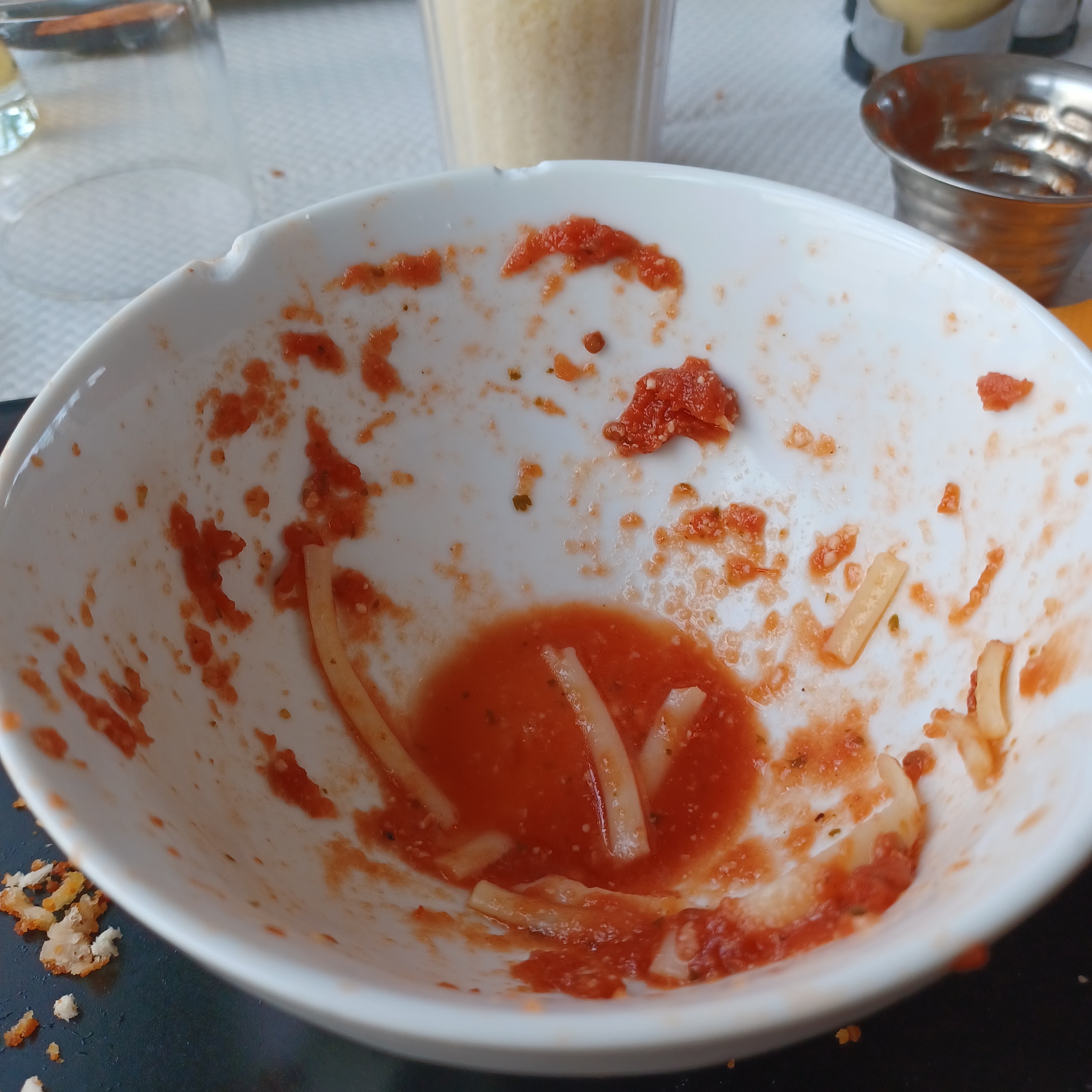 Plats sans plus. Peu d accompagnent dans l assiette. Escalope milanaise avec pâte et sauce tomate. Pâte servi dans un petit bol ébréché et sauce tomate très fade.