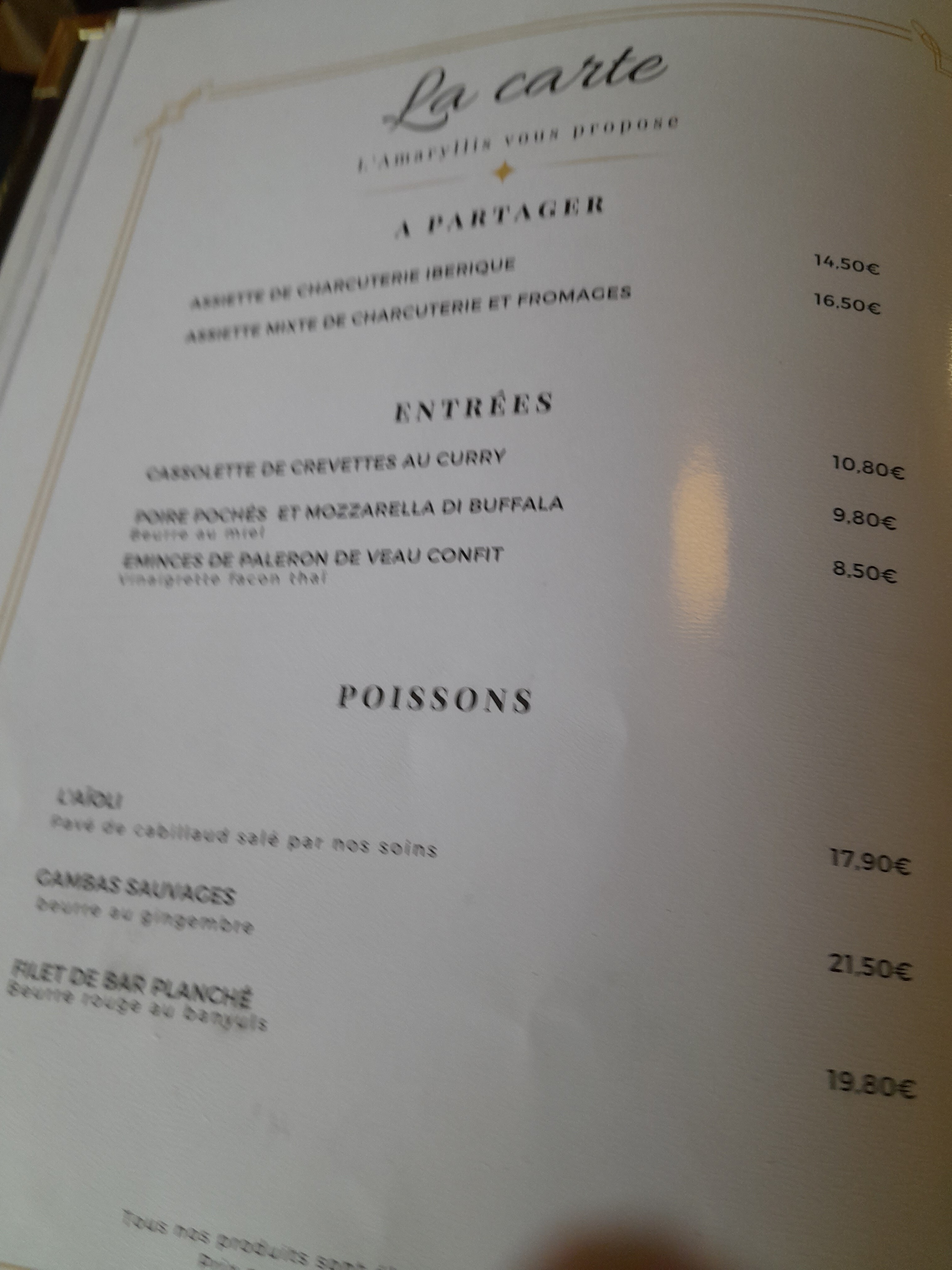 Nous avons découvert l'Amaryllis pour la première fois hier, excellent !! Très bon accueil du personnel, service rapide, belle présentation ! Les plats sont très copieux pour le prix et de qualité. Nous reviendrons avec grand plaisir et recommandons les yeux fermés ce restaurant.