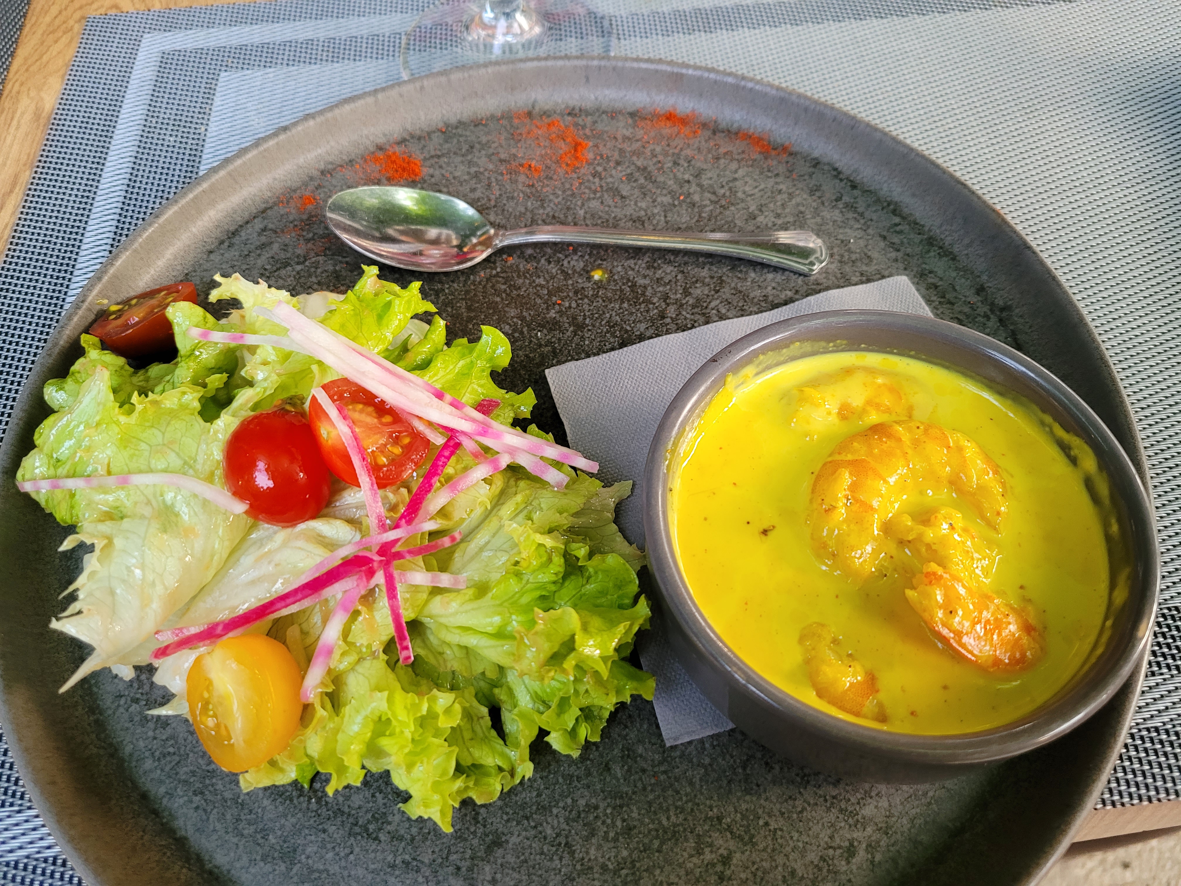 Un super moment 😁 Père et fils font la paire👍 La cassolette de crevettes sauce curry un vrai délice ! Très bonne adresse, je recommande !