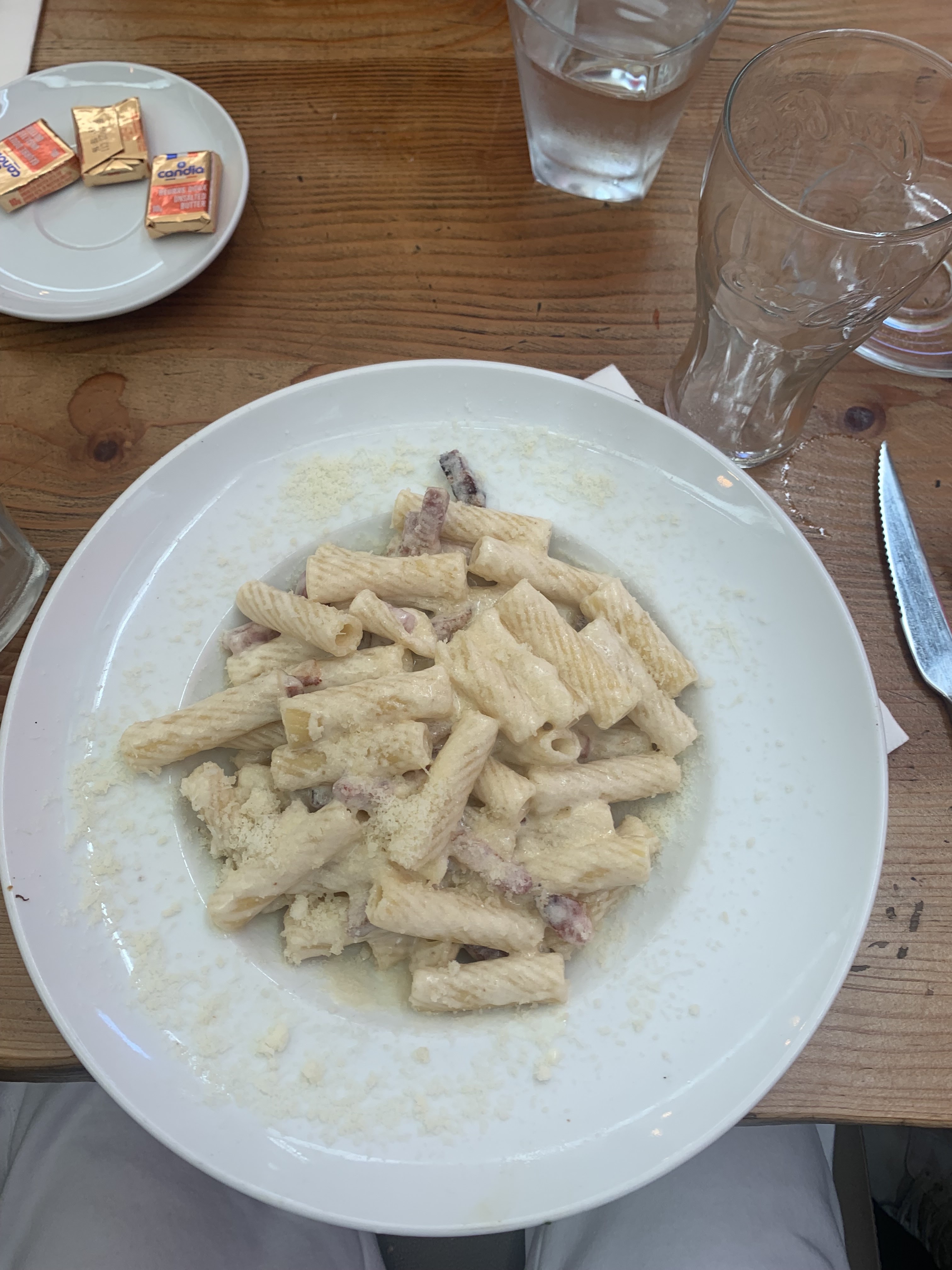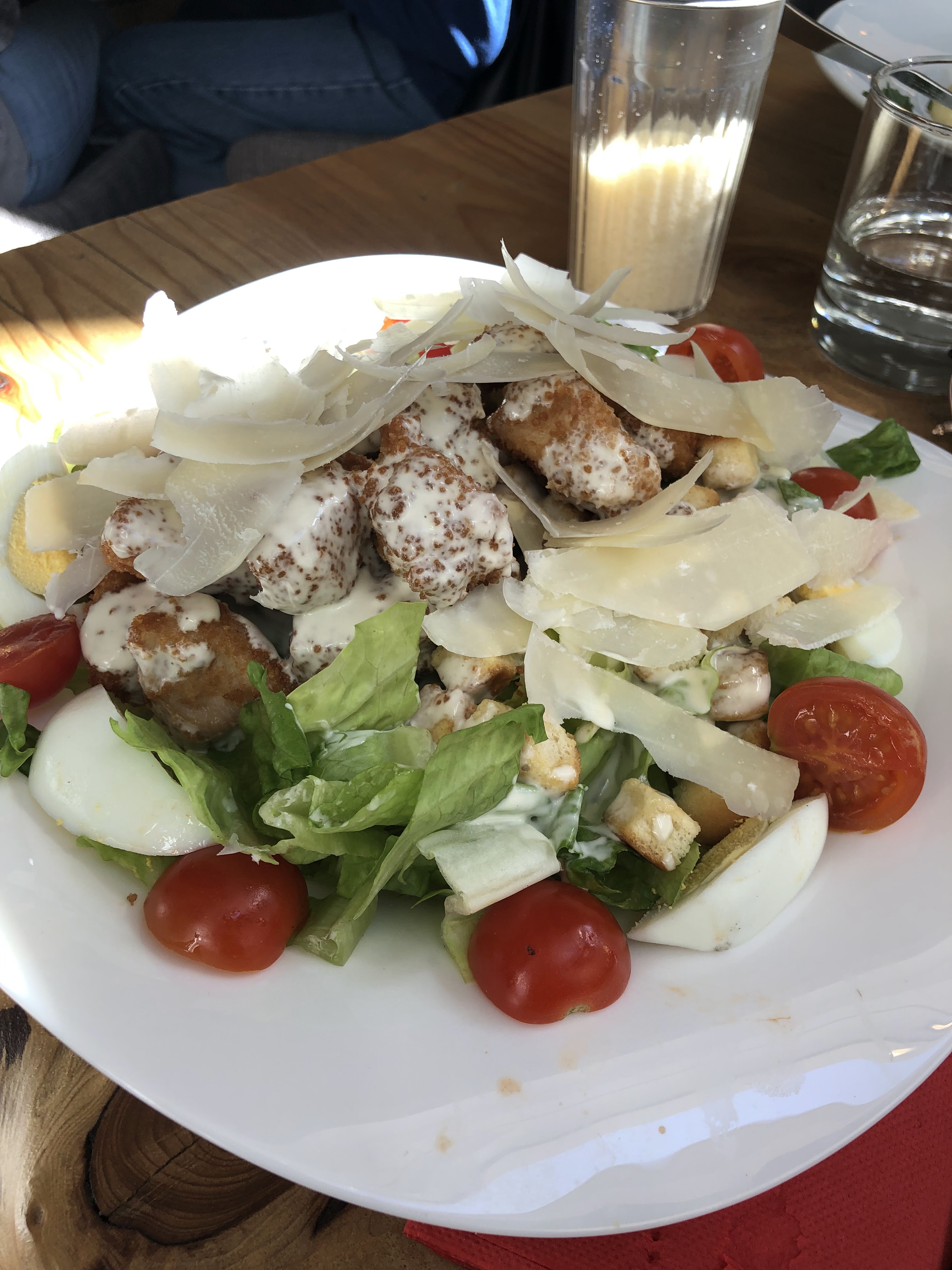Salle de gambas très décevant :salade en sachet sauce blanche toute faite ! Contrairement à la vrai salade servit avec les hamburger avec sa vraie vinaigrette ! Bonnes pizzas et pâtes