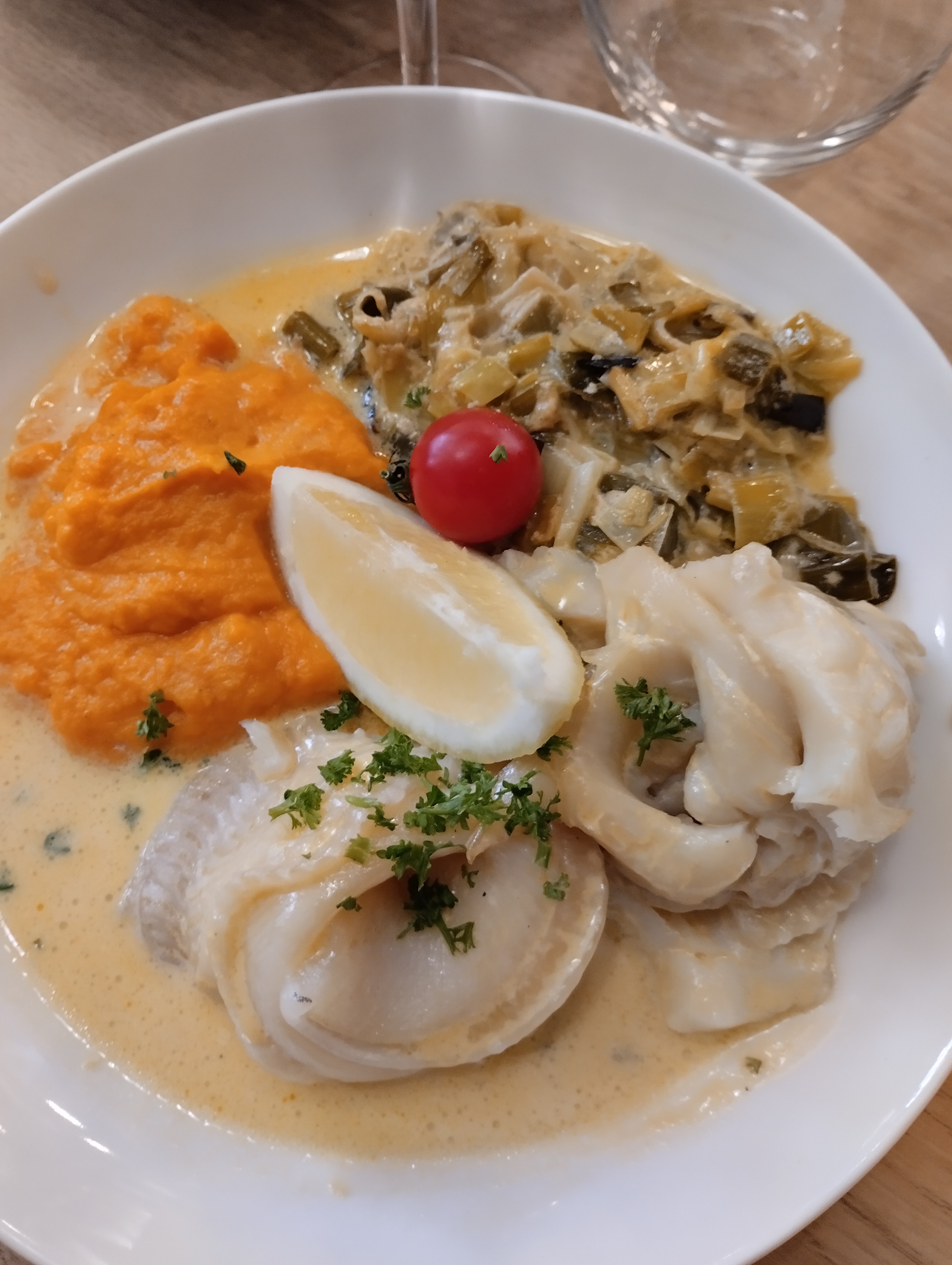 Beaucoup de monde mais pourtant un service rapide et efficace. J'ai pris des Saint-Jacques et la cuissons était parfaite. Je recommande le café gourmand chocolat. Vraiment gourmand et le café espresso est super bon !