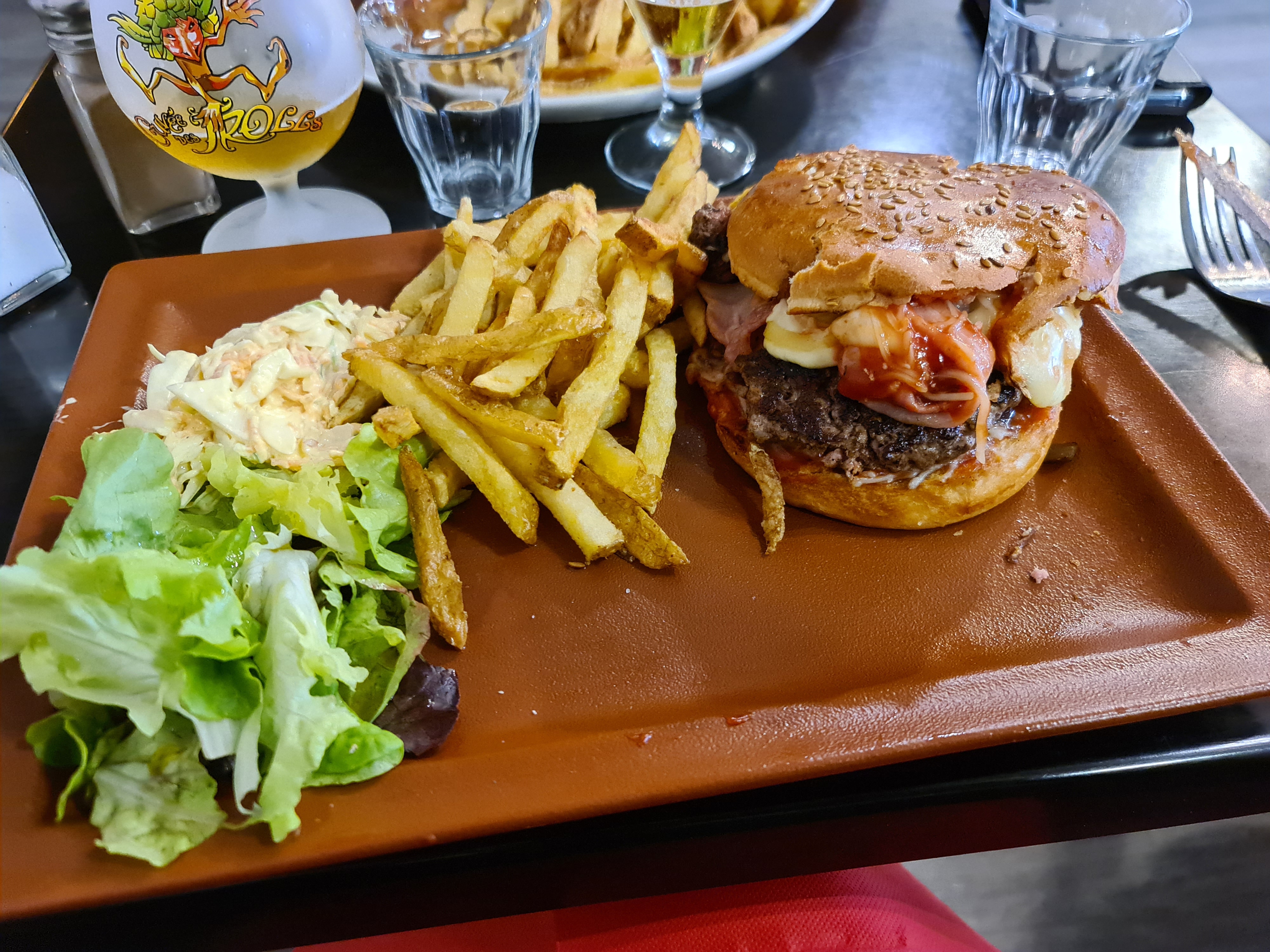 Très bon moment passé dans ce restaurant. Le burger montagnard était excellent. J'ai aimé la présence de salade et coleslow. Bon choix de bière aussi. Il est appréciable de trouver des diabolos en pinte. Le seul petit bémol est que j'aurai aimé un peu plus de praliné dans le fondant.