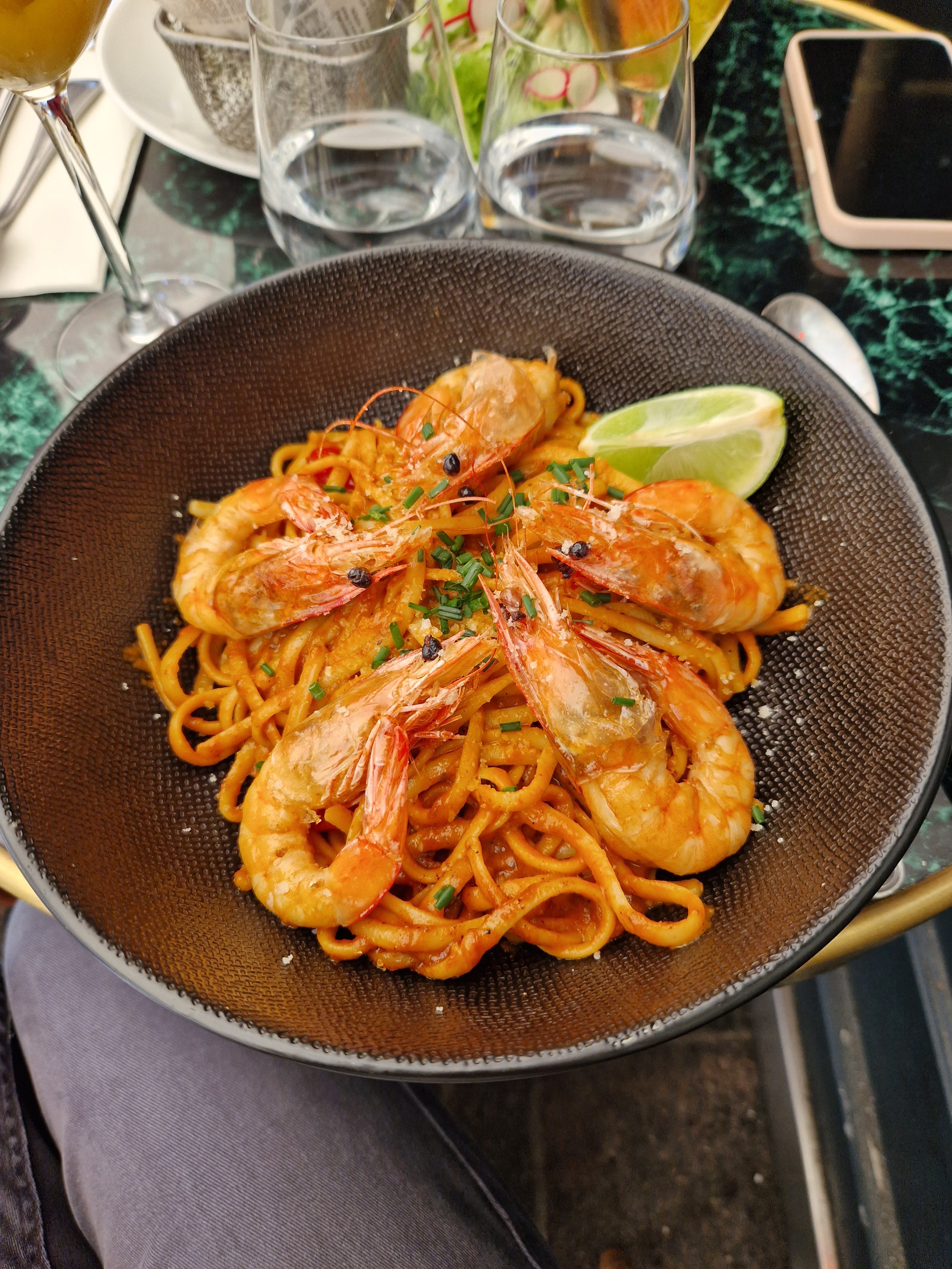 Trop bon ! J'ai déjeuné dans ce restaurant avec 2 collègues et je me suis régalé. Nous avons déjeuné en terrasse. J'ai pris de Linguine aux Gambas avec un passionista, un cocktail sans alcool. Service au TOP. Allez y les yeux fermés !!!!