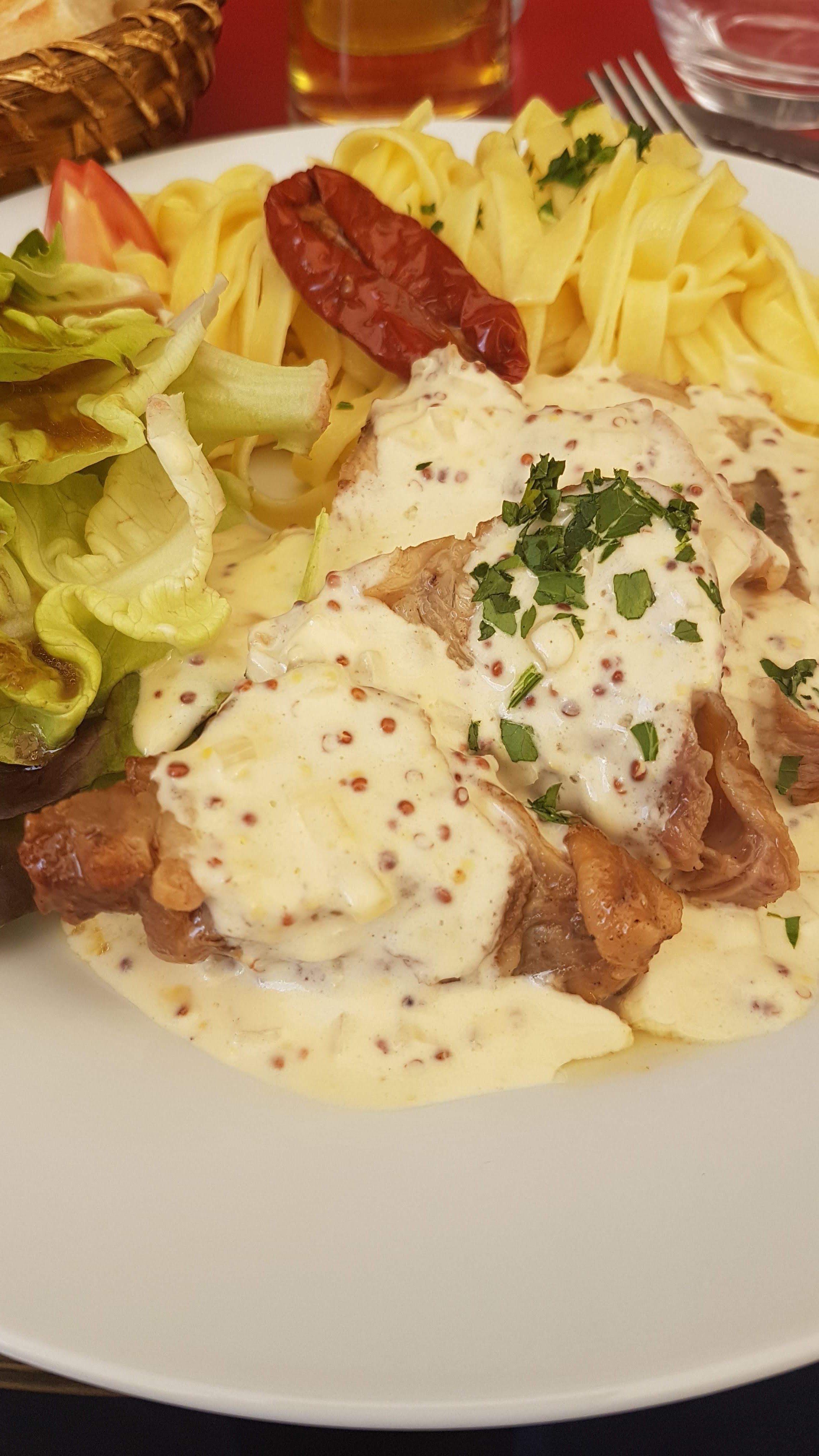 Un accueil chaleureux le plats + dessert 13,95 euros Ce jour Tagliatelle émincé de poulet sauce champignon un vrai régal accompagné d'une fondant chocolat boule vanille crème anglaise Je recommande
