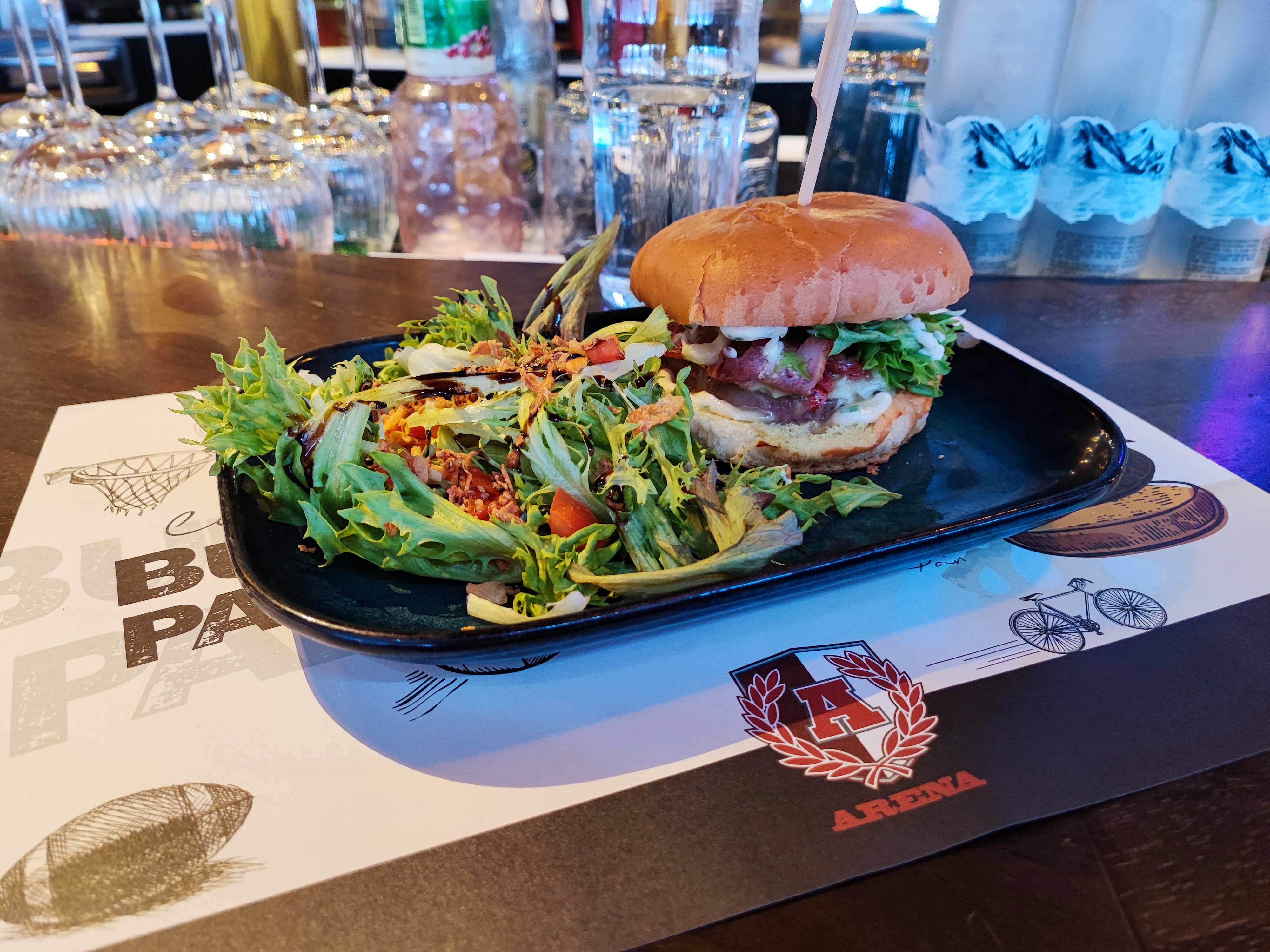 Restaurant chouette et sympathique avec une bonne ambiance comme dite « sportif » mais malheureusement cheeseburger reçus avec du camembert n’aimant pas ce genre de fromage et n’étant pas inscrit sur le listing du burger je demande à changer, malgré cela un goût de camembert est toujours présent ce qui m’a gâcher un peu le repas si non service très cool.