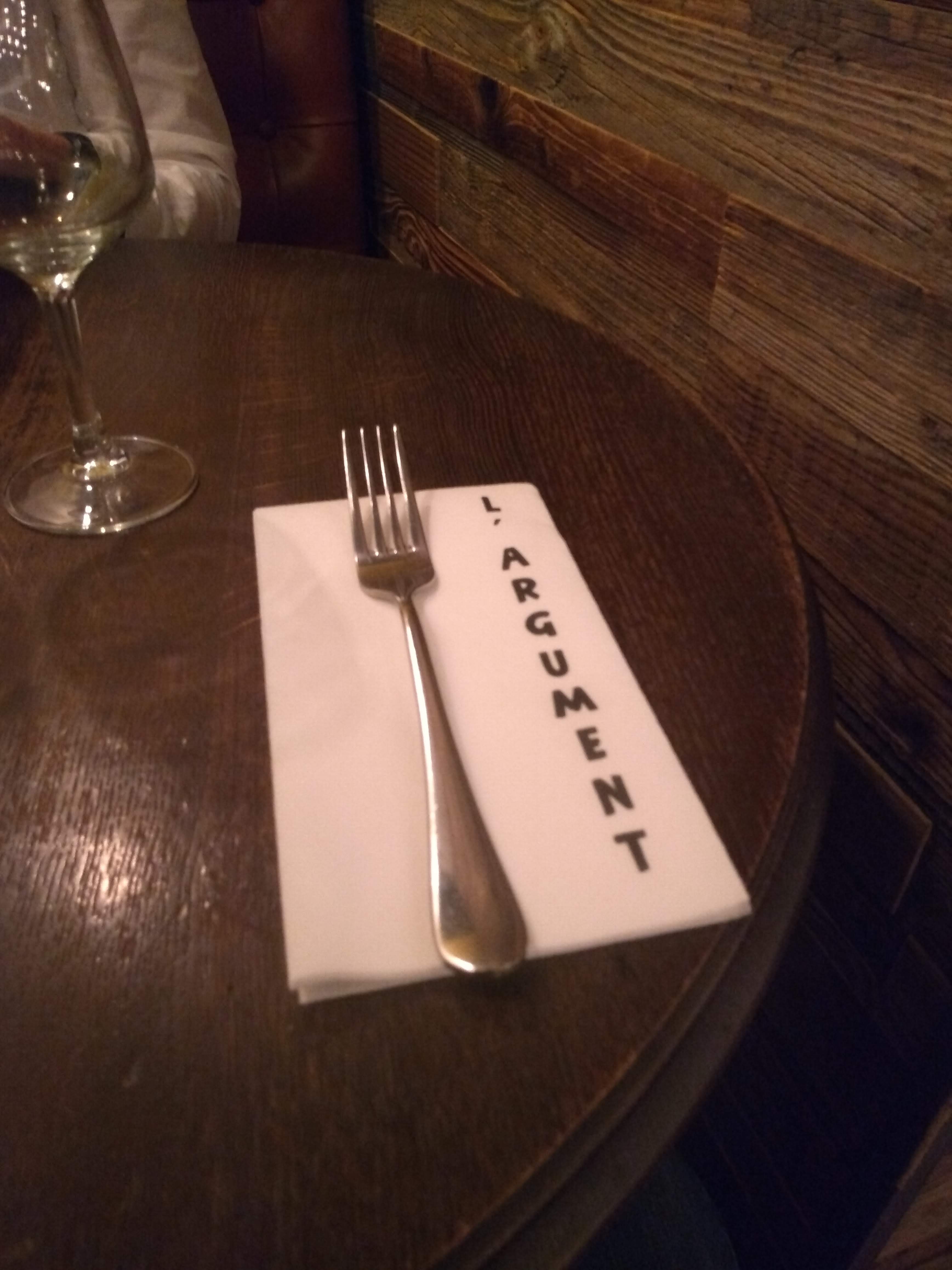 Première fois que je vais à l’argument était en février avec mes parents et un ami. Nous avions adoré. Les plats du jours sont copieux et les dessert super bons. J’y suis retourné que ce soit pour manger ou seulement boire des verres. Une seule fois sur les nombreuses fois ou en suis venue le service était lent donc on n’en tient pas rigueur. Franchement je recommande a 100% (Le tiramisu Nutella est dingue)