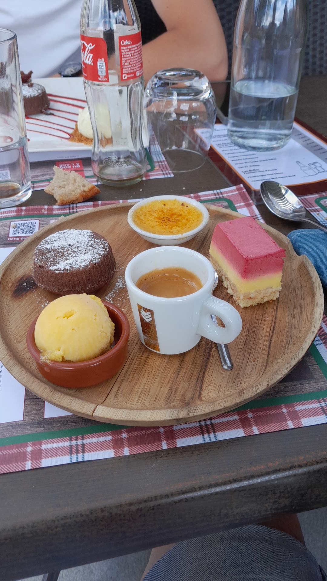 Très bien , bien accueilli et très bon service , très bien manger . Ci joint entrée, et dessert, j'ai zapper de prendre en photo le plat principal ( la munstiflette) trop bon 😊
