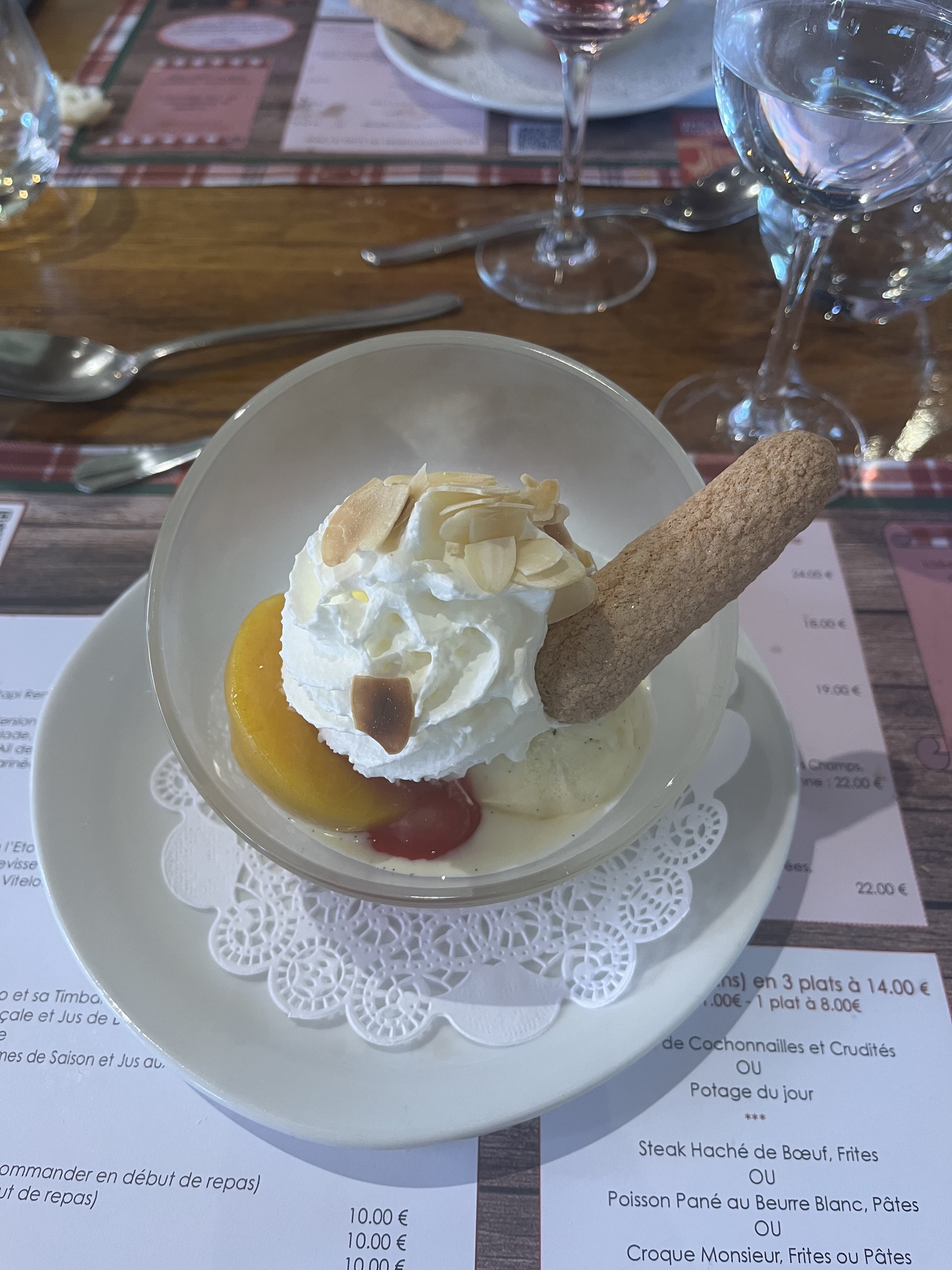 Nous avons dîner ce soir dans ce restaurant très déçu : le vin en caraf pas frais quand au plats tout à fait ordinaires, glace au dessert 3 boules avec 2 speculos du super marché médiocre. Par contre le cadre est magnifique surtout le soir en terrasse, mais le cadre ne fait pas tout.