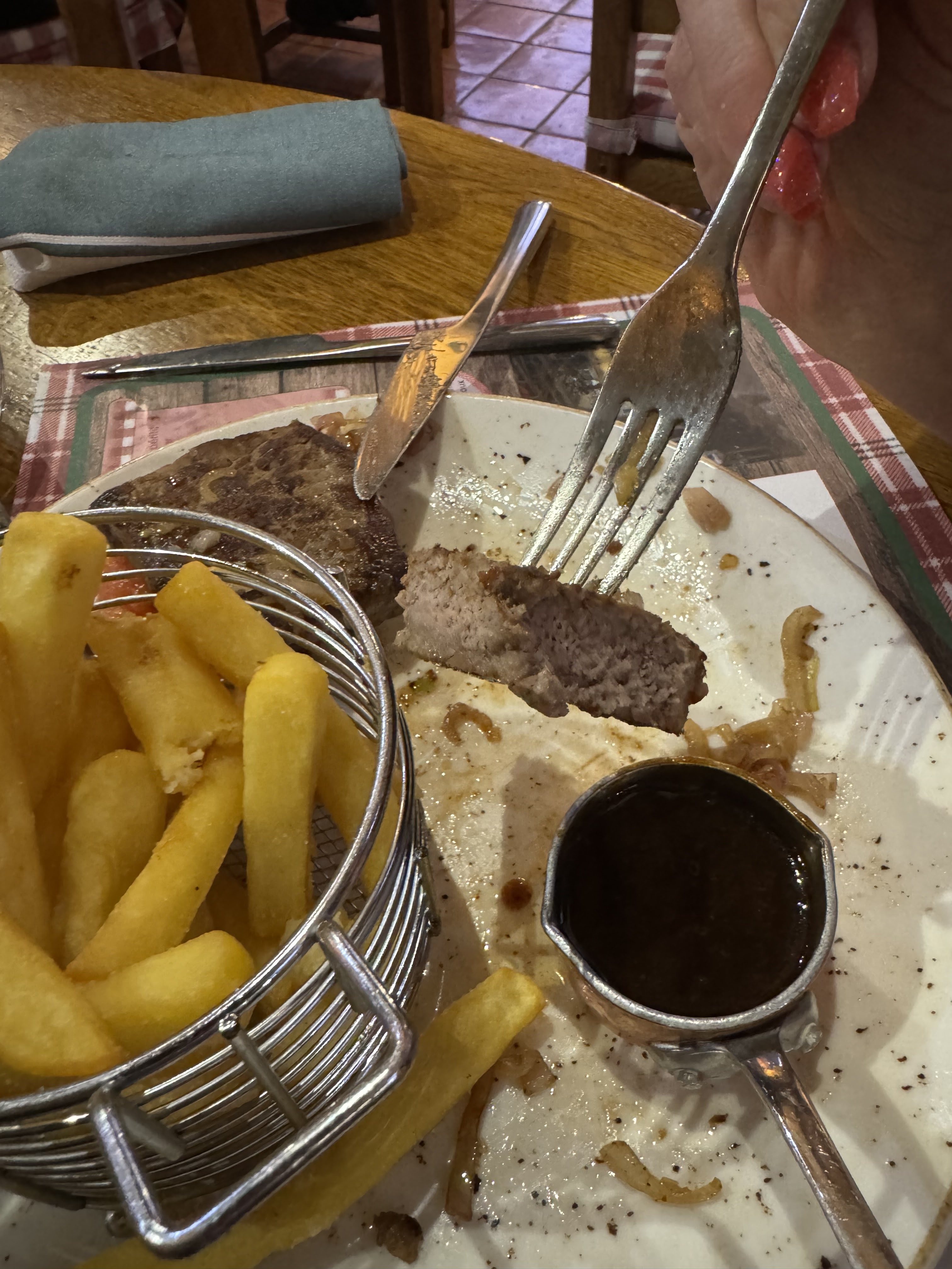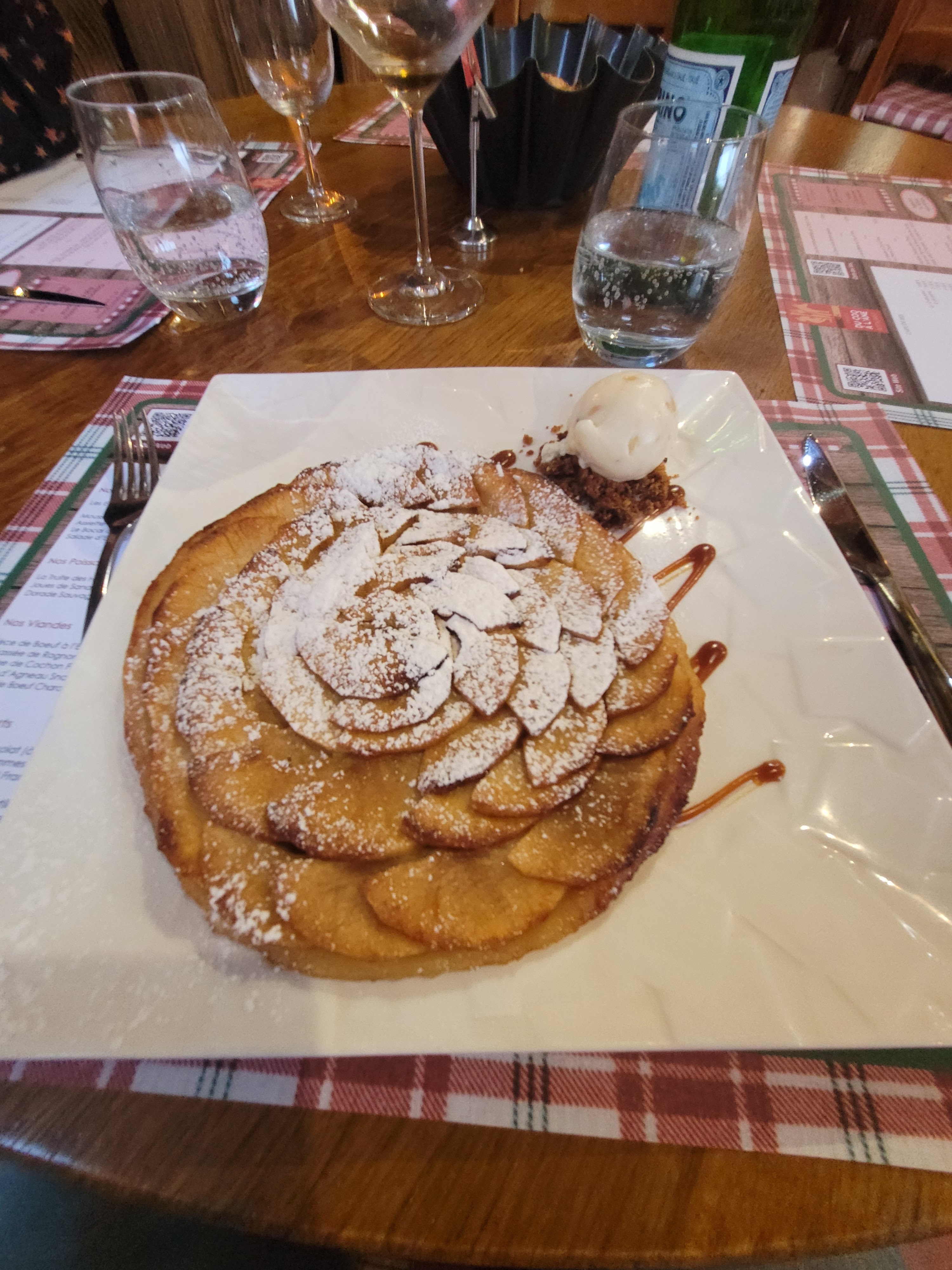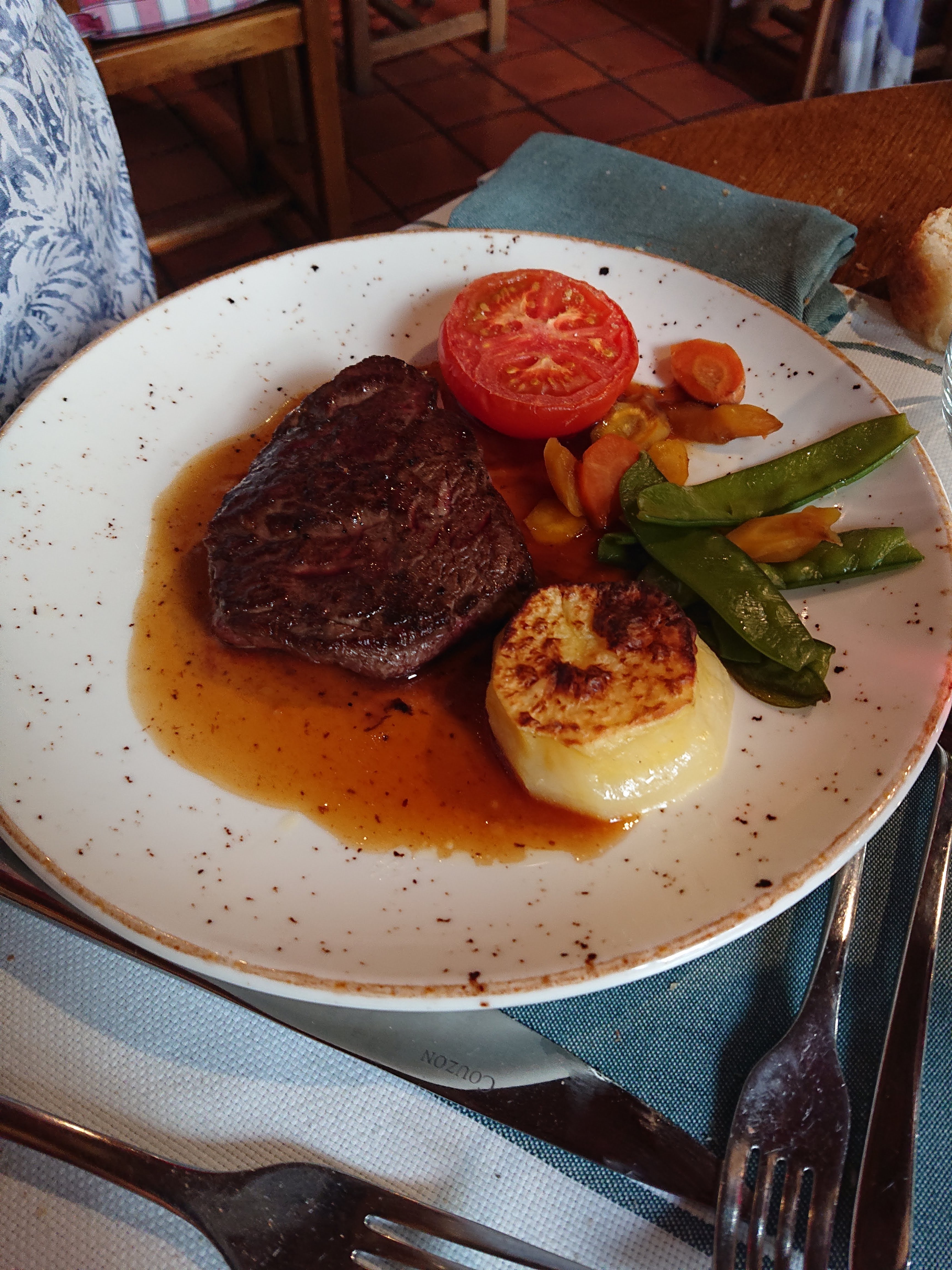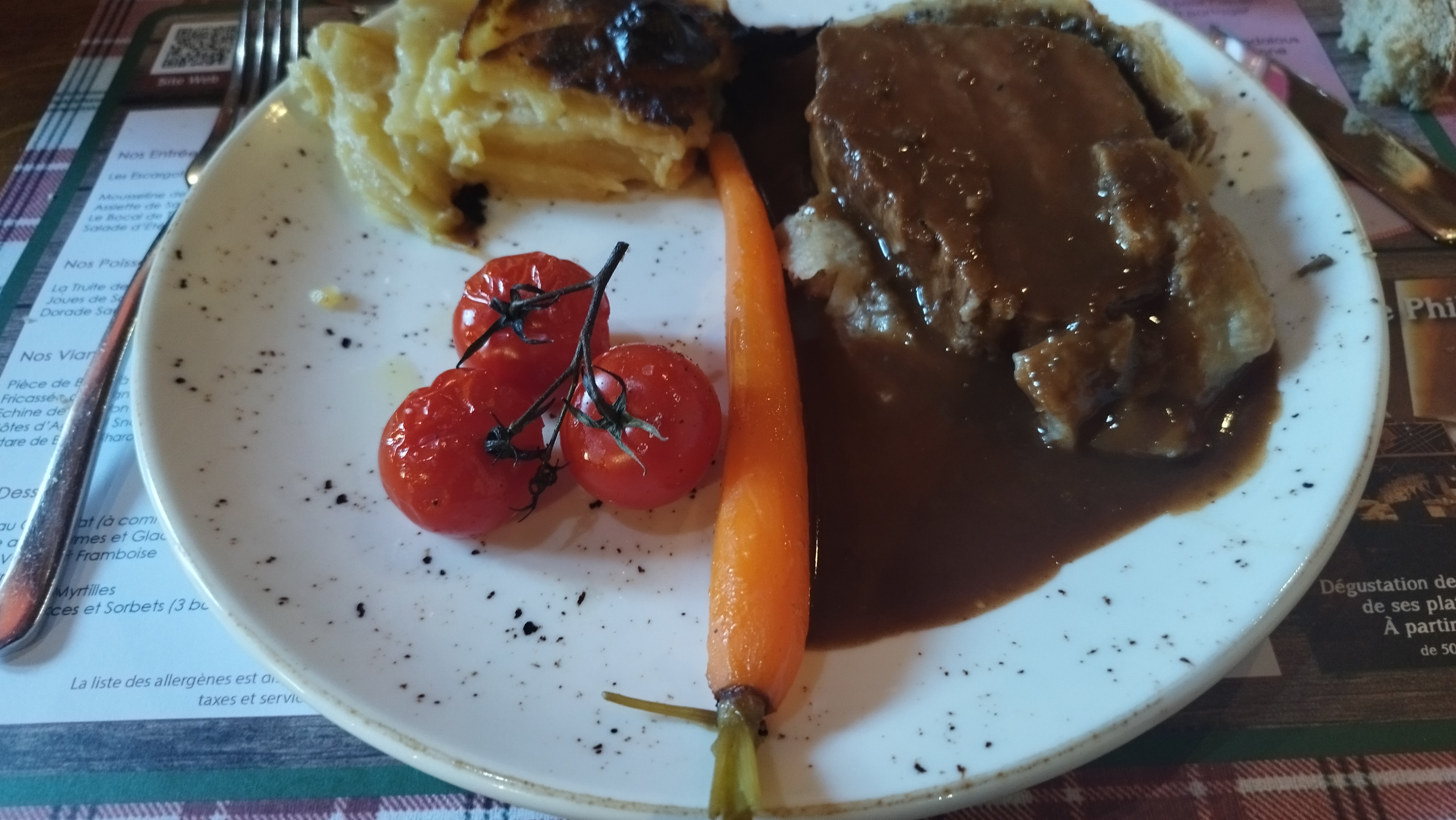 Ambiance très bien, accueil et service excellent, service rien à dire, par contre assiette de rognon excellente mais peu remplie et tarte fine brûlée et très peu garnie.